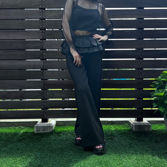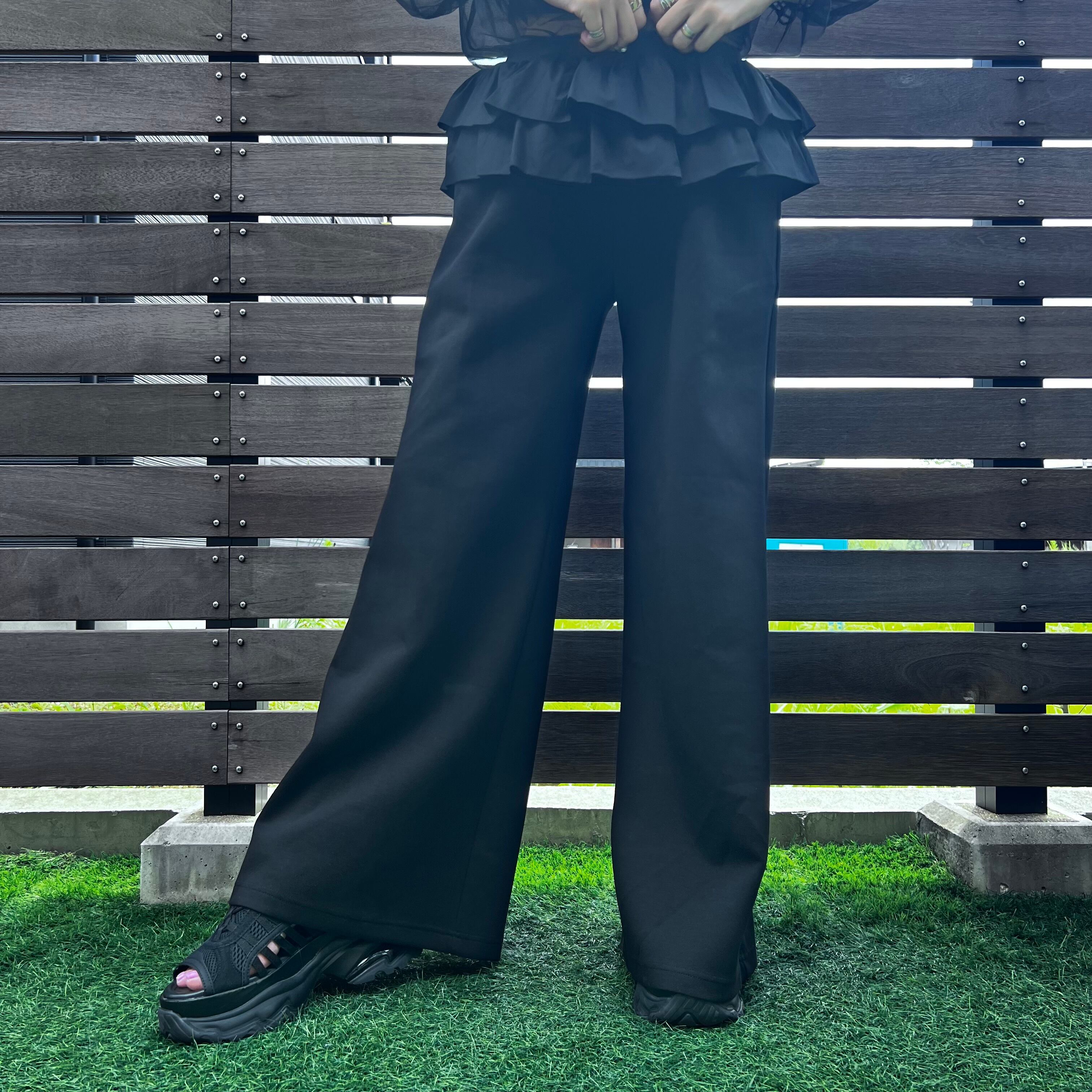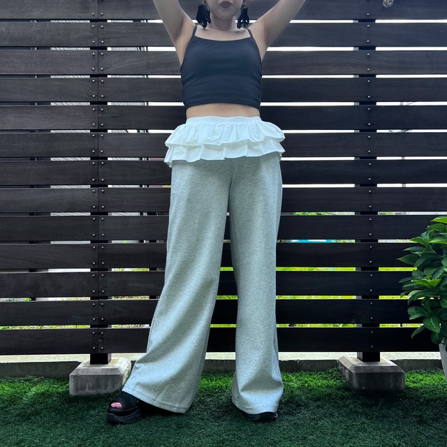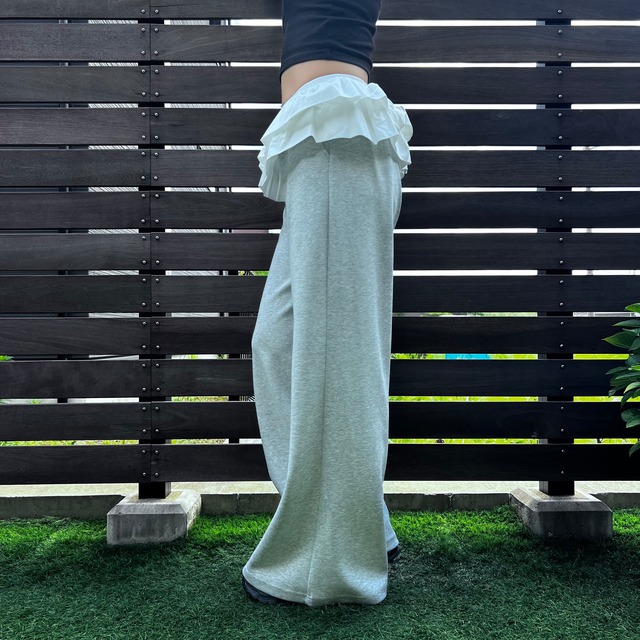 ウエストフリルボンディングワイドパンツ