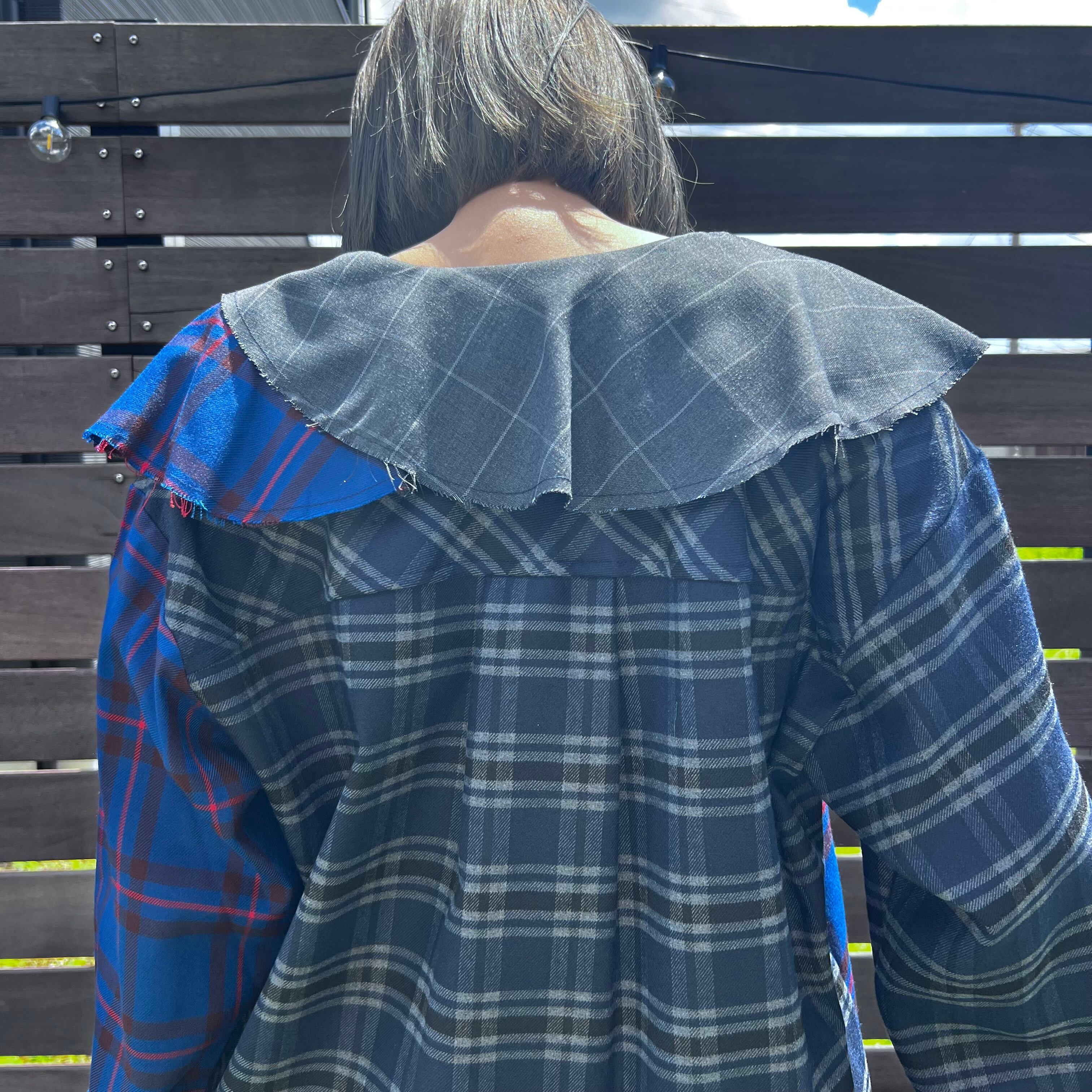 《3素材のパッチワークが魅力的なリメイクタッチなシャツ》