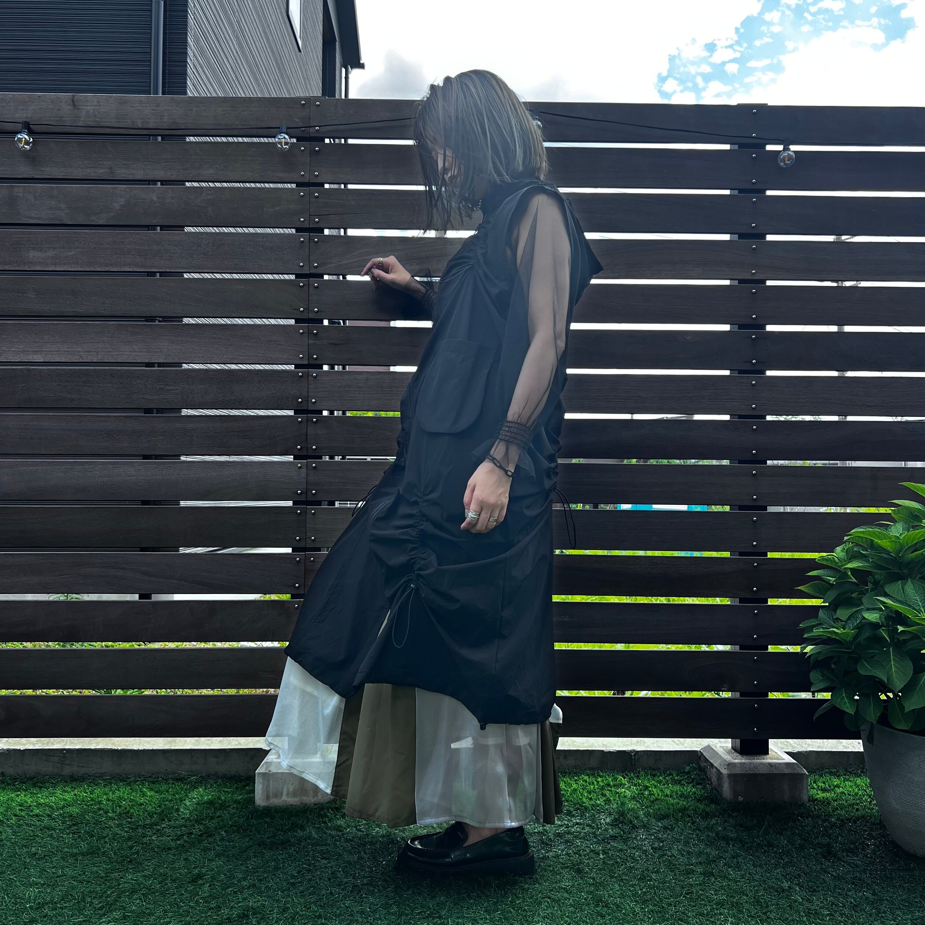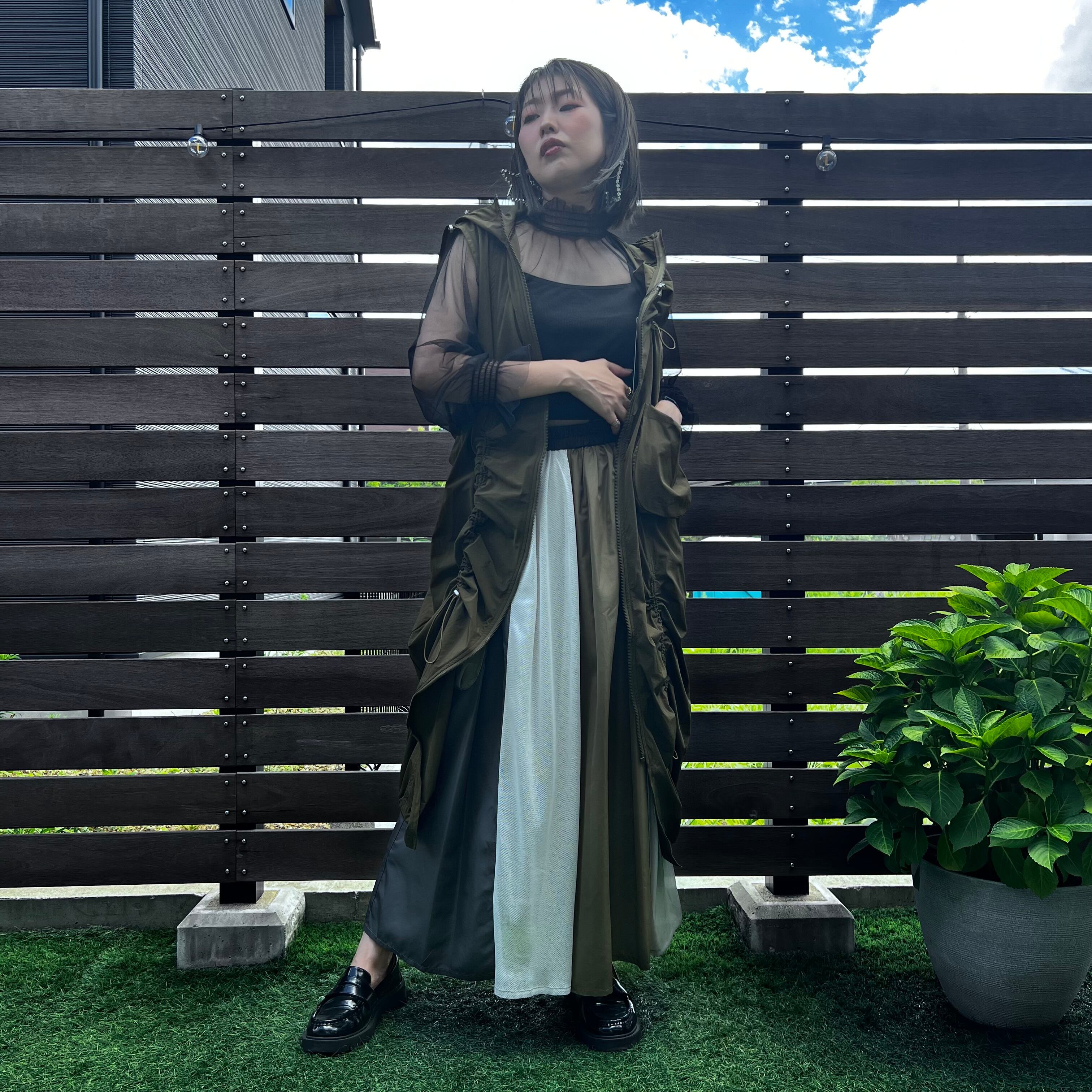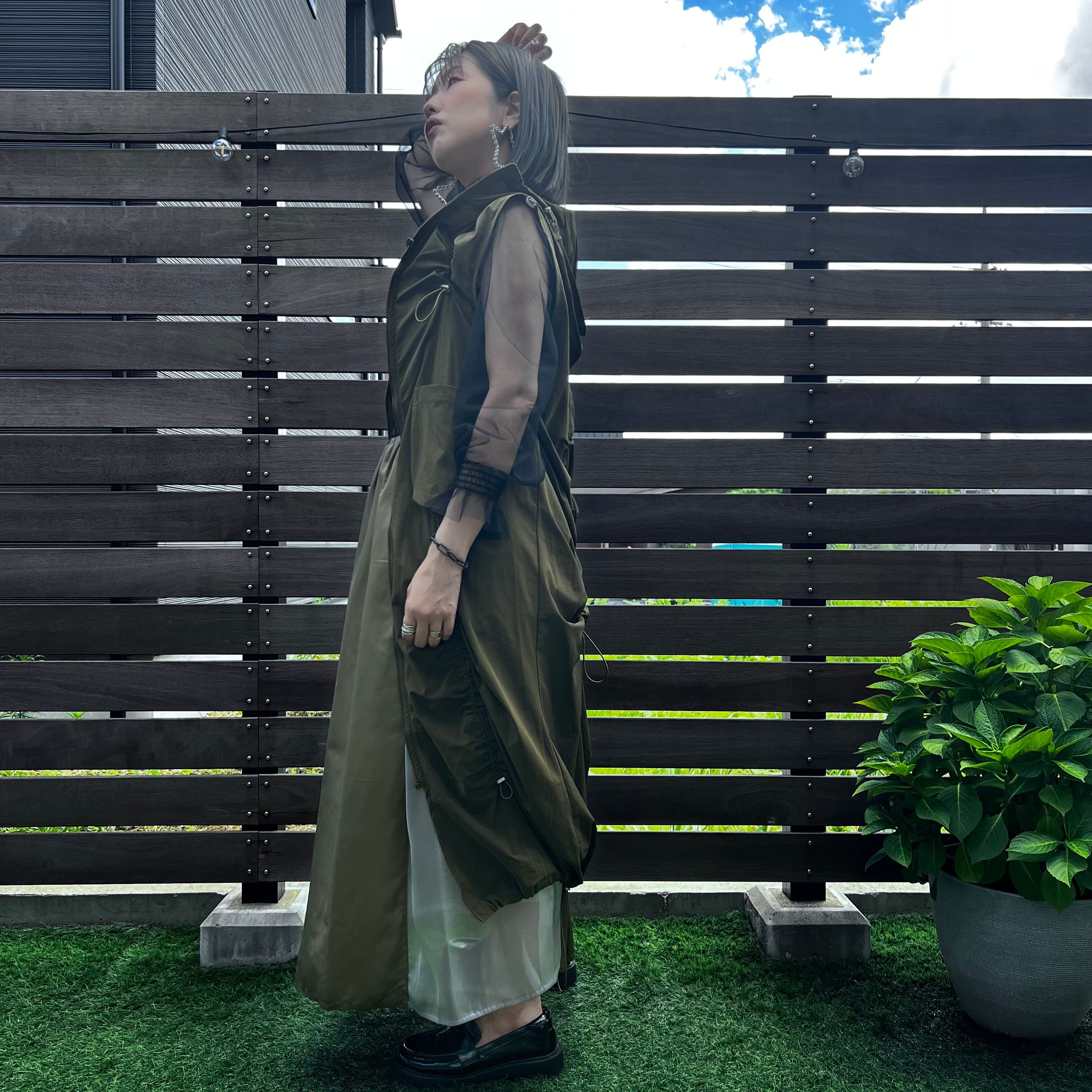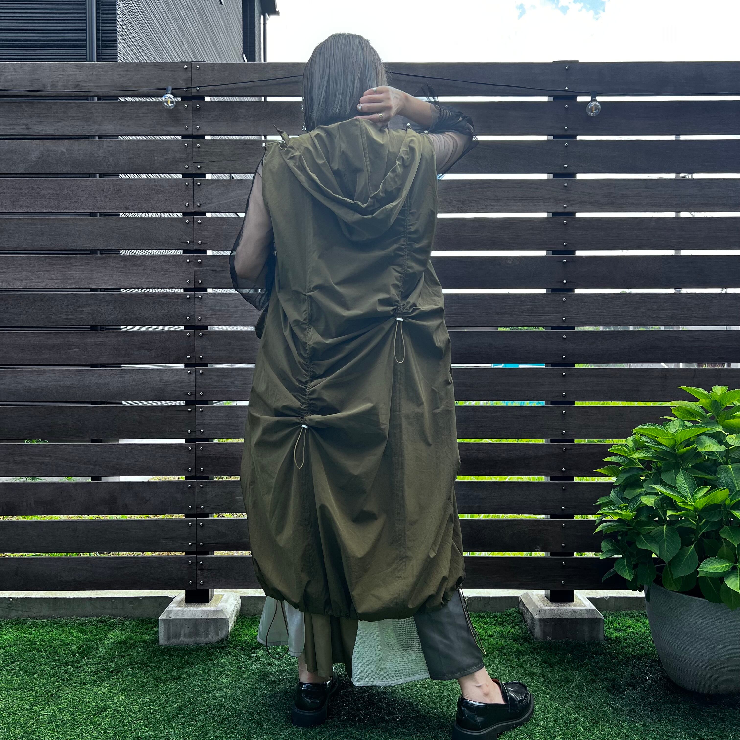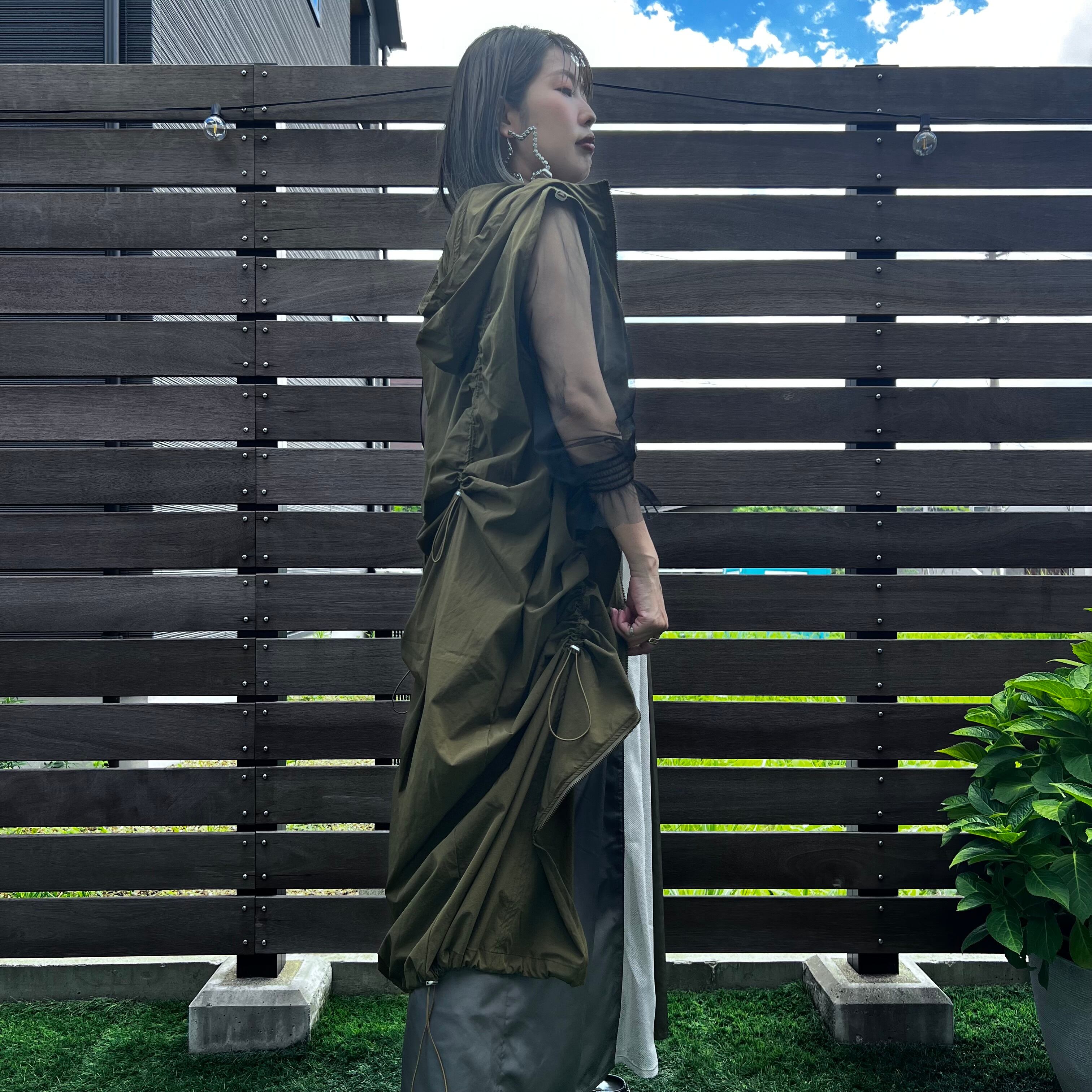 ミリタリーテイストが魅力的なランダムドロストジレまたはワンピース。シンプルながらも存在感のあるデザインで、日常使いから特別なシーンまで幅広く楽しめるアイテムです!無造作なドロストディテールが、軽やかな雰囲気を演出し、どんなコーディネートにもオシャレ感をプラスします。すべてドロストを正常にしたらワンピースにも◎