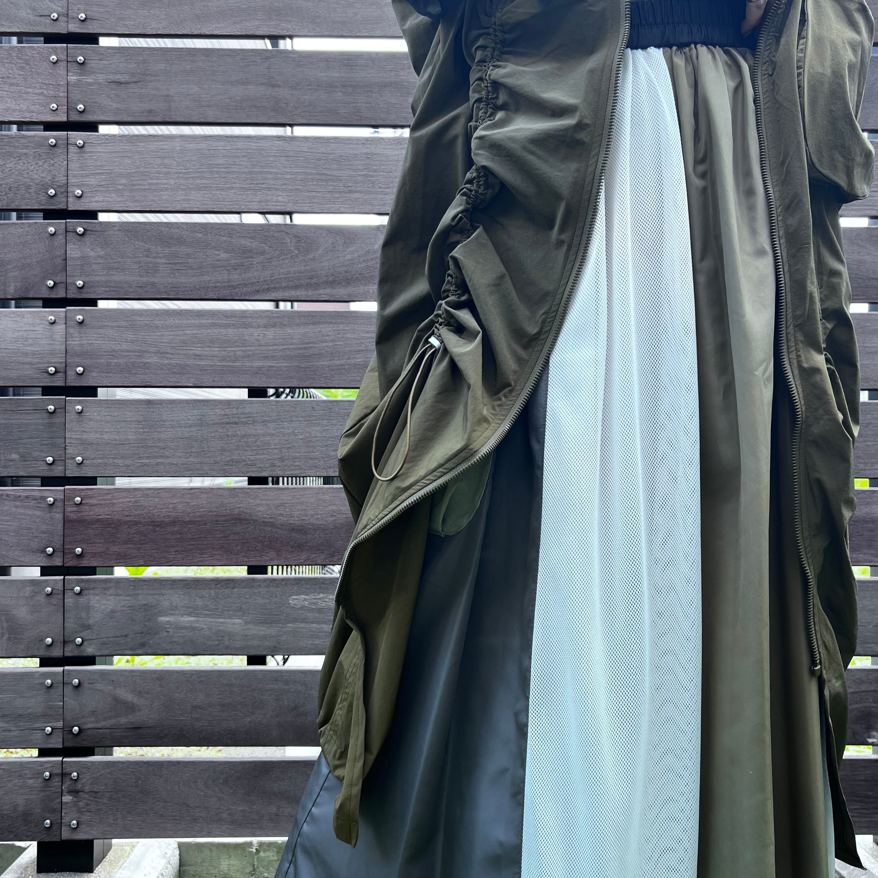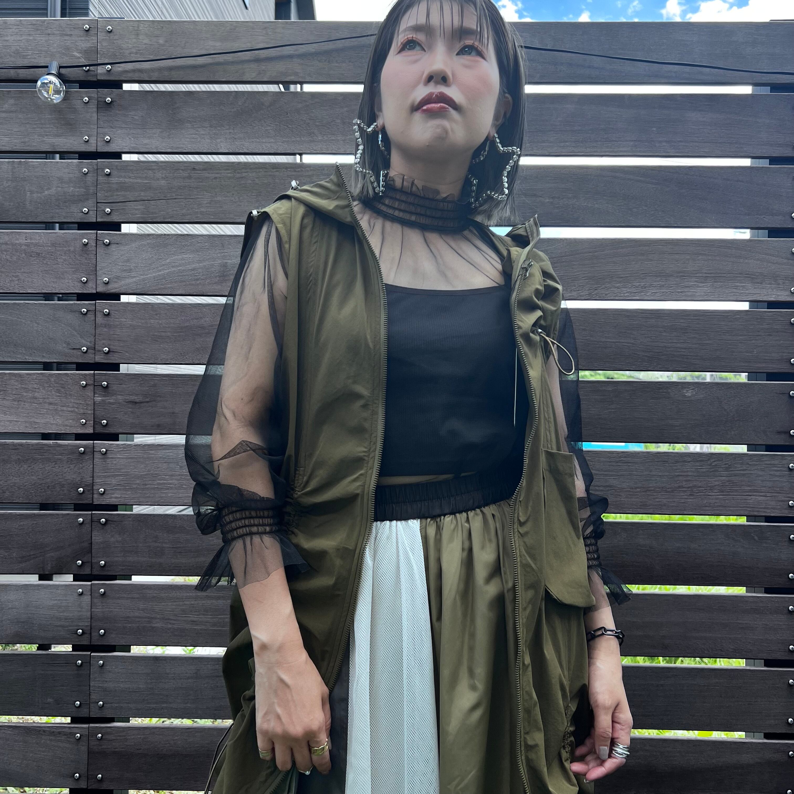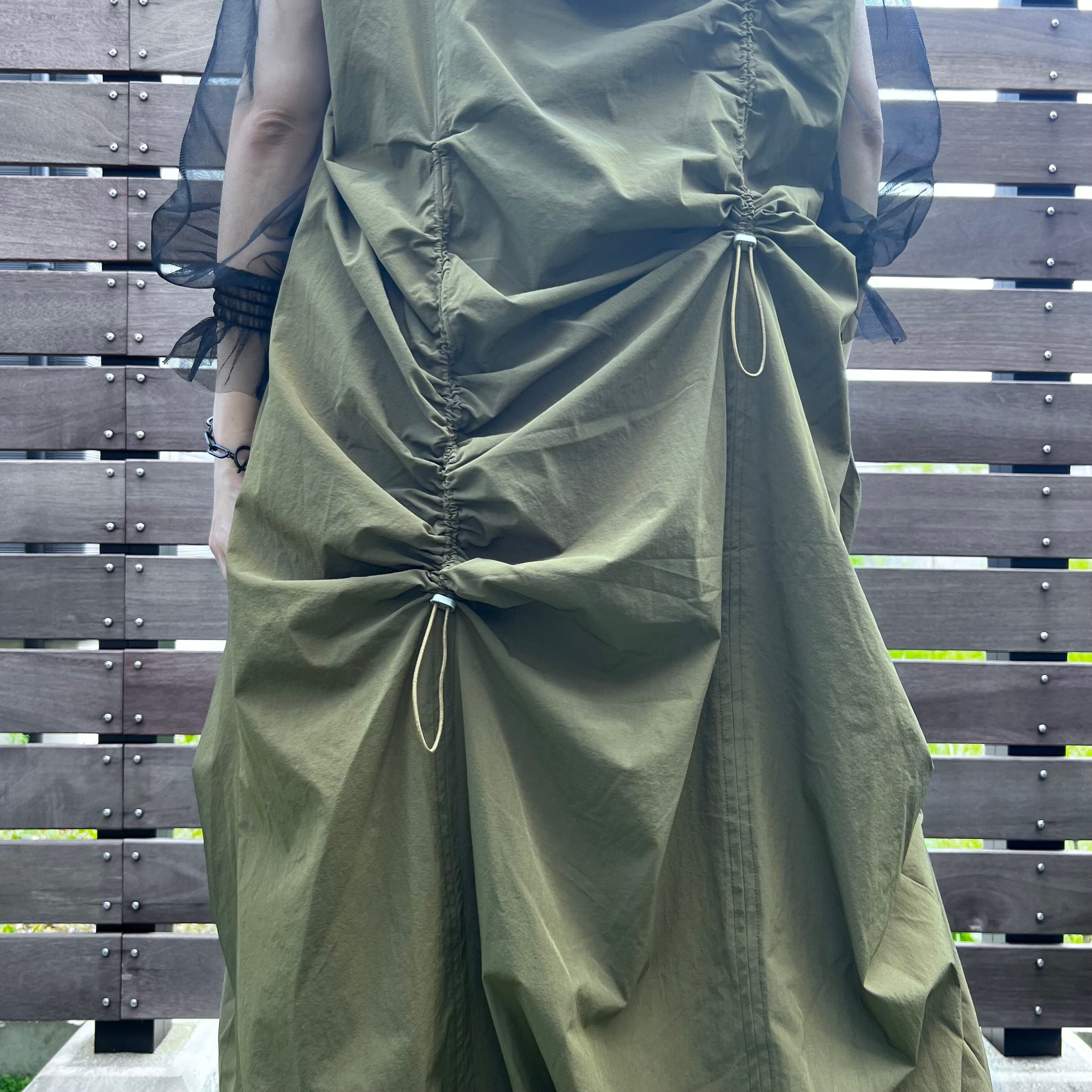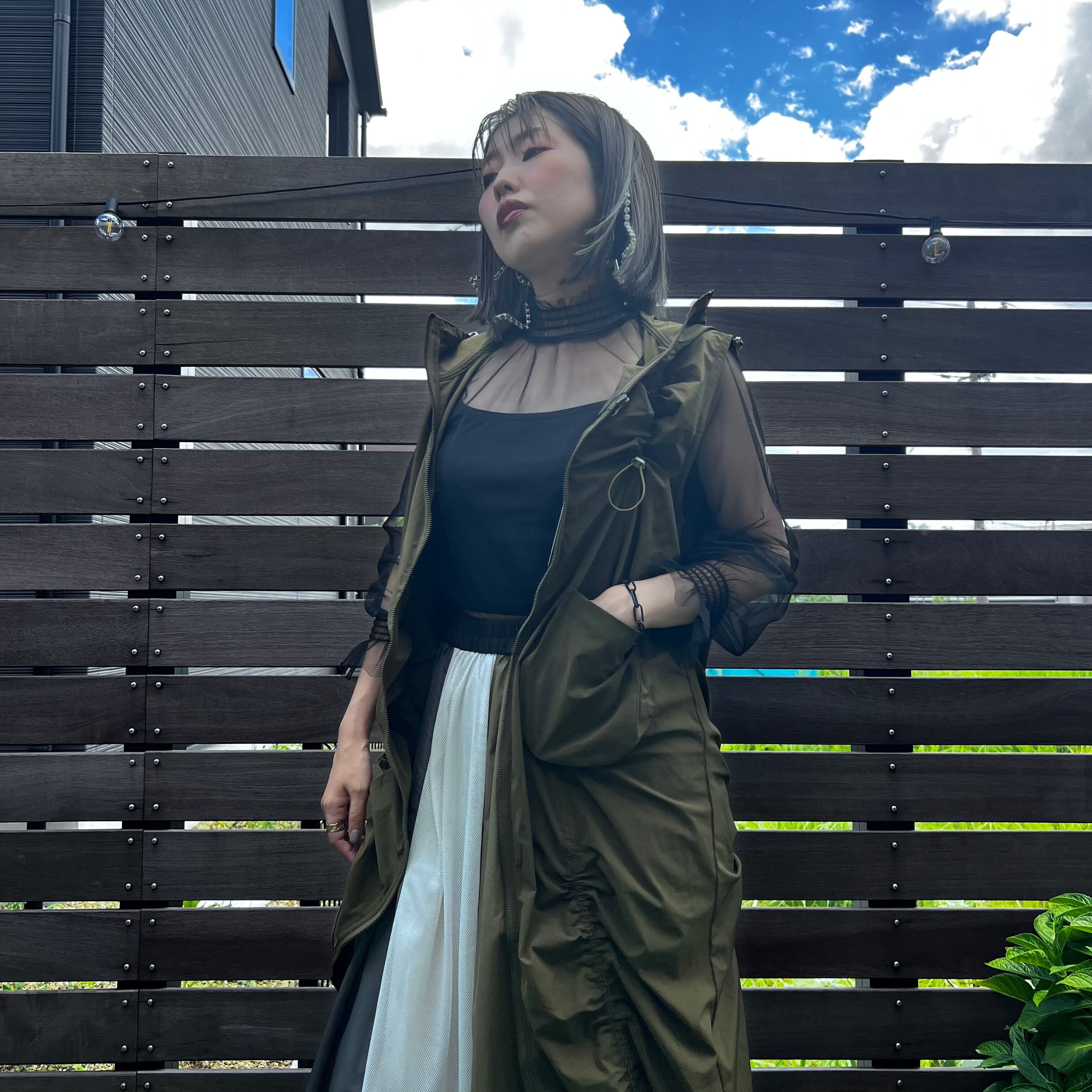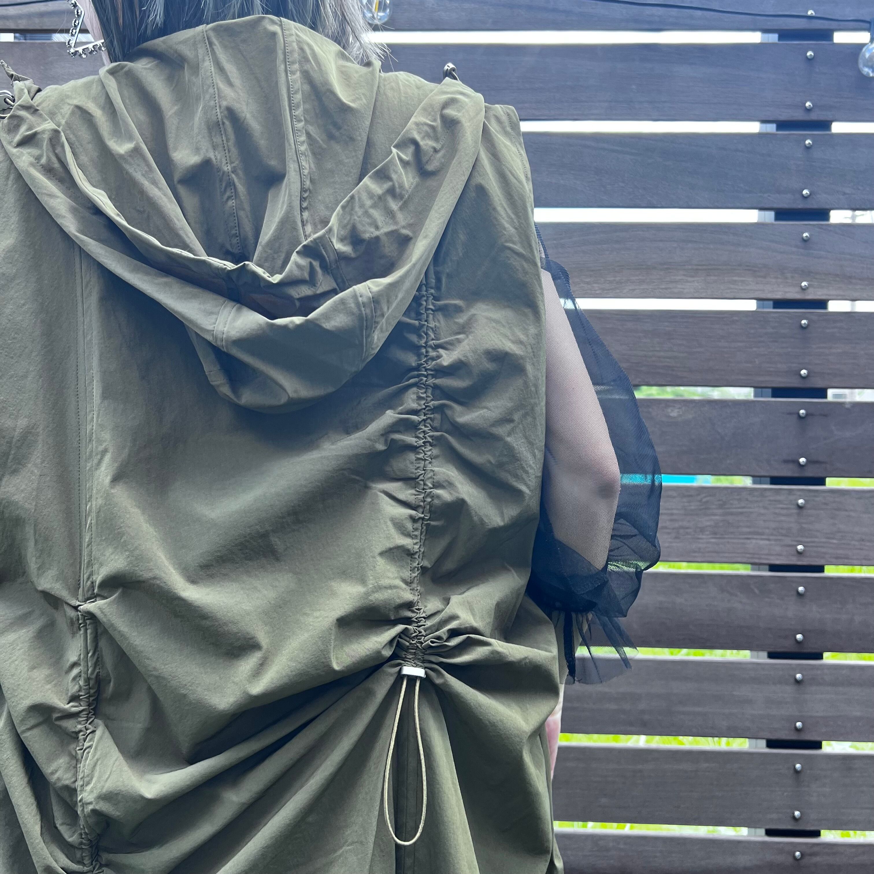 ミリタリーテイストが魅力的なランダムドロストジレまたはワンピース。シンプルながらも存在感のあるデザインで、日常使いから特別なシーンまで幅広く楽しめるアイテムです!無造作なドロストディテールが、軽やかな雰囲気を演出し、どんなコーディネートにもオシャレ感をプラスします。すべてドロストを正常にしたらワンピースにも◎