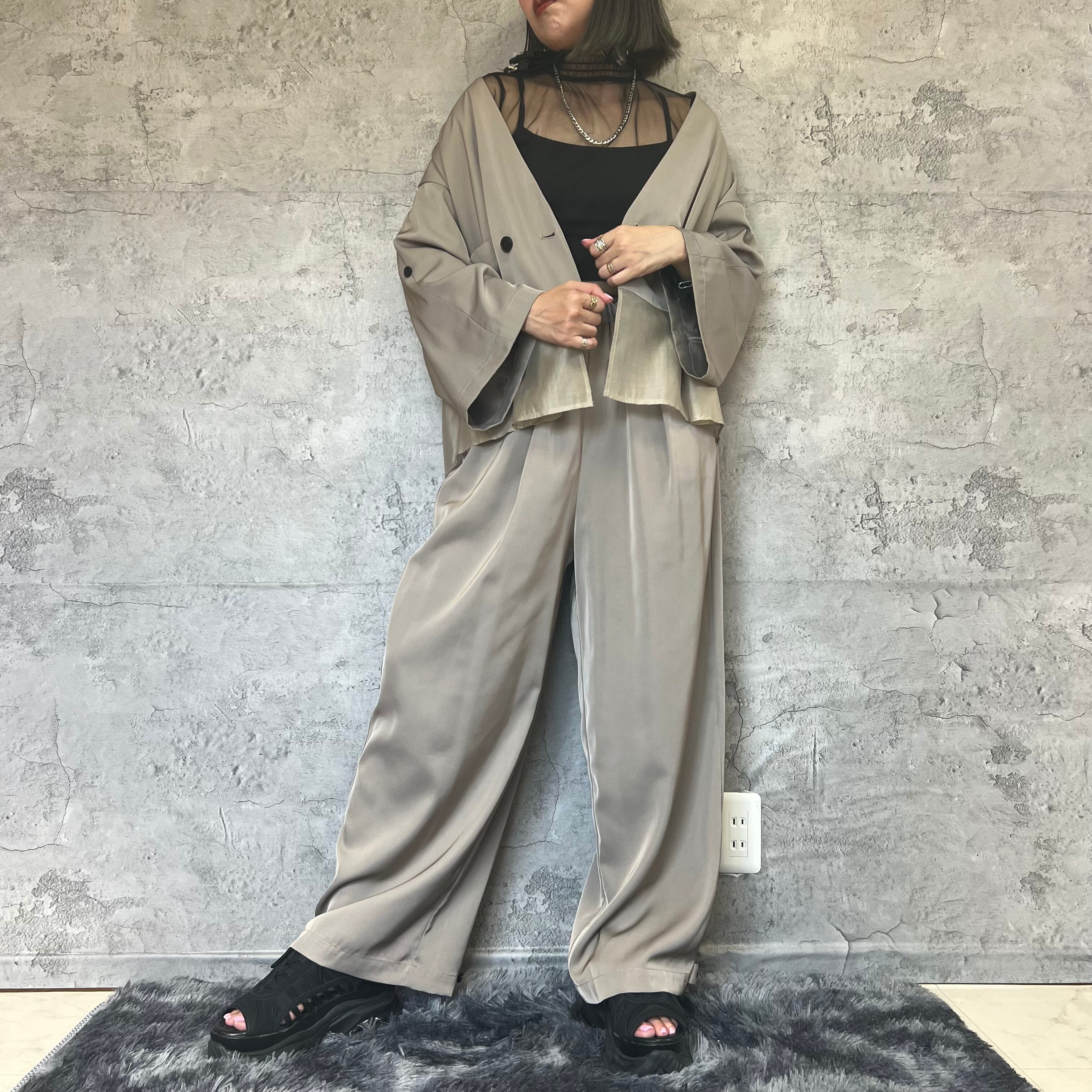 ヘムシアーノーカラーブラウスジャケット&とろみパンツ セットアップ