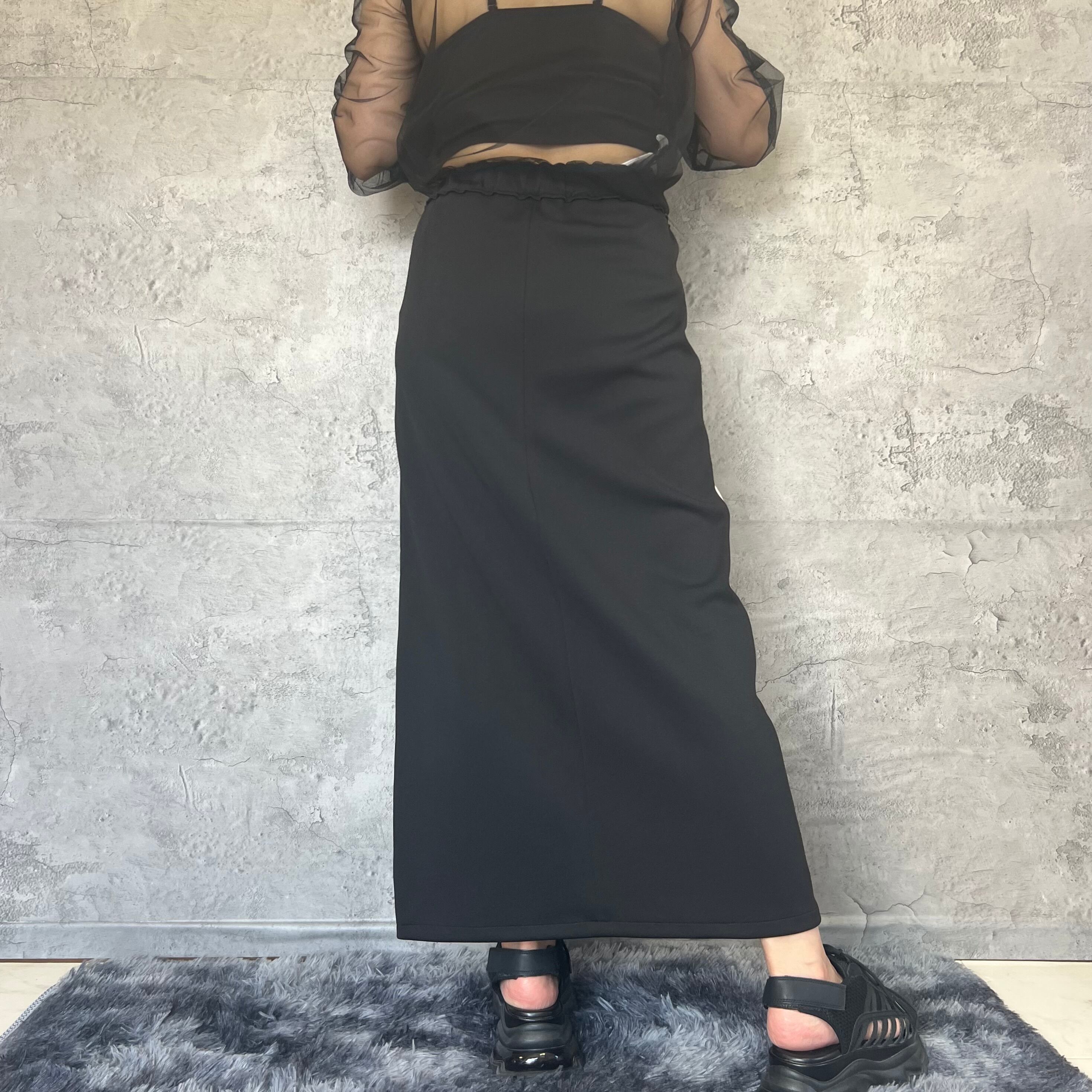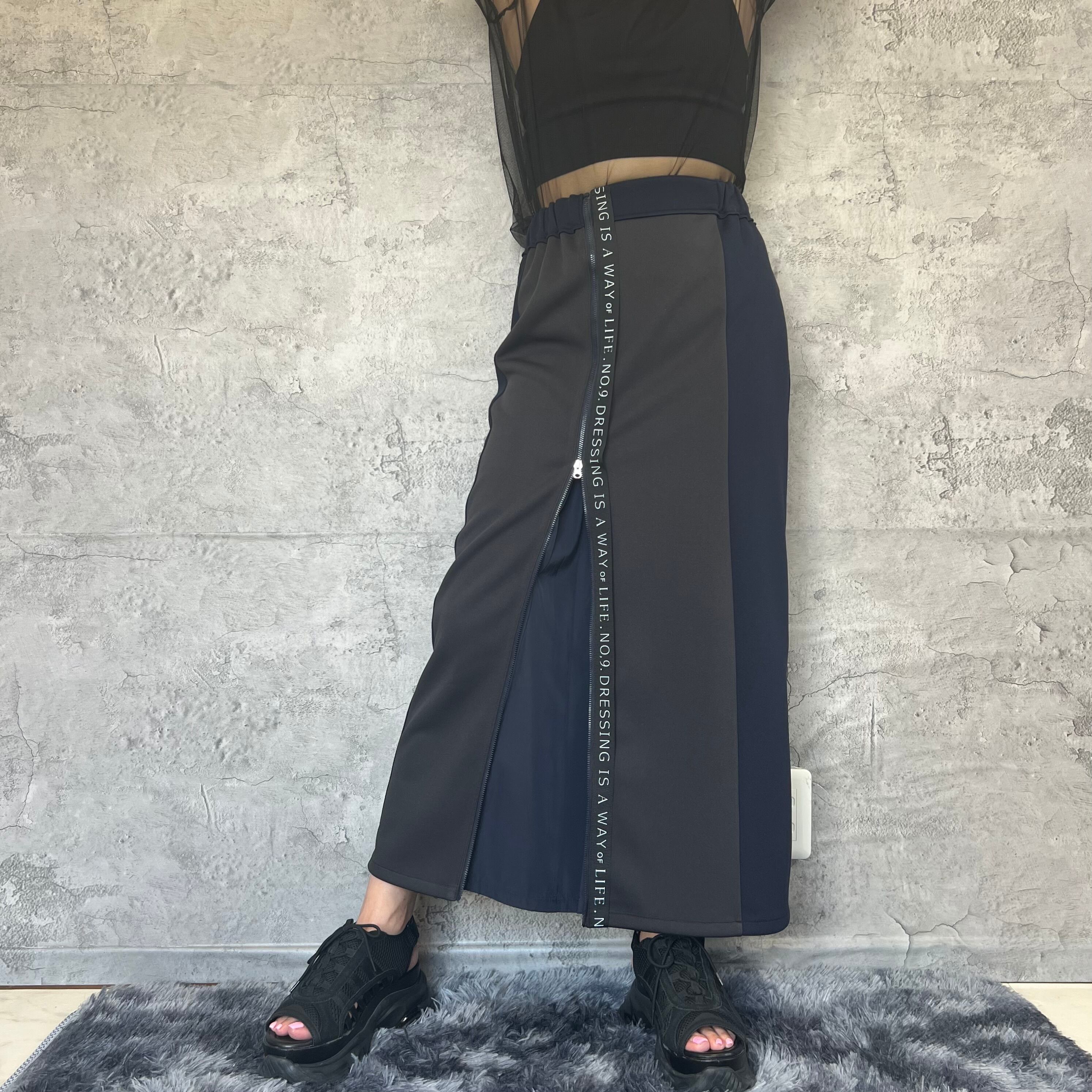 【7号~13号対応】【シルエットアレンジ可能】ZIP開閉で表情が変わるストレッチボンディングロゴテープスカート