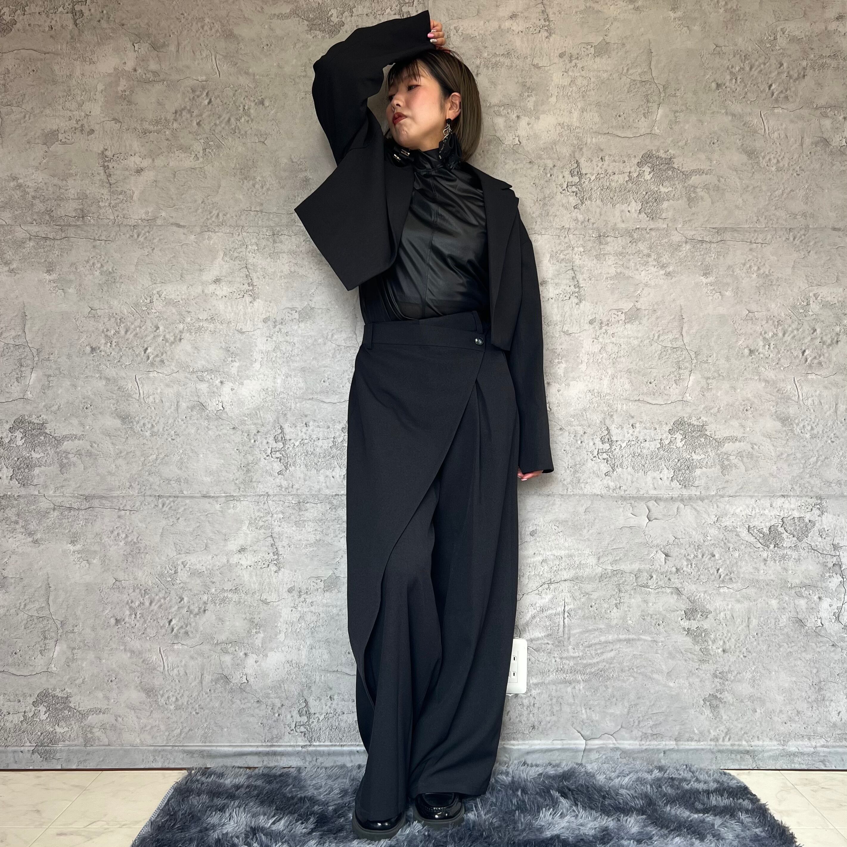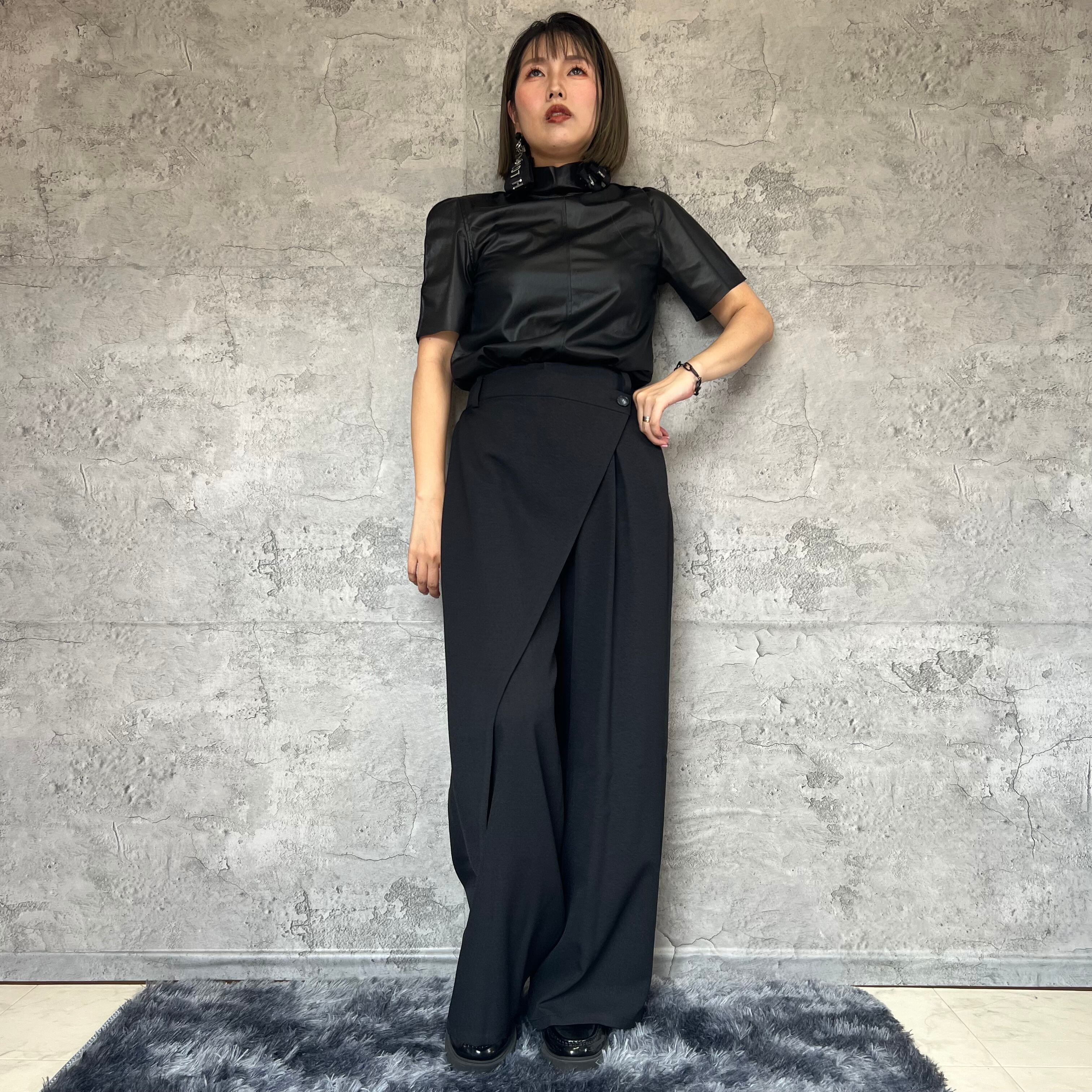このラップスラックスパンツを取り入れれば、シンプルでありながらスタイリッシュなコーディネートが完成します!