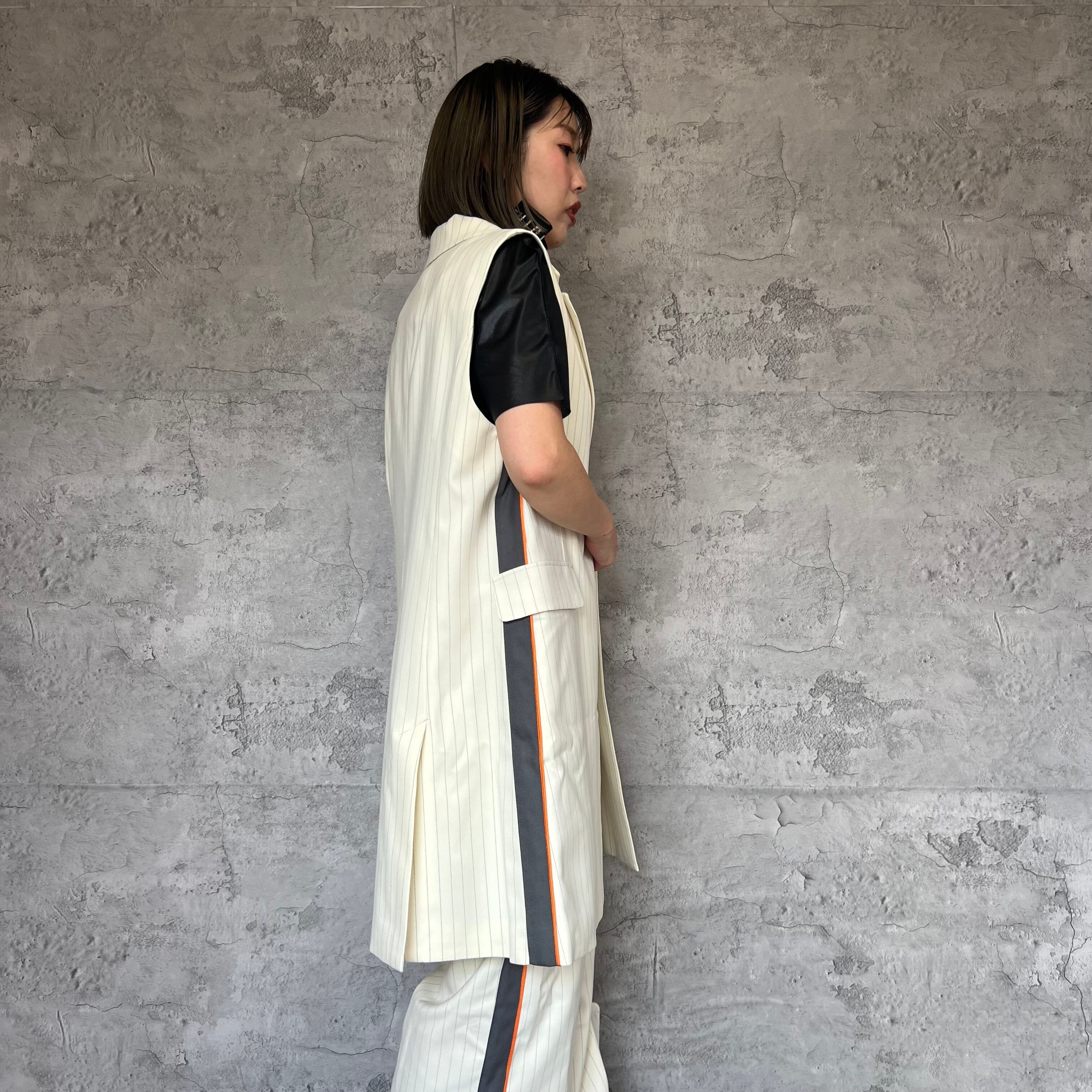 # 商品説明文:サイドラインロングジレ(ストライプ)