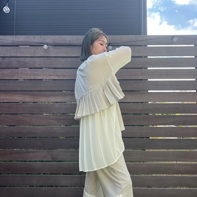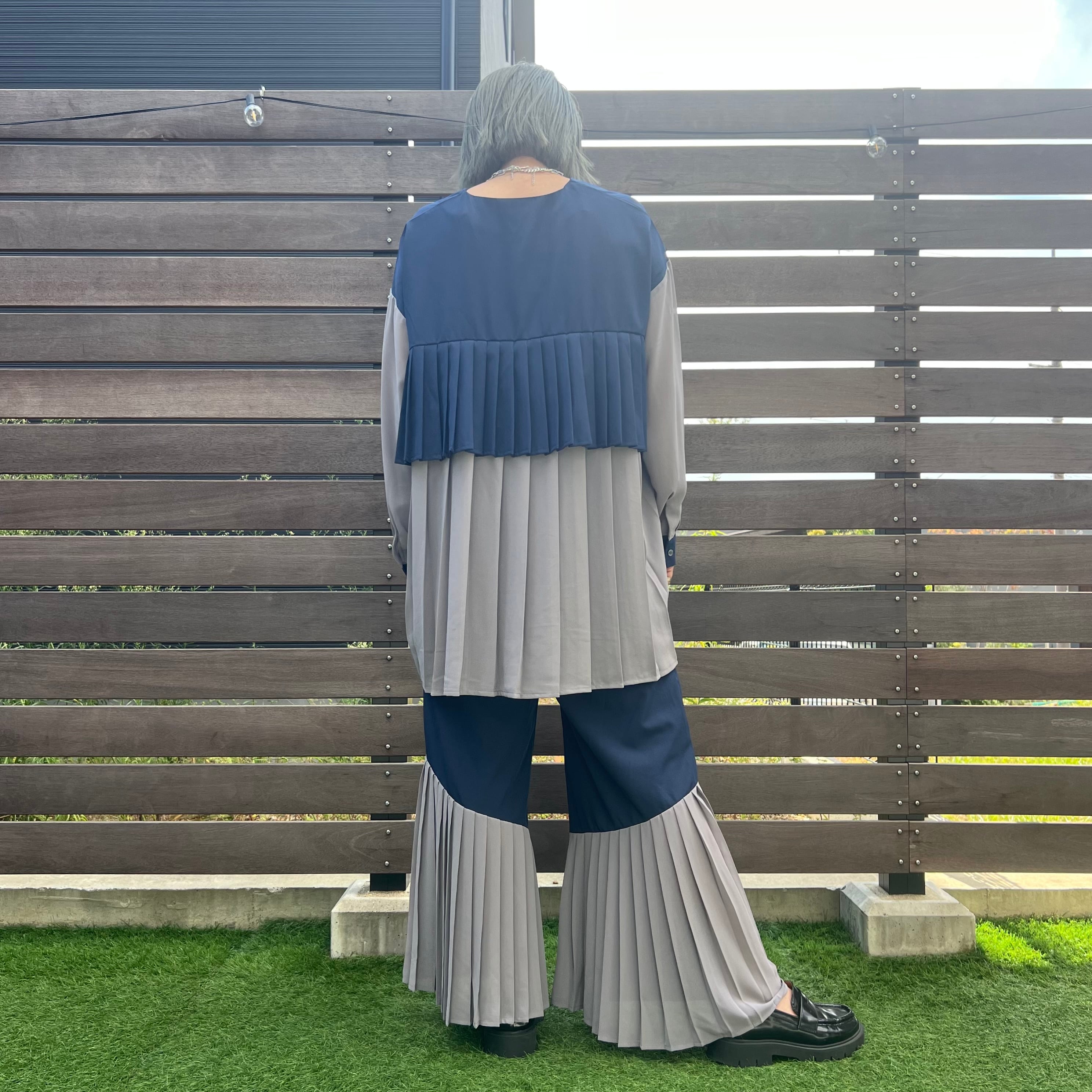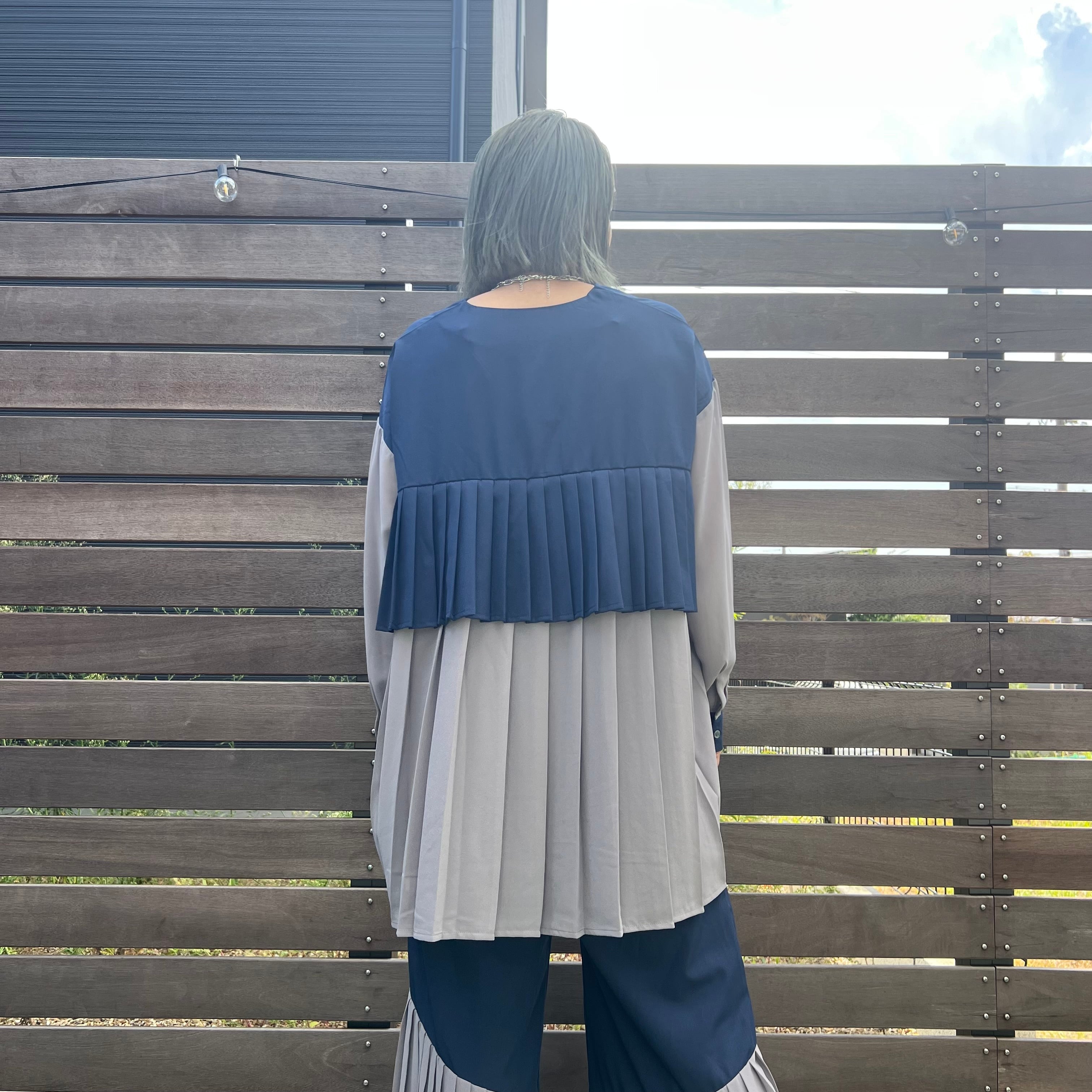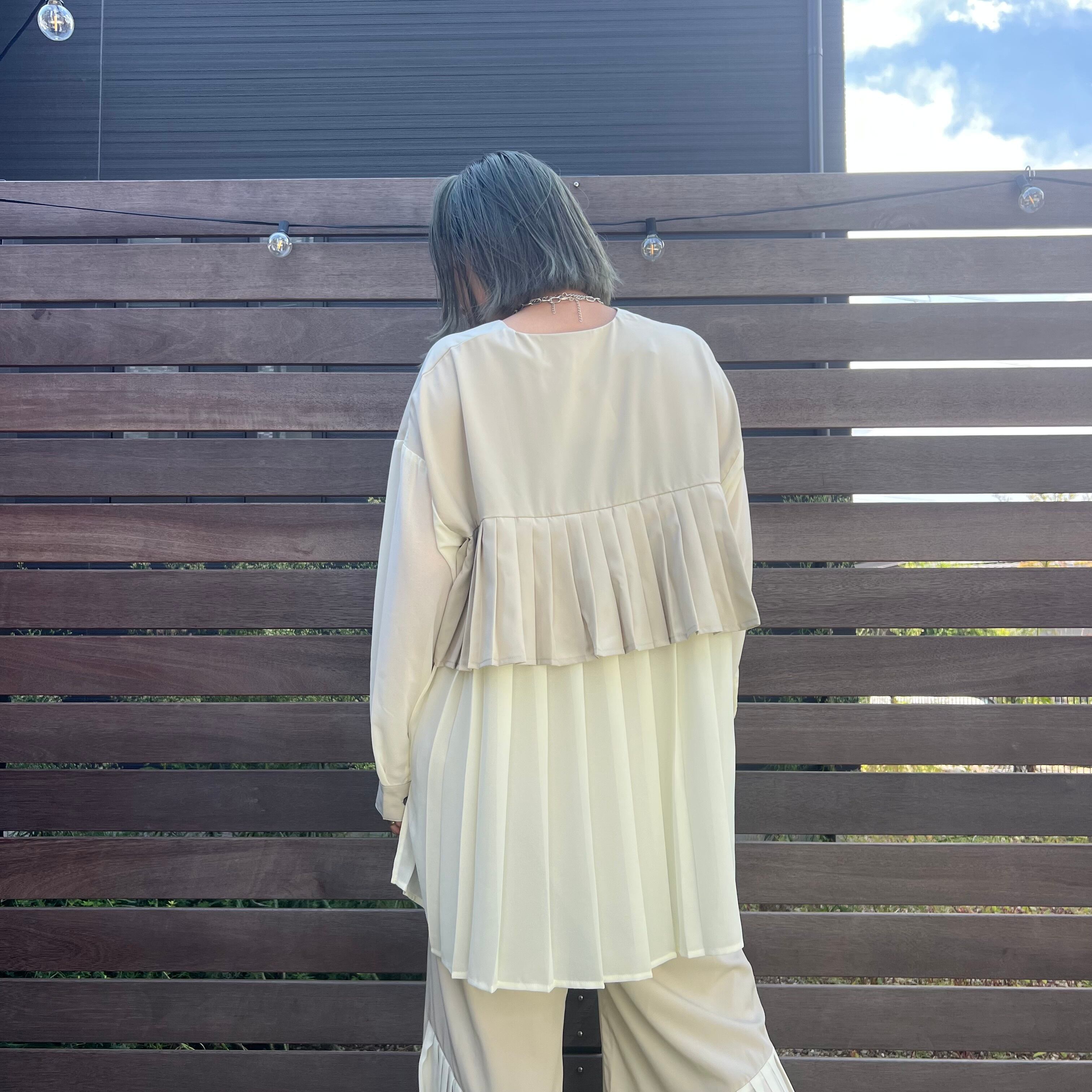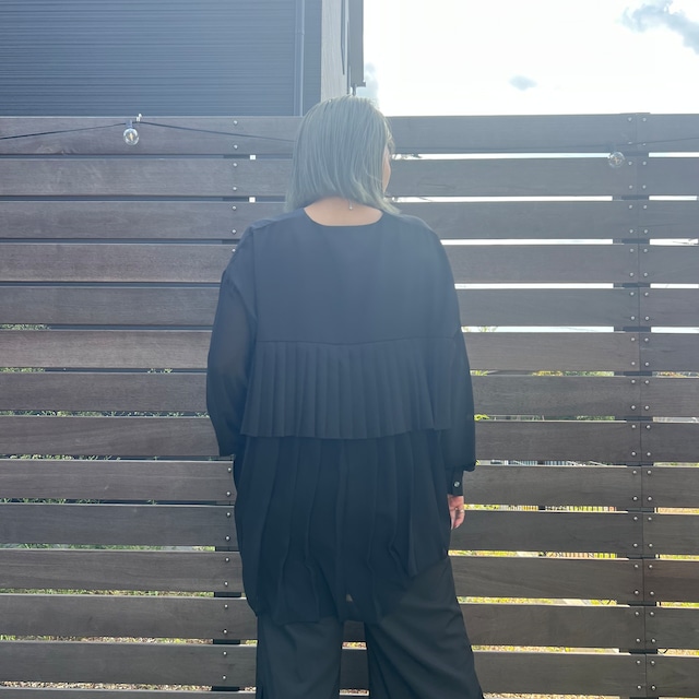 バックにピッチの違うプリーツを重ね、インパクトを放つモードなブラウス。