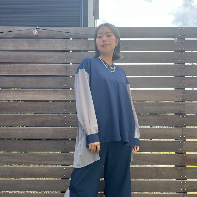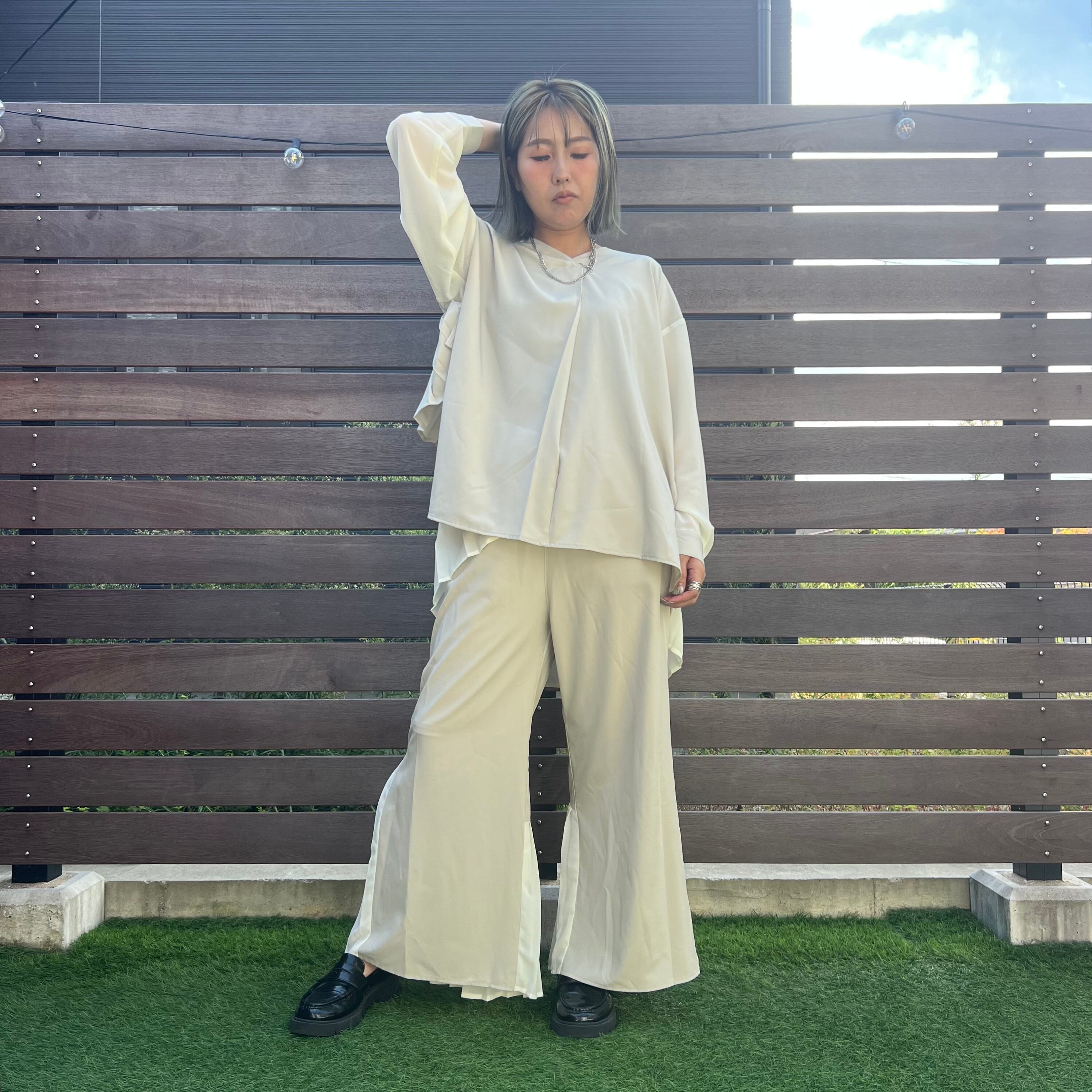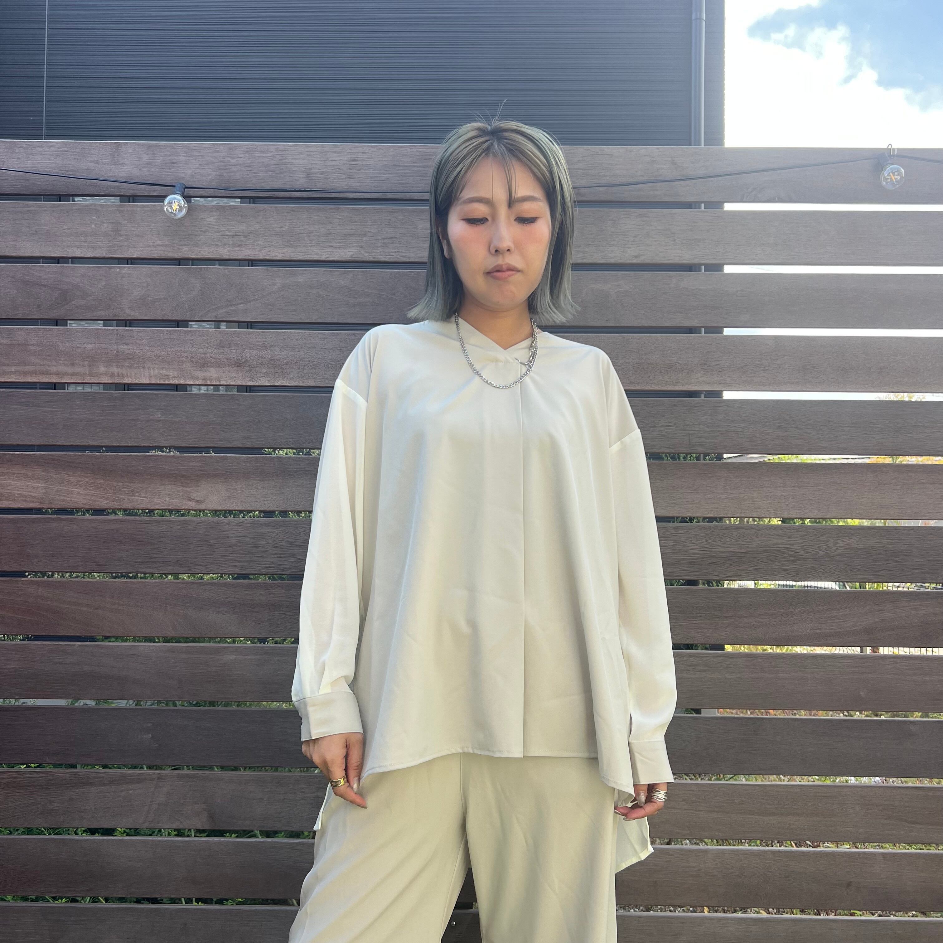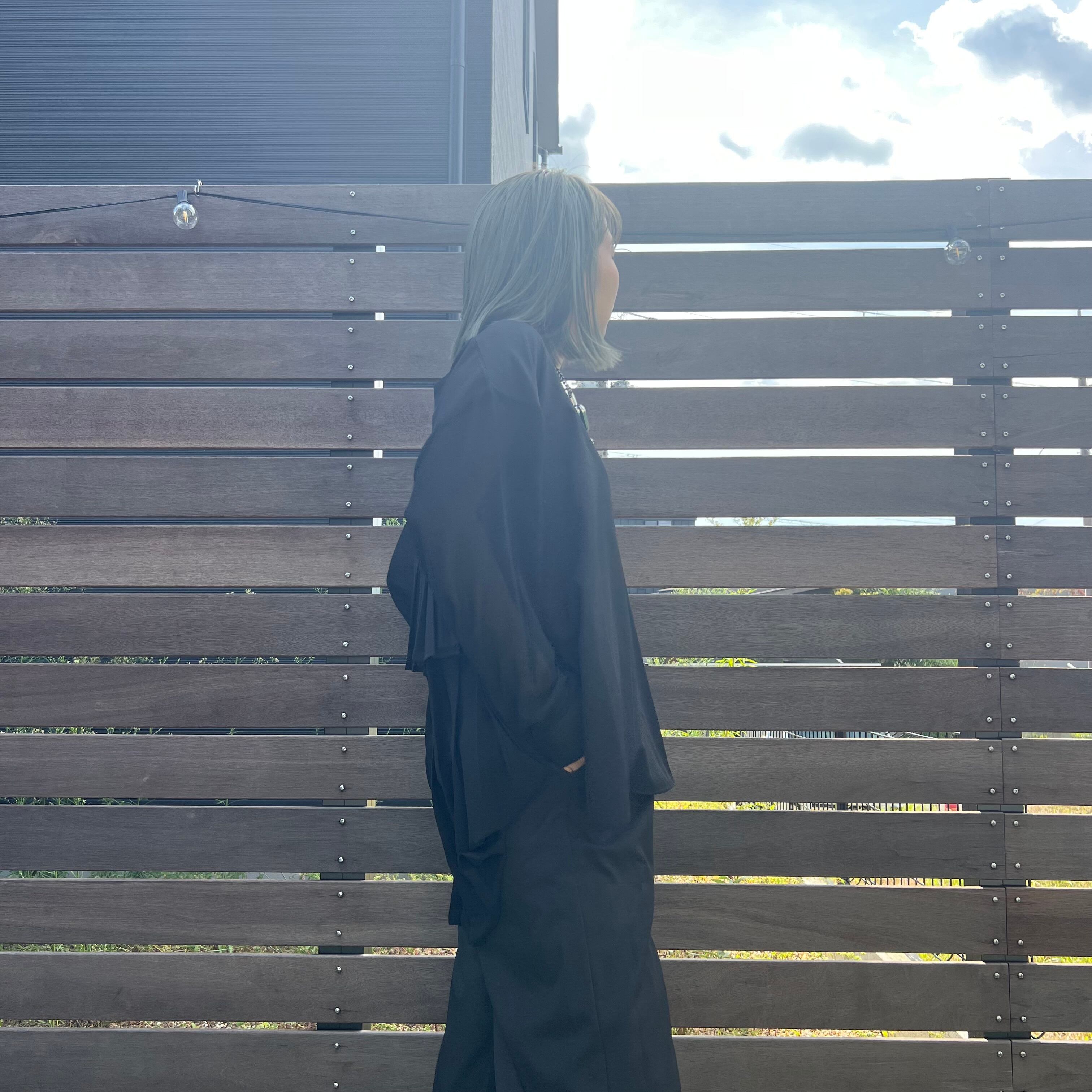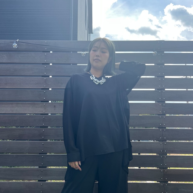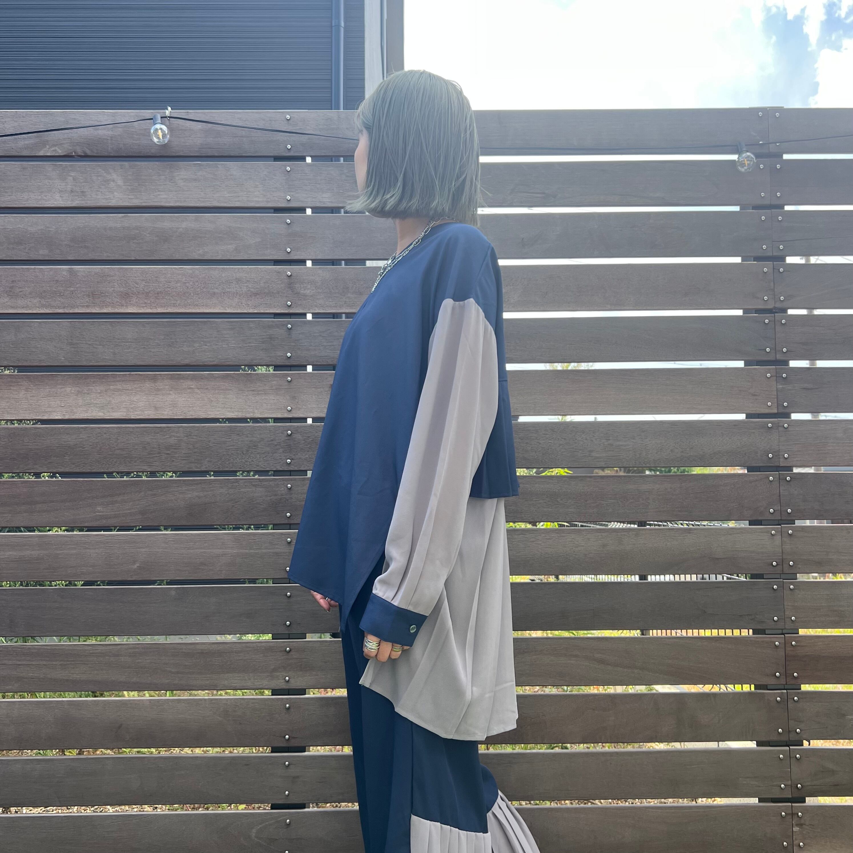 バックにピッチの違うプリーツを重ね、インパクトを放つモードなブラウス。
