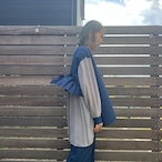 フロントはスッキリとしたシンプルなVネックで、そのギャップを楽しんで。