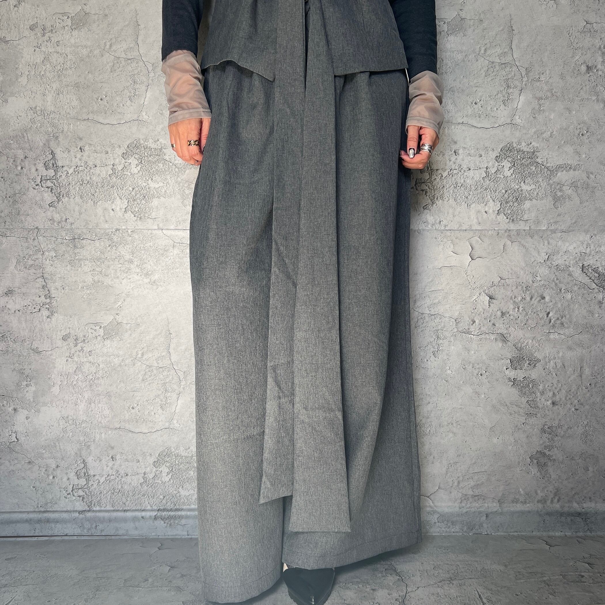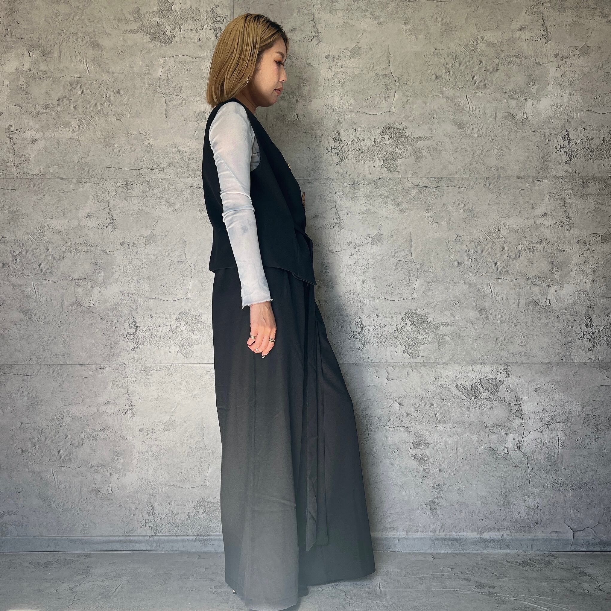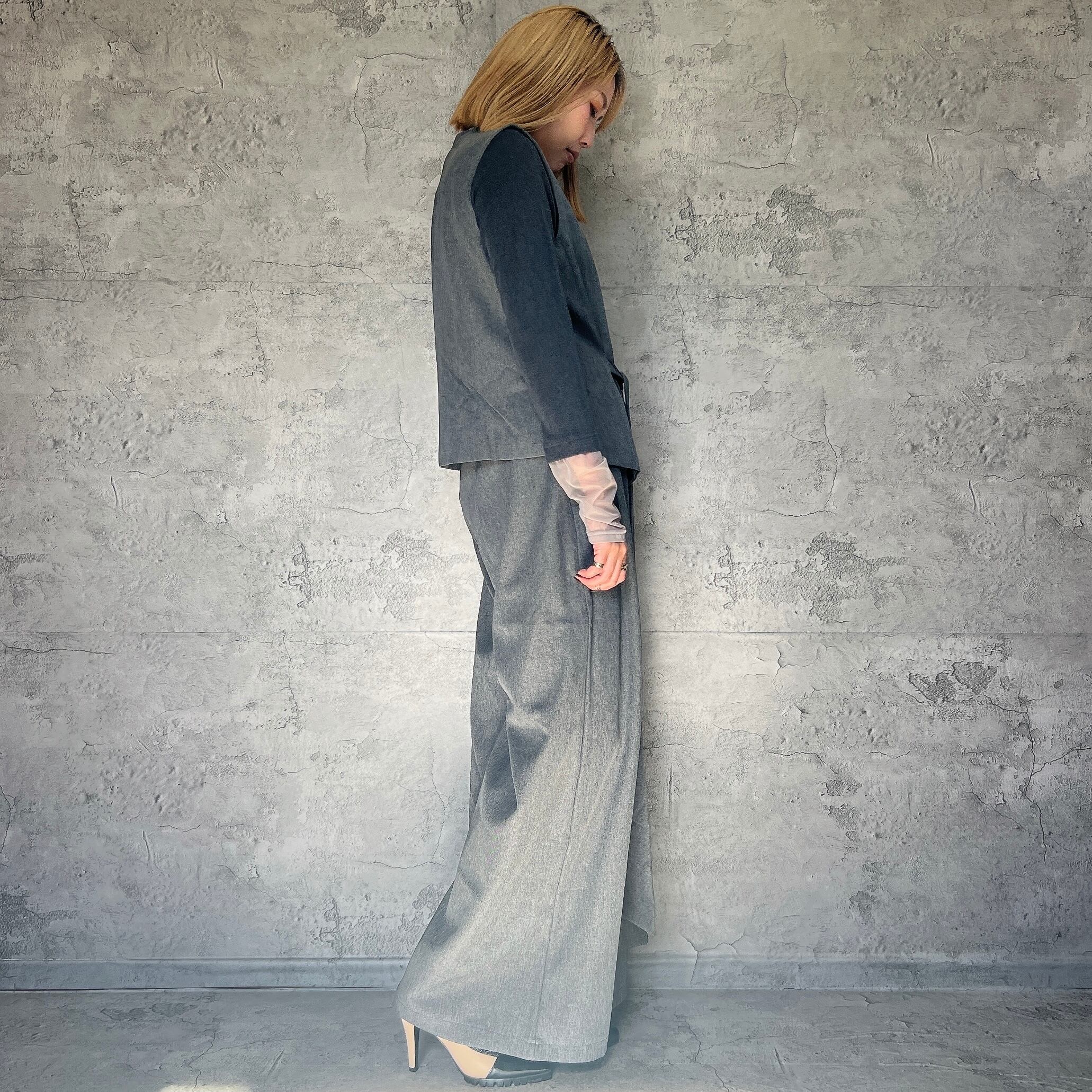 目を引くデザインボタンが特徴のセットアップ。ウエストが絞れたり垂らしたりとその日のテーマによってコーデできるよ◎