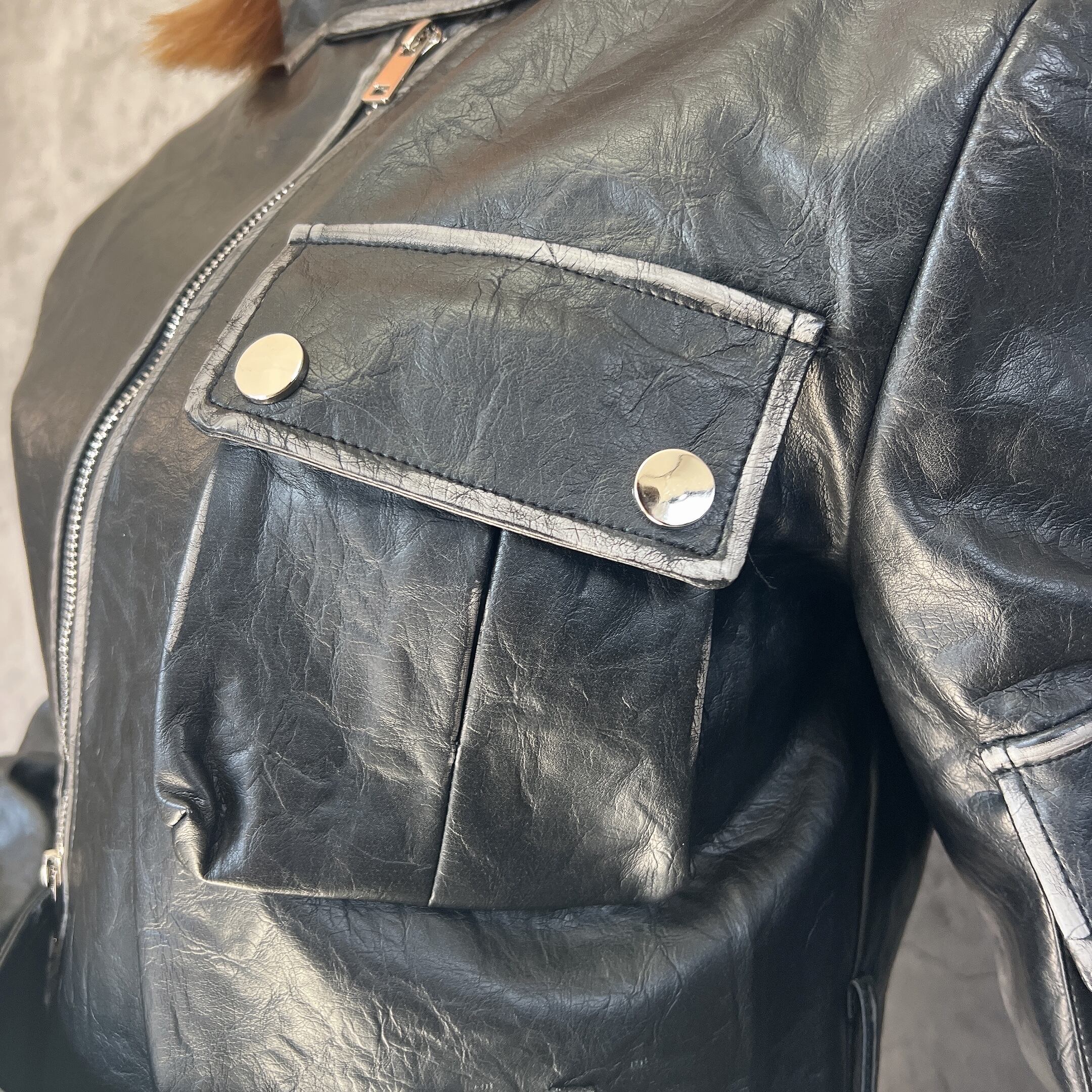 ヴィンテージ風ライダース:フェイクレザー