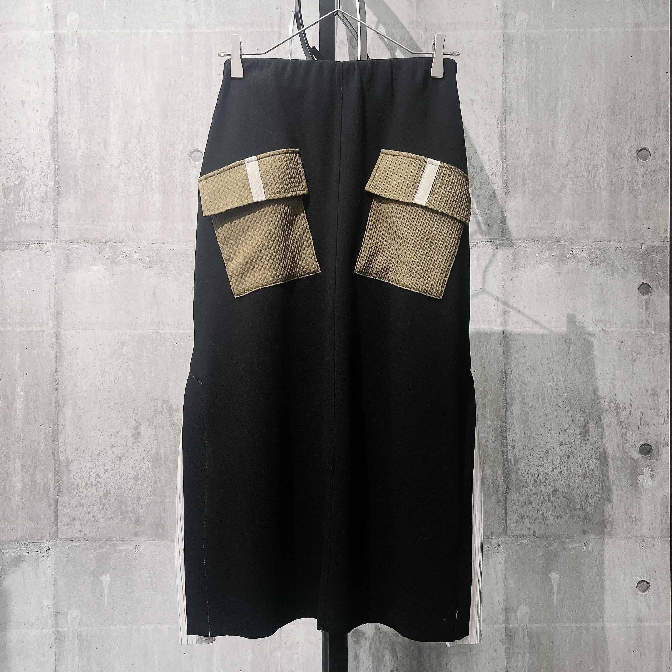 エイミー人気のポリエステルボンディング素材で仕上げたミリタリー感を楽しめるスカート。