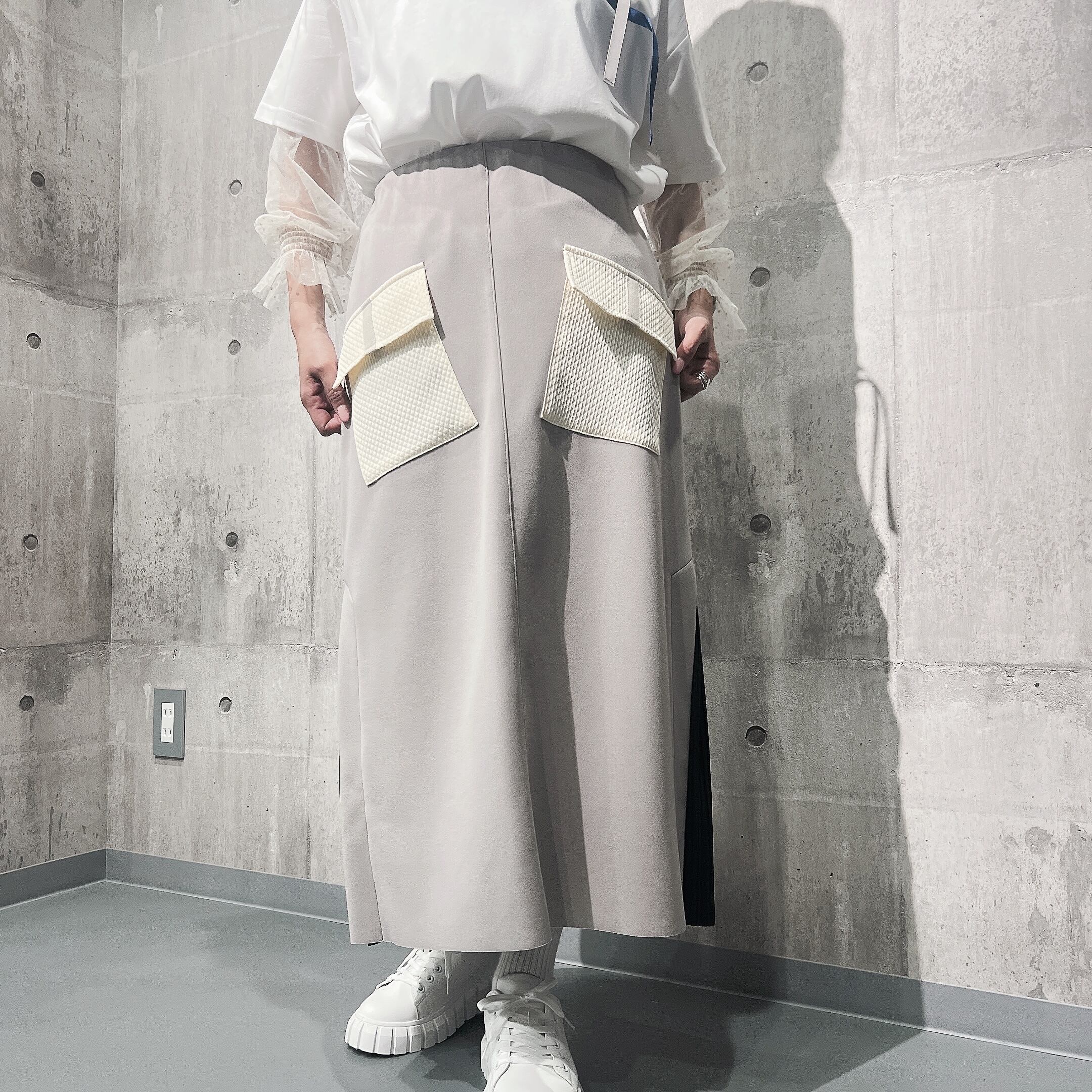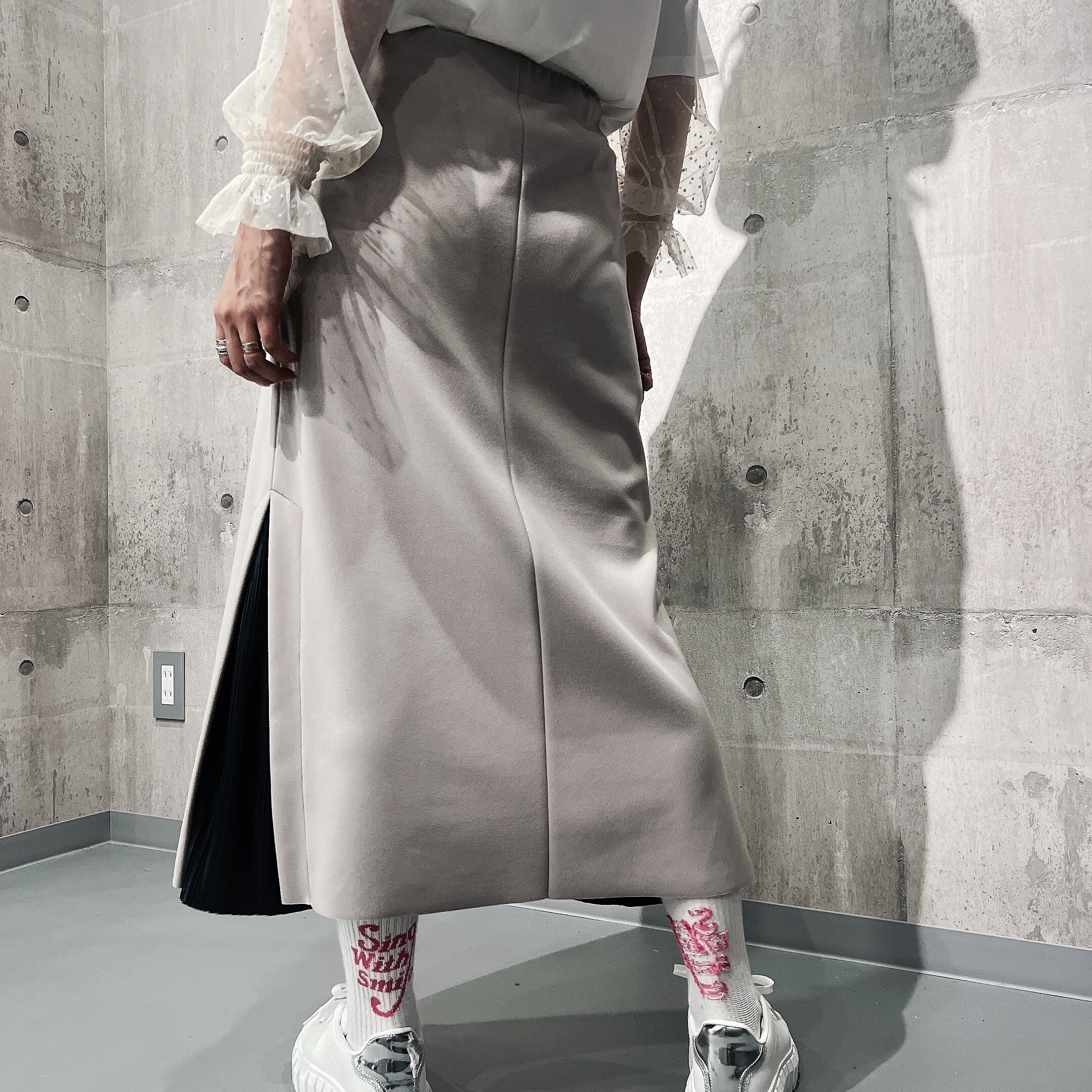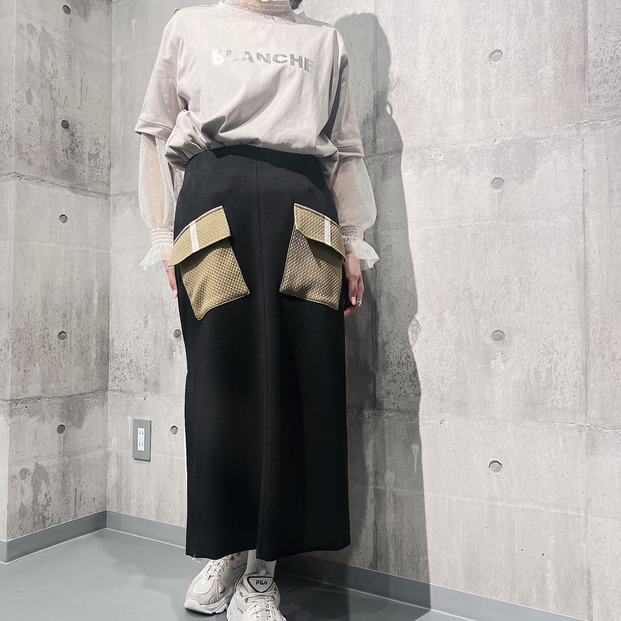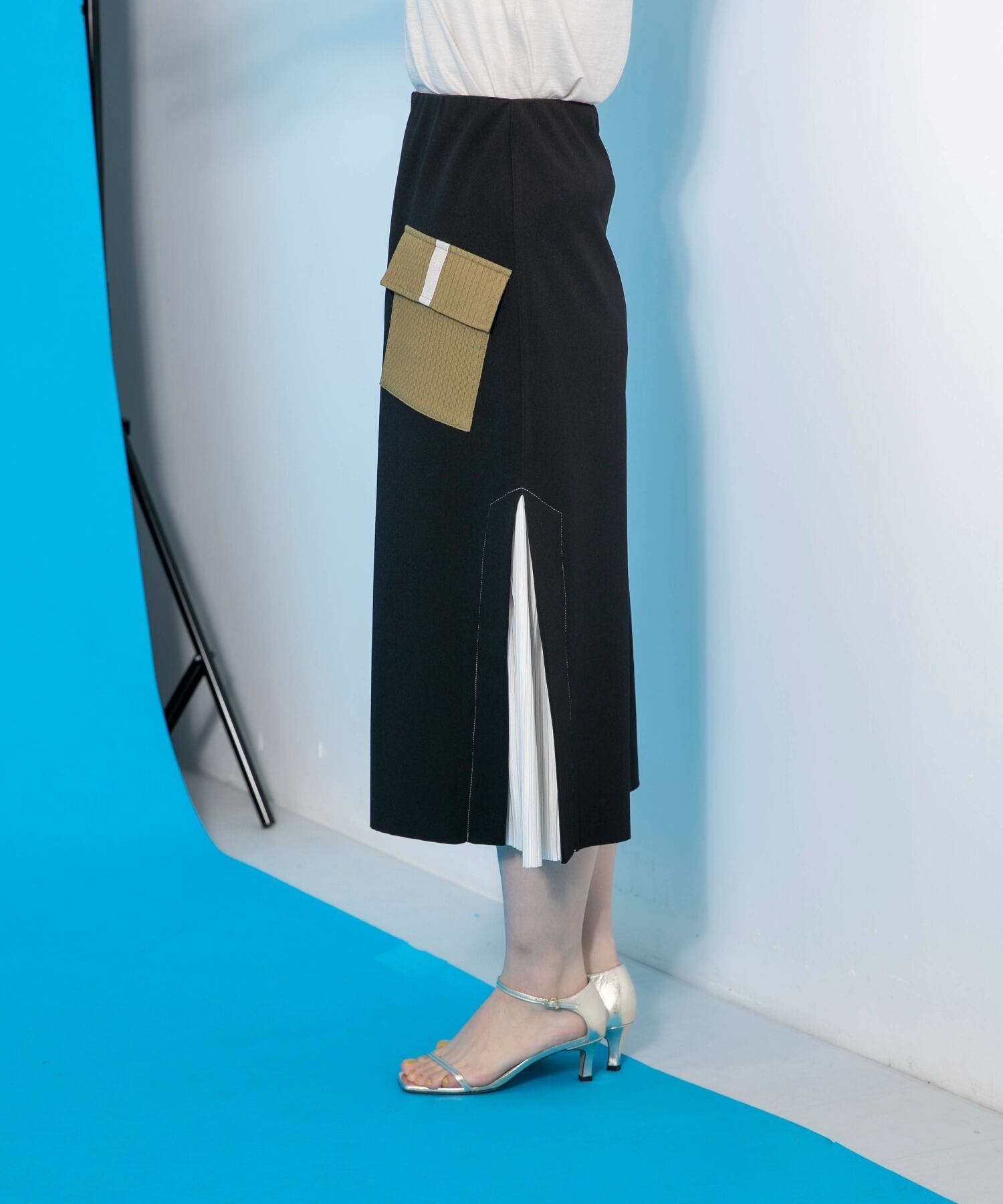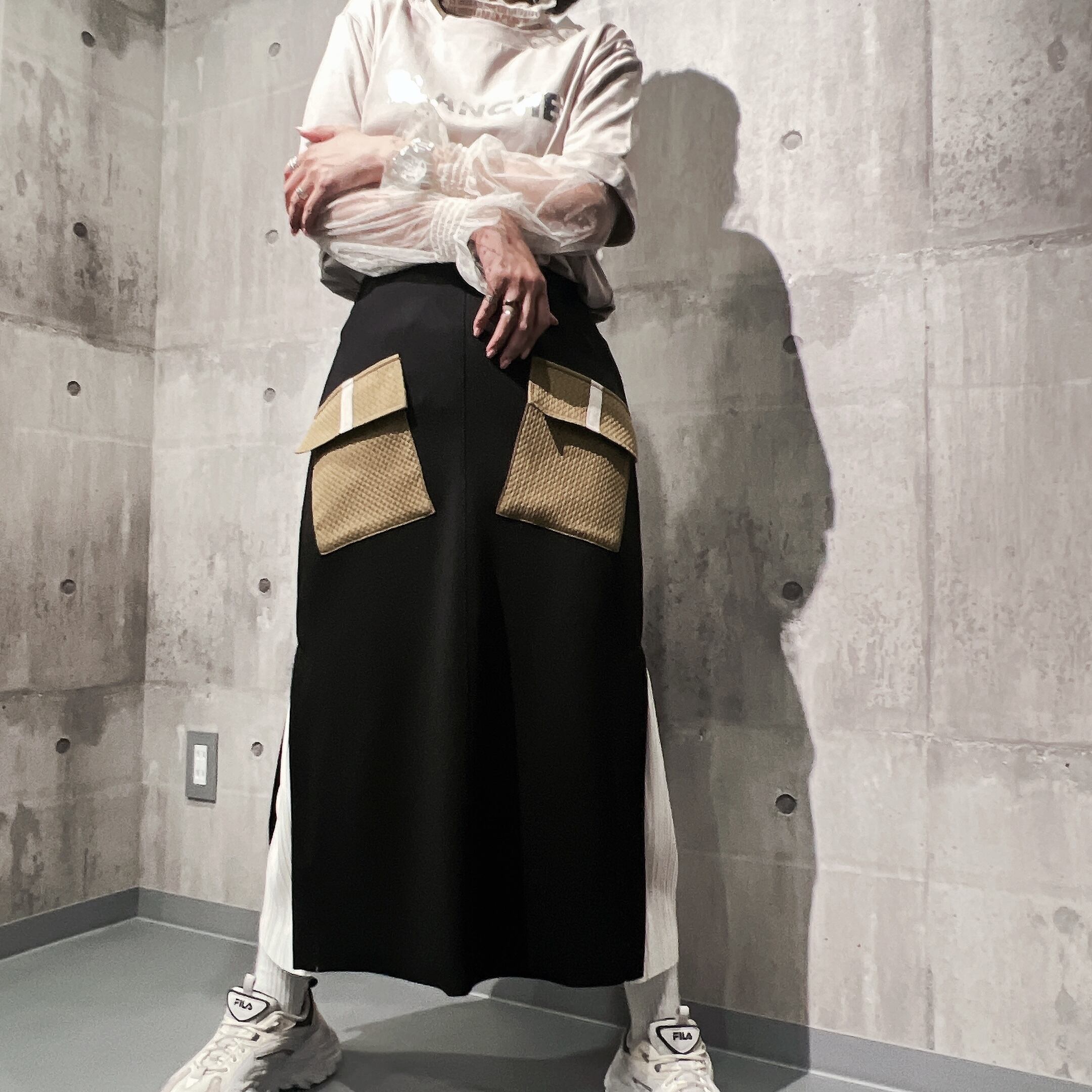 大きめに付いたポケットにサイドにあしらったプリーツが歩く度に揺れ動く魅力的なデザイン。