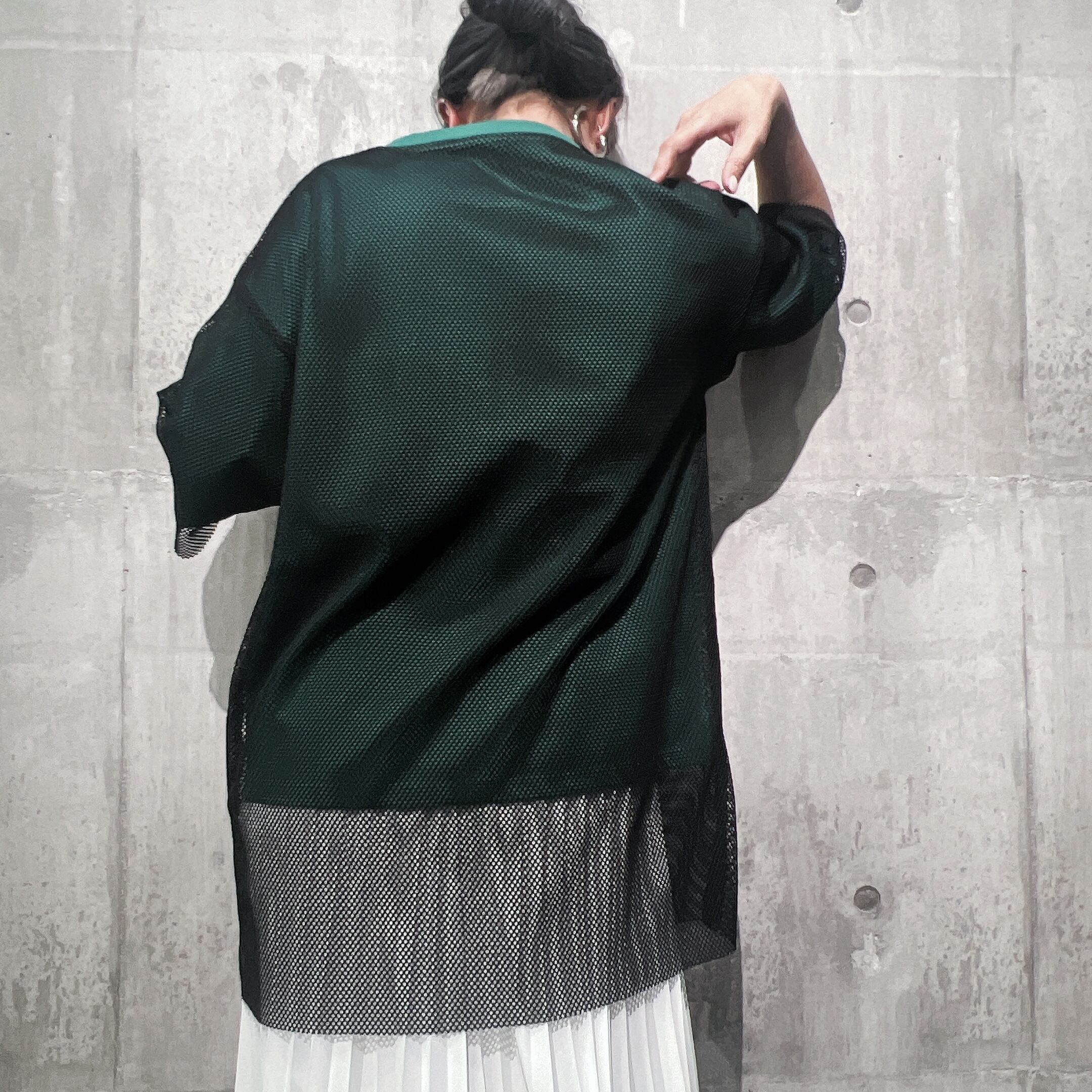 トレンドのメッシュデザインにオーバーシルエットがポイント。