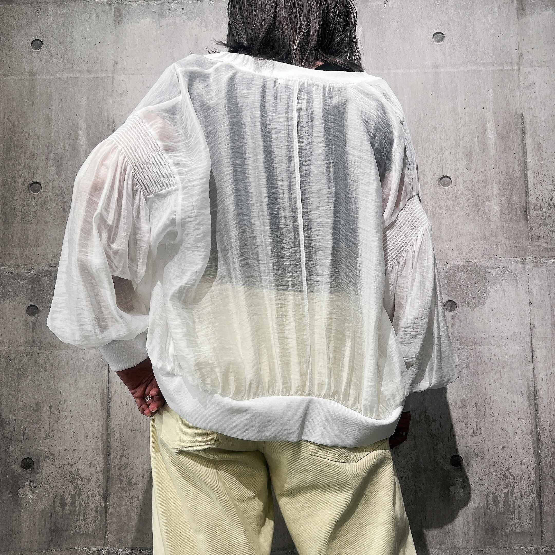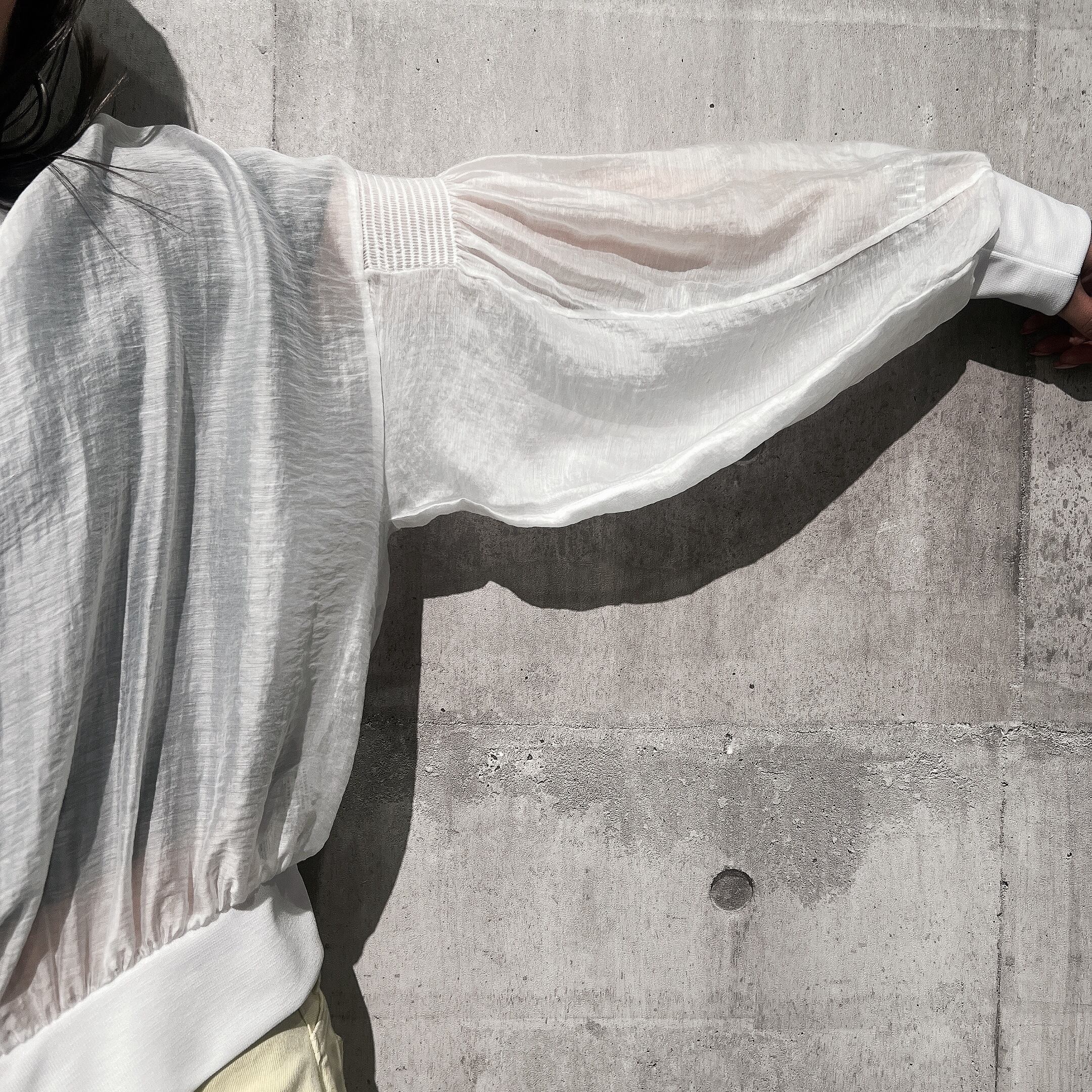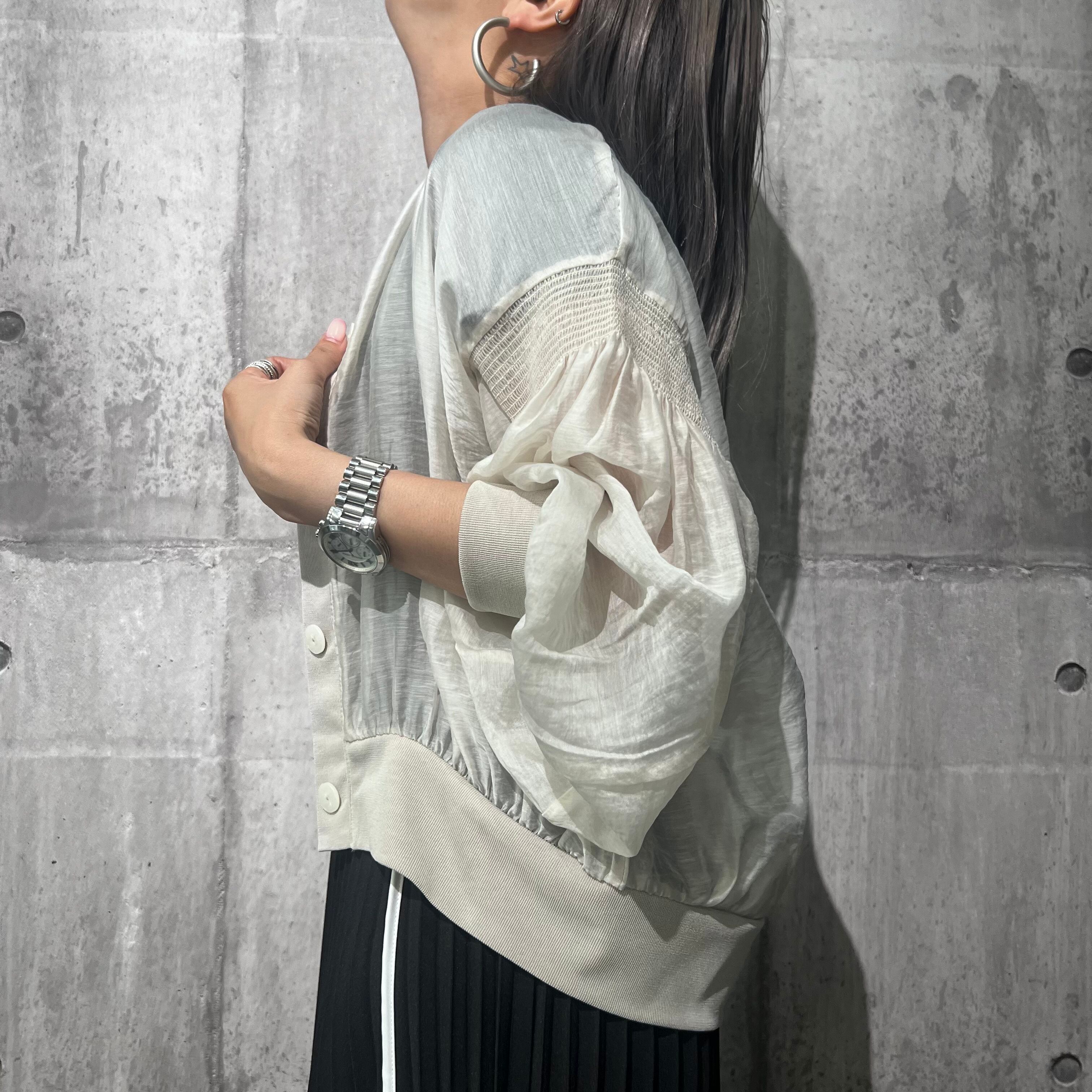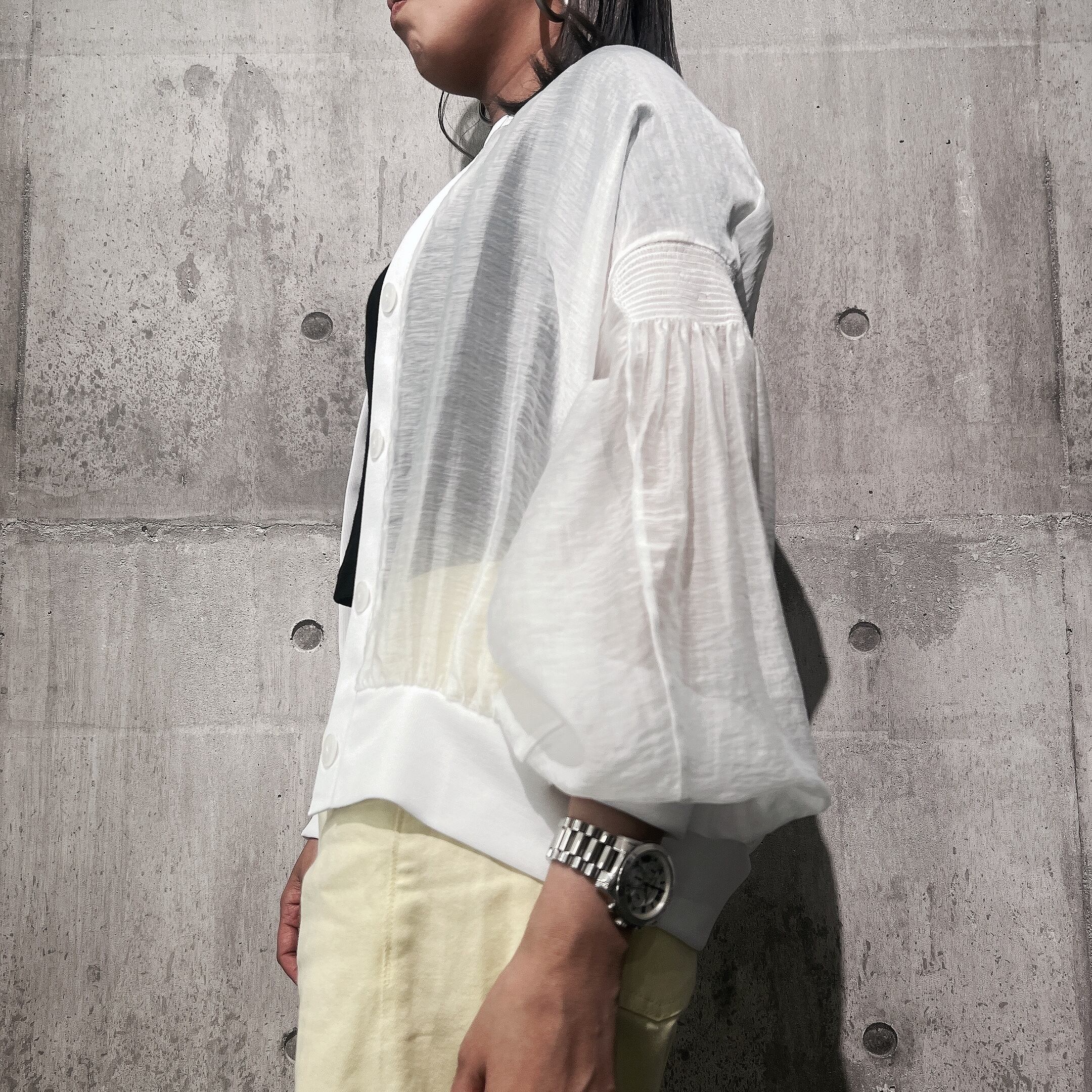 フワッと仕上げたギャザー感が可愛いシアーな羽織りアイテム。
