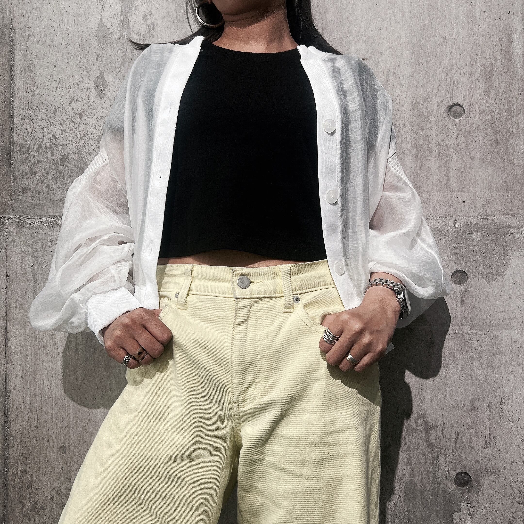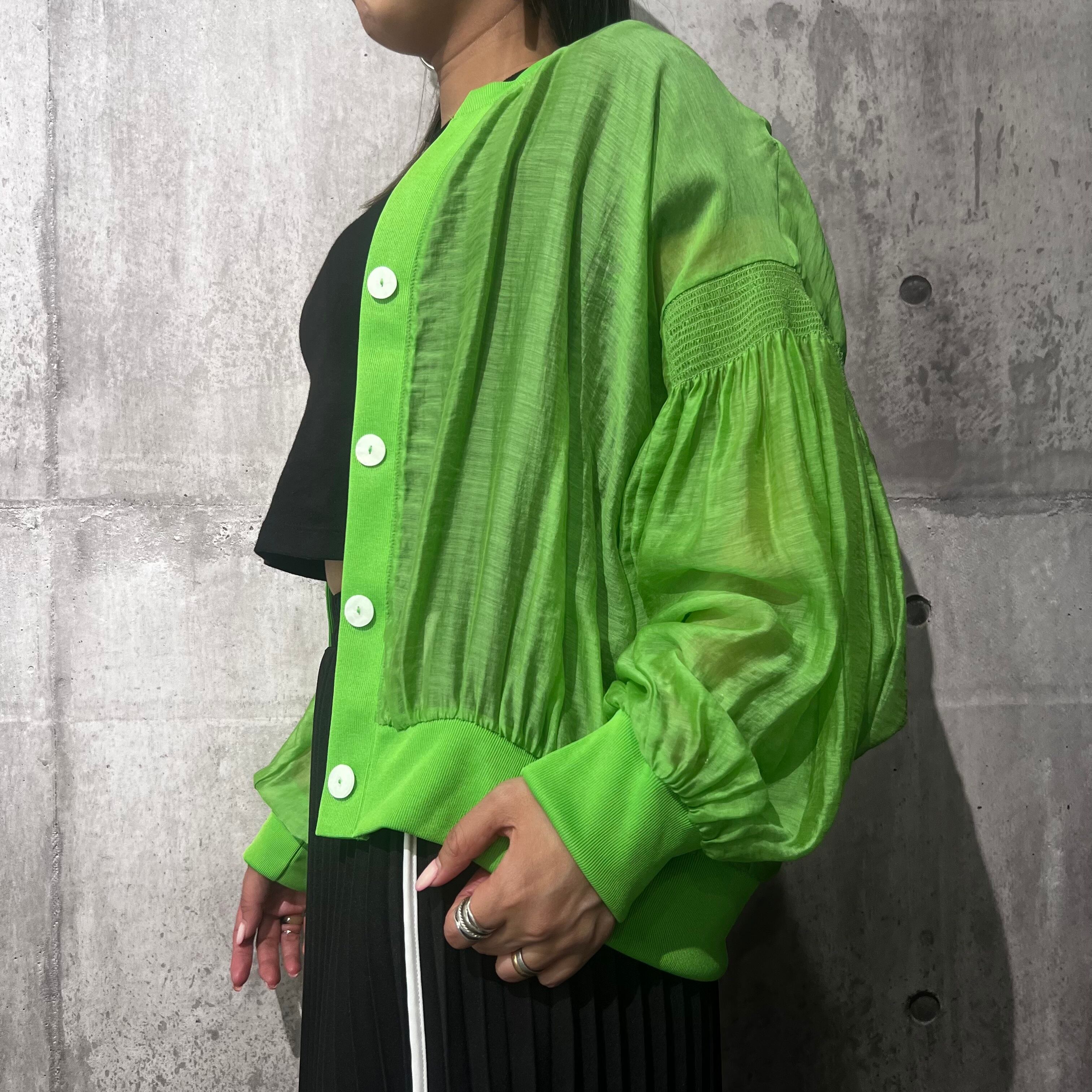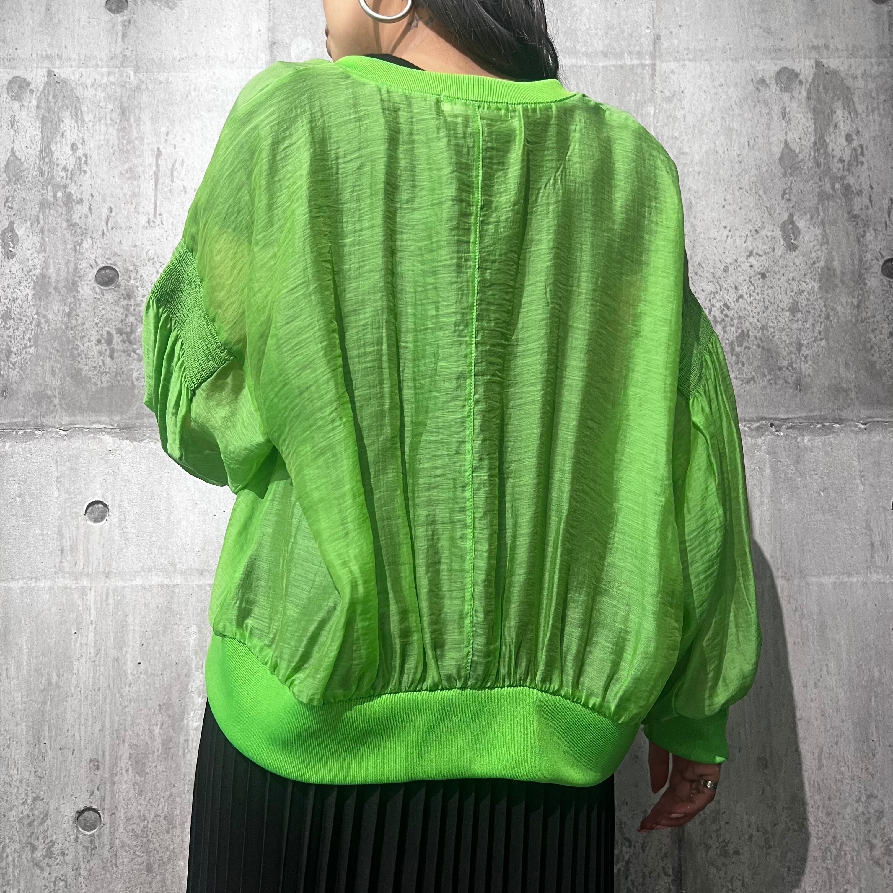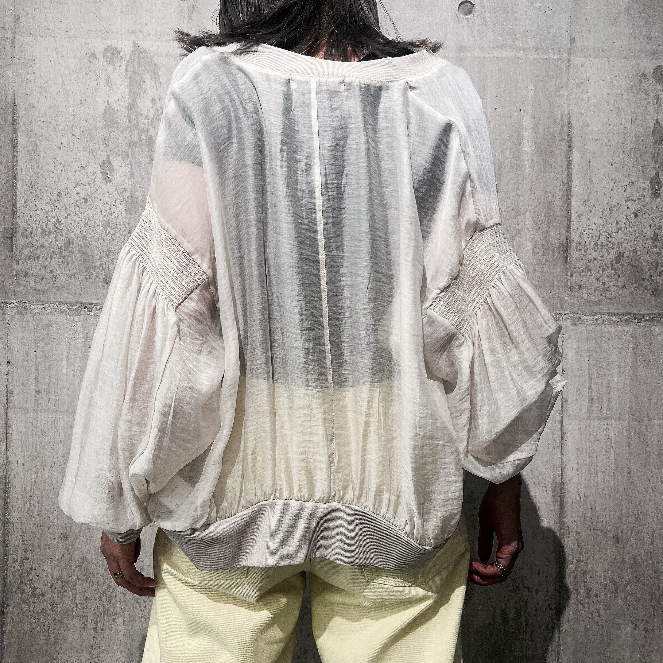 フワッと仕上げたギャザー感が可愛いシアーな羽織りアイテム。