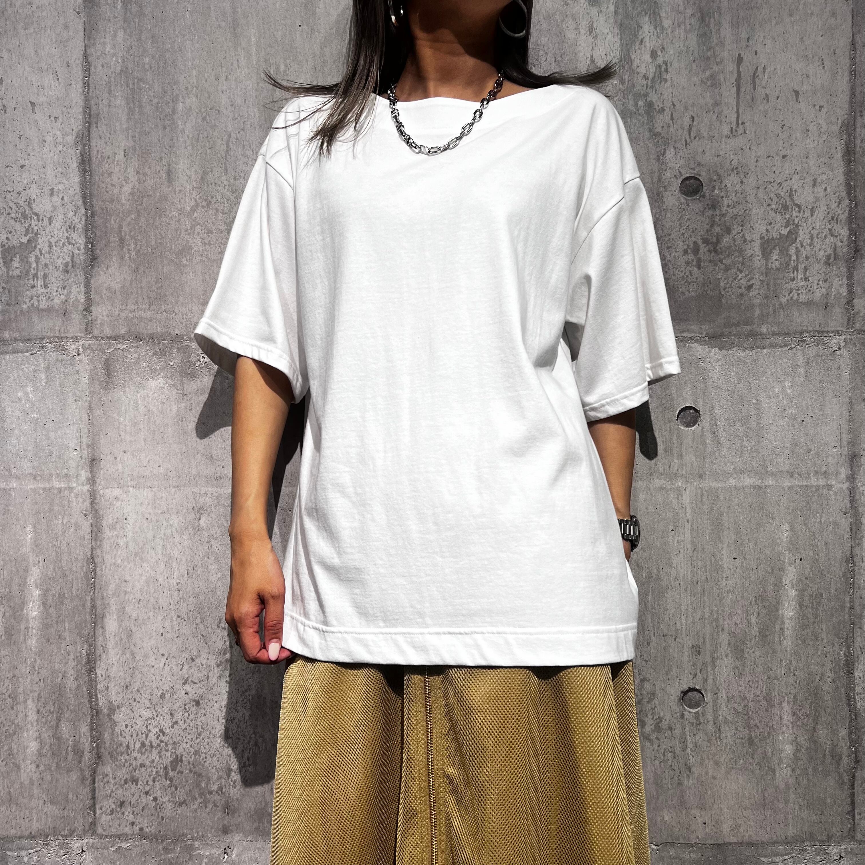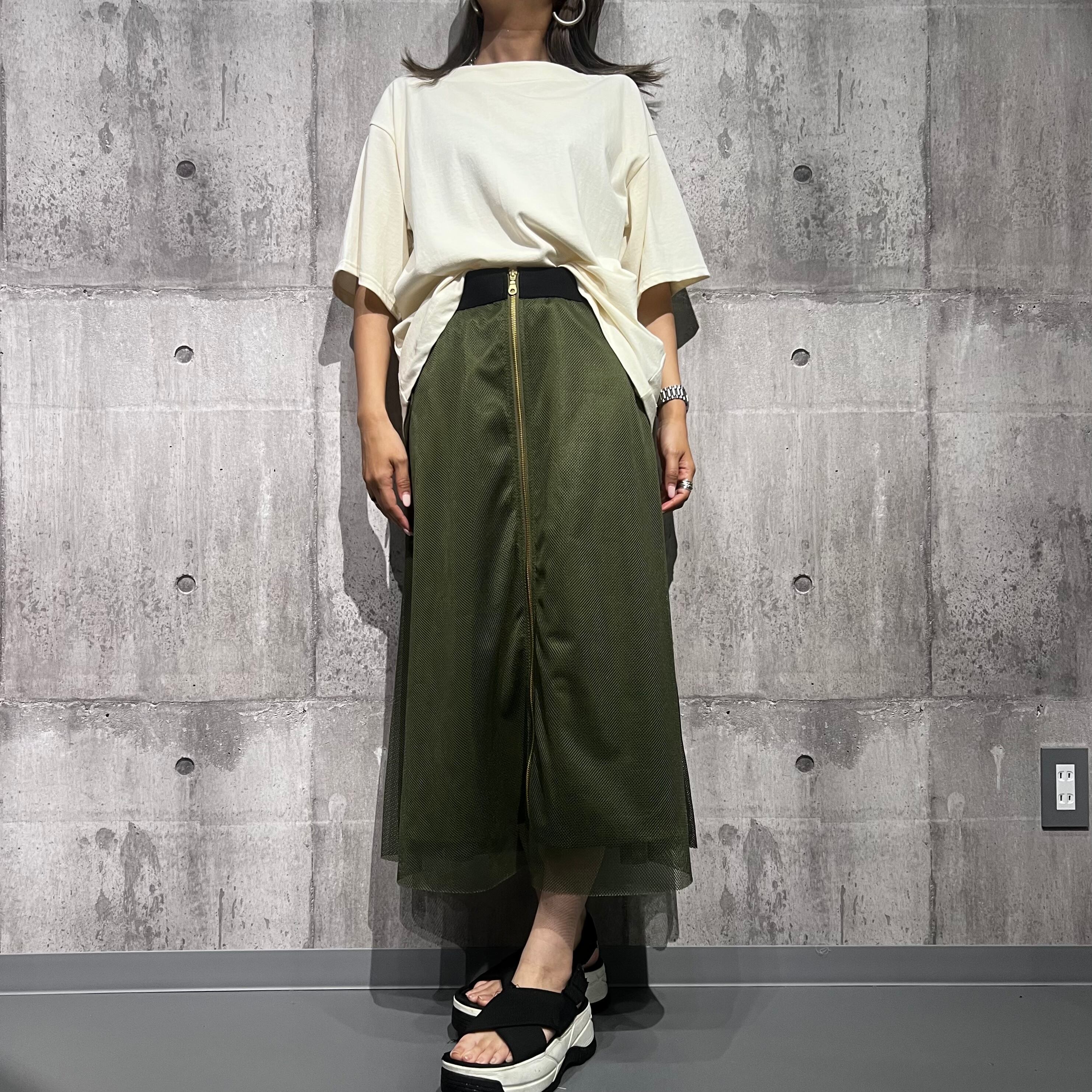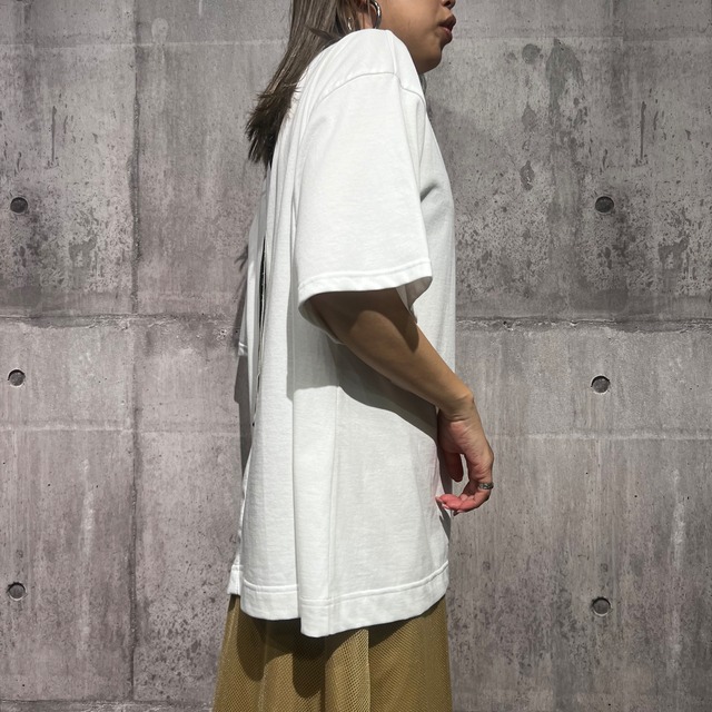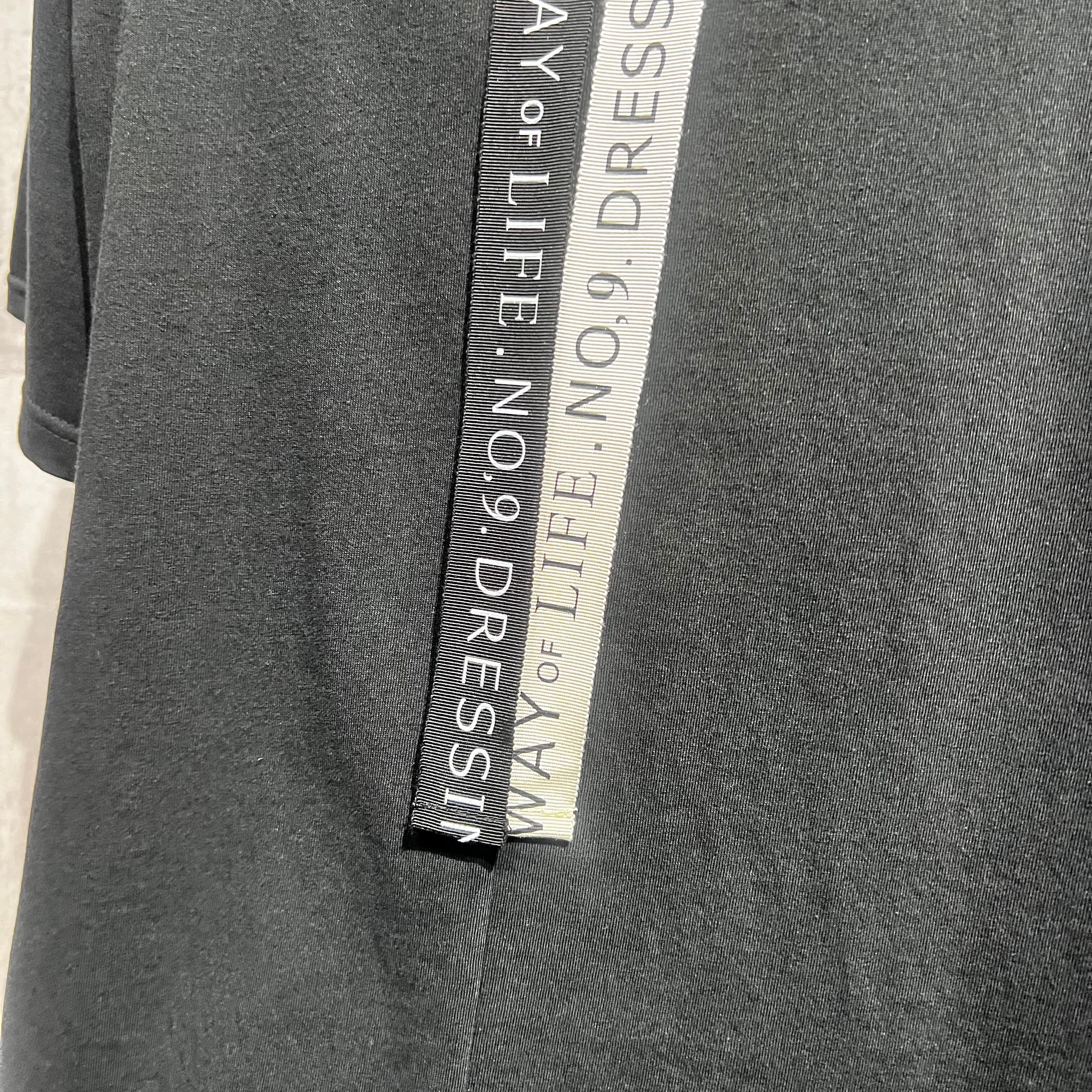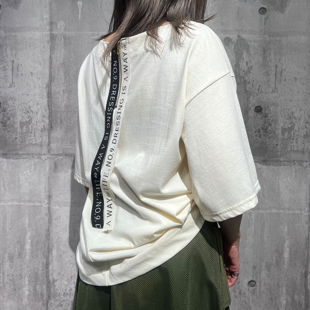 バックのファスナーと、オリジナルのロゴテープが印象的なTシャツです。