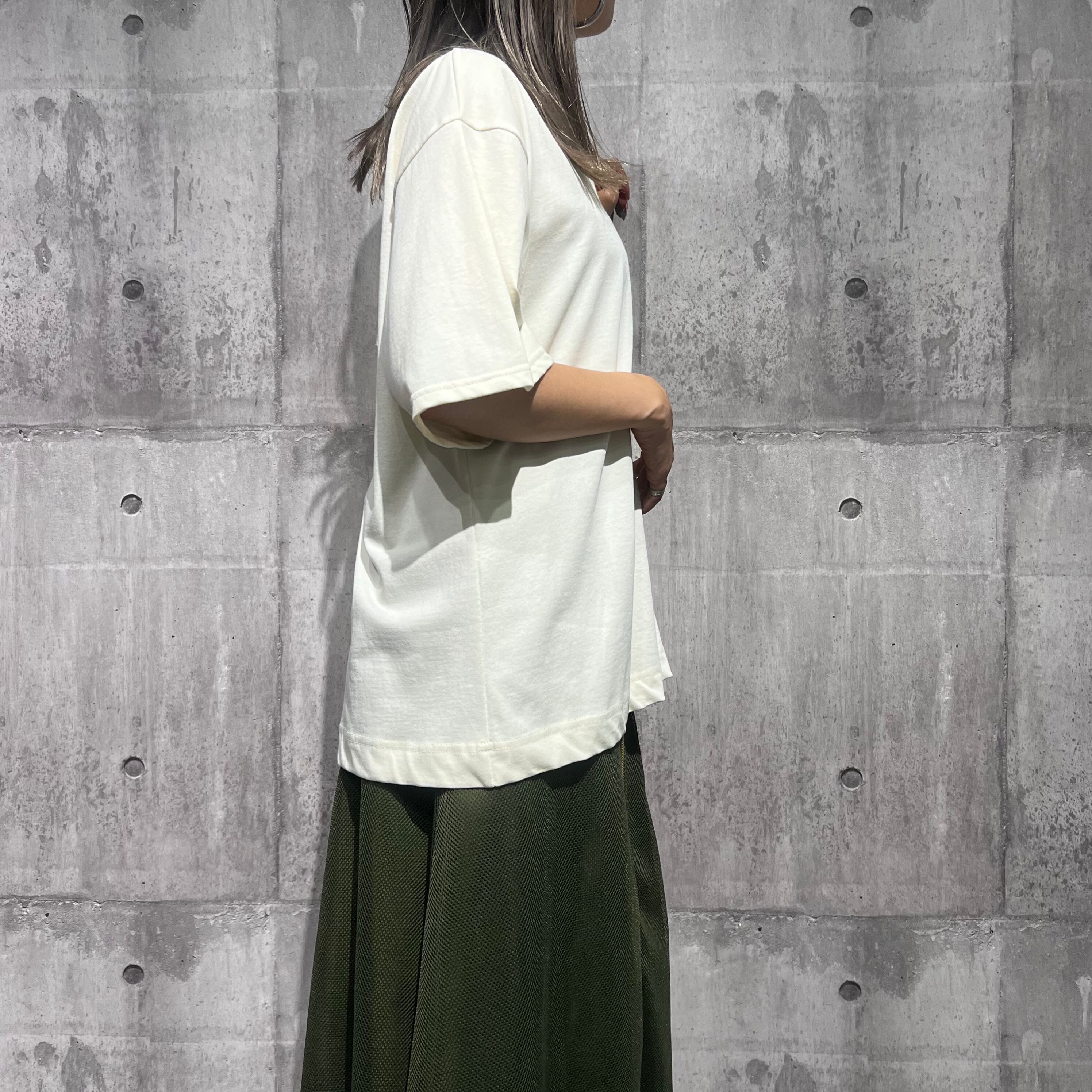 ポリエステル混のコットン素材を綺麗目に仕上げたTシャツ。