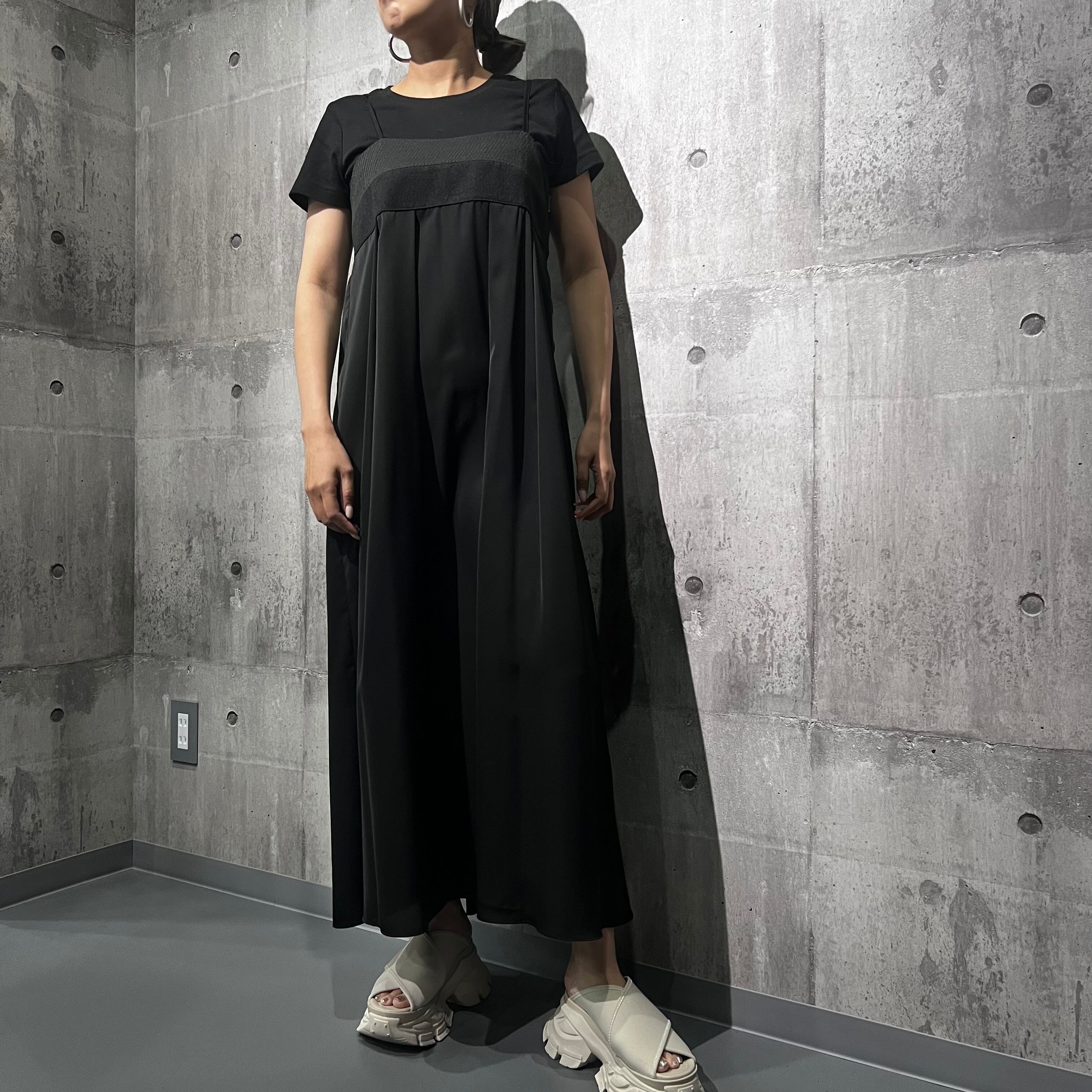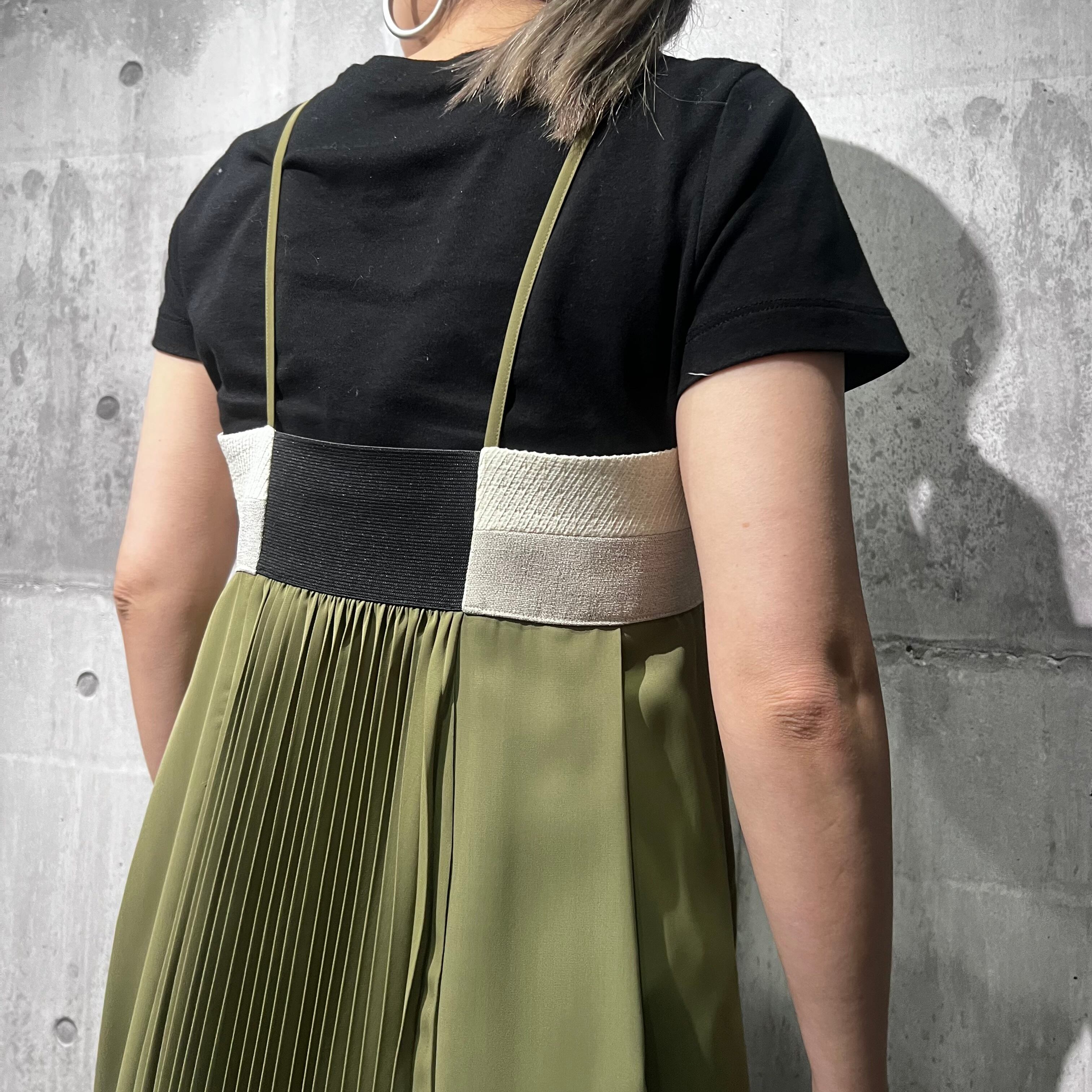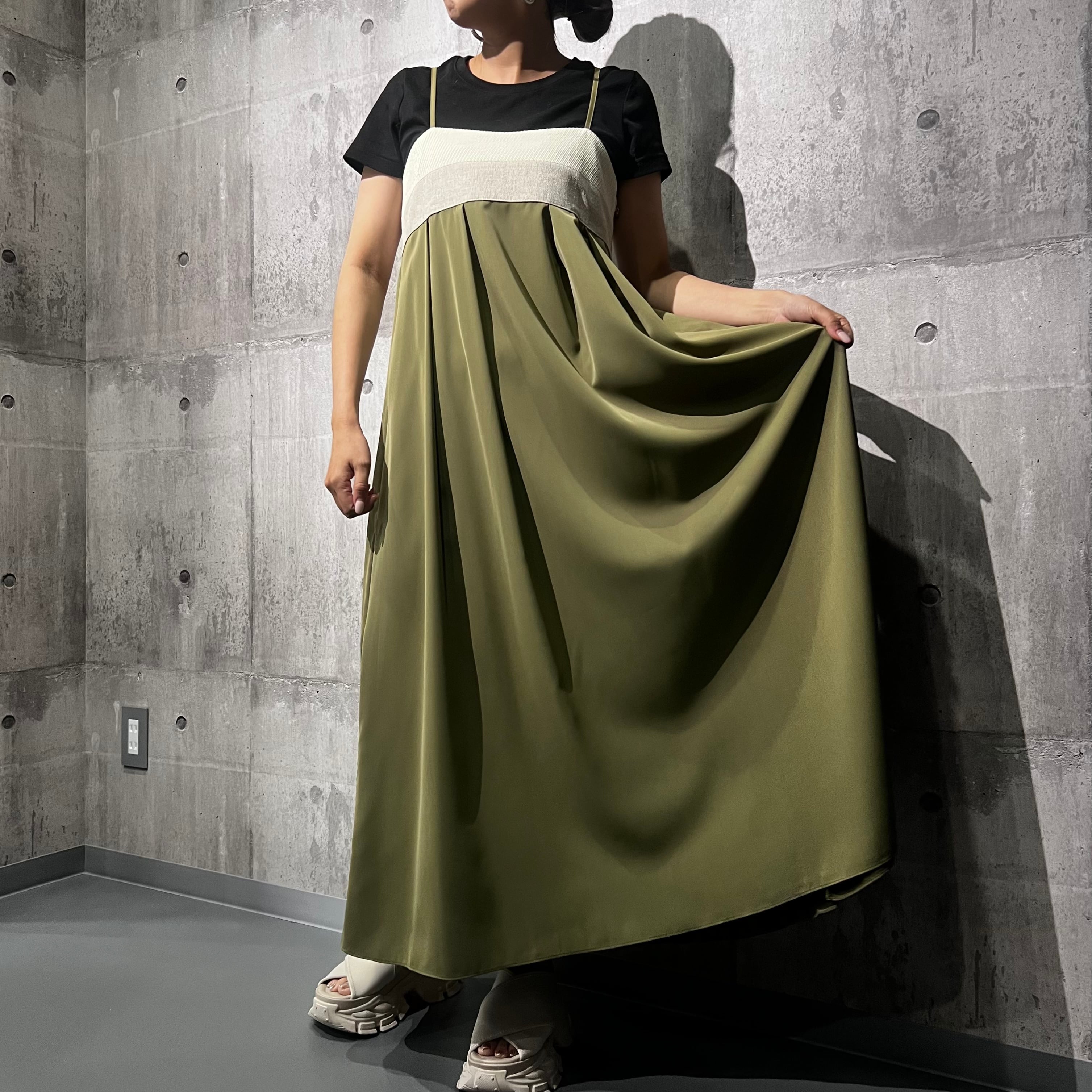 麻ライク素材とストライプ素材で切り替えた女性らしいキャミソールドレス。