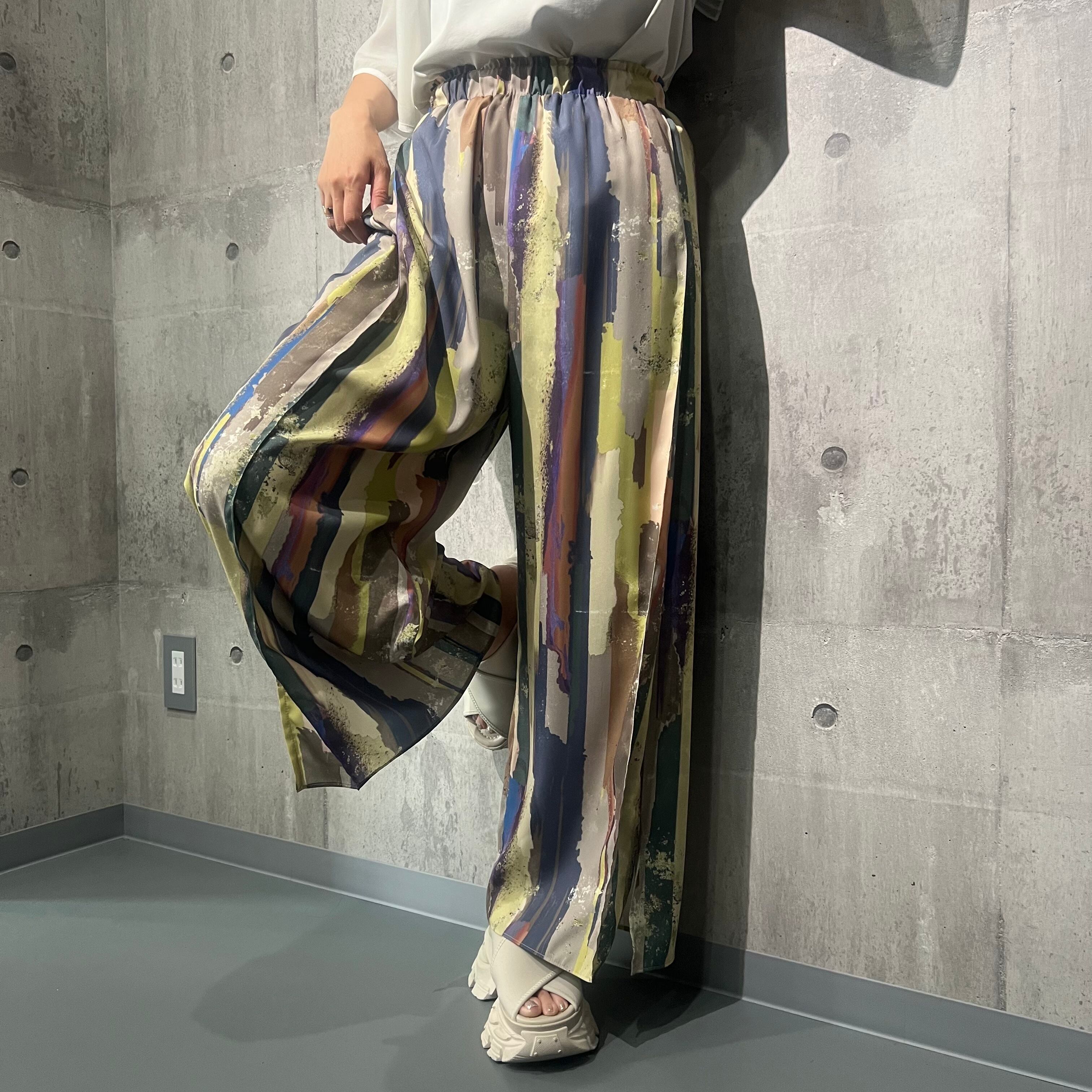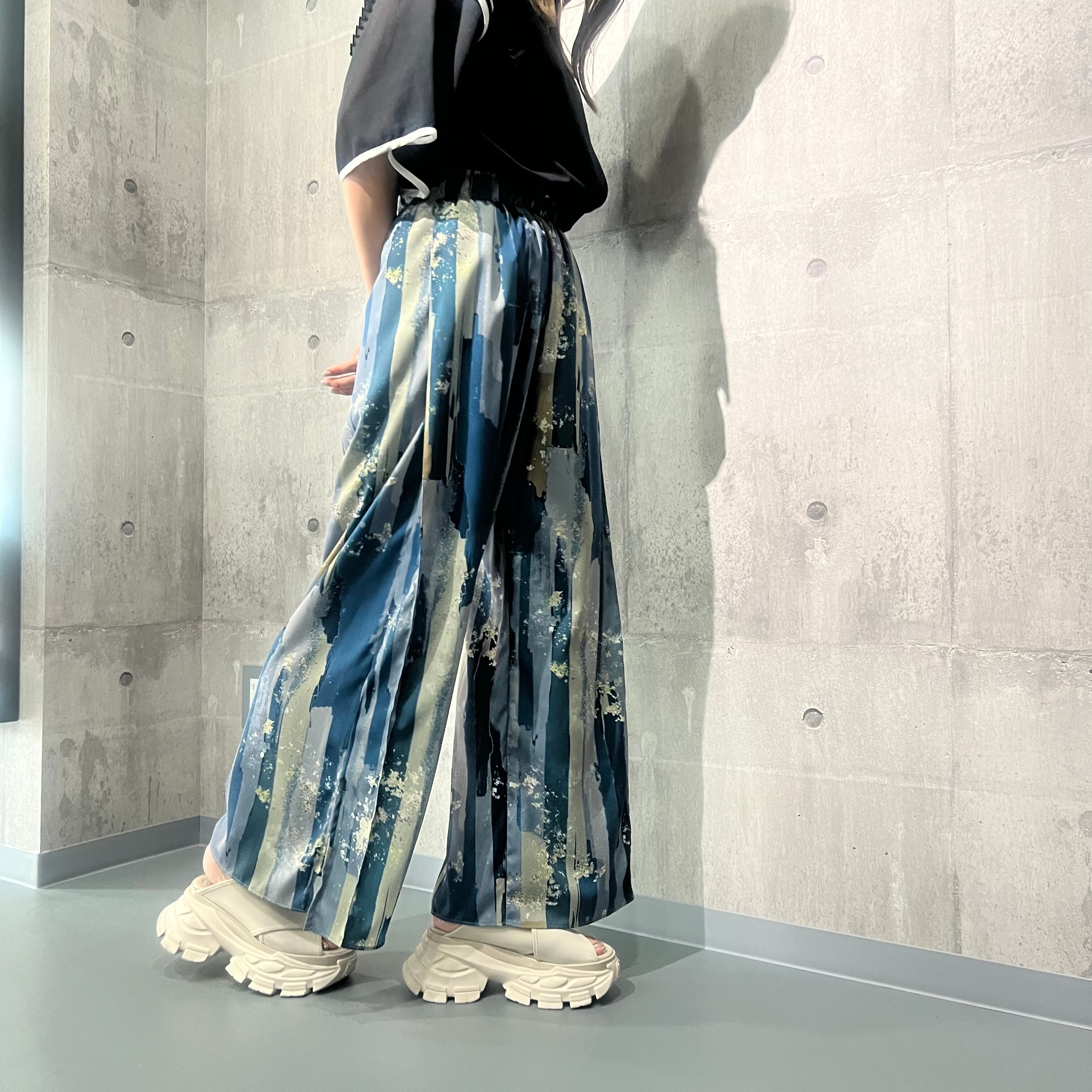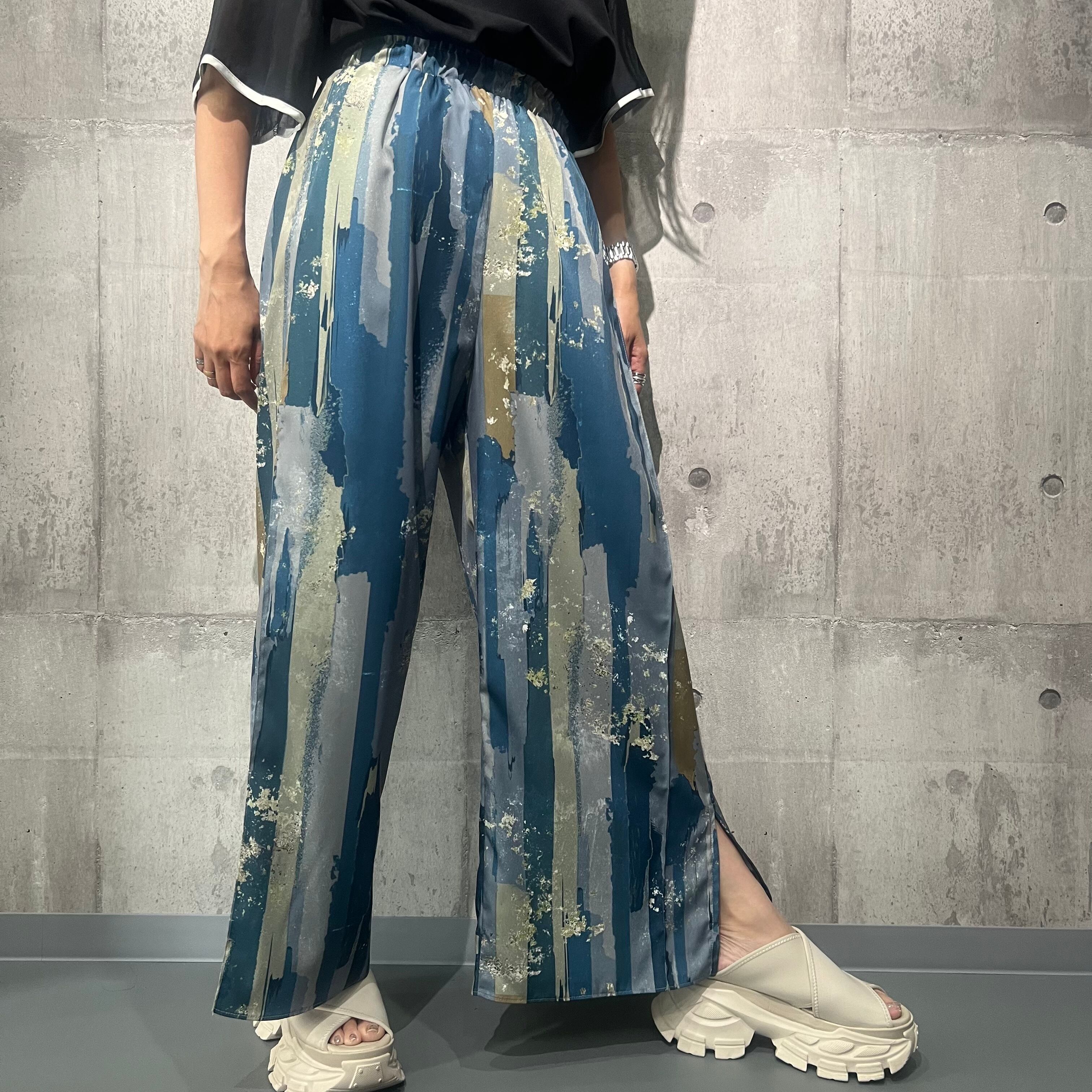 箔とオイルペイント柄が上品なオリジナルプリントパンツ