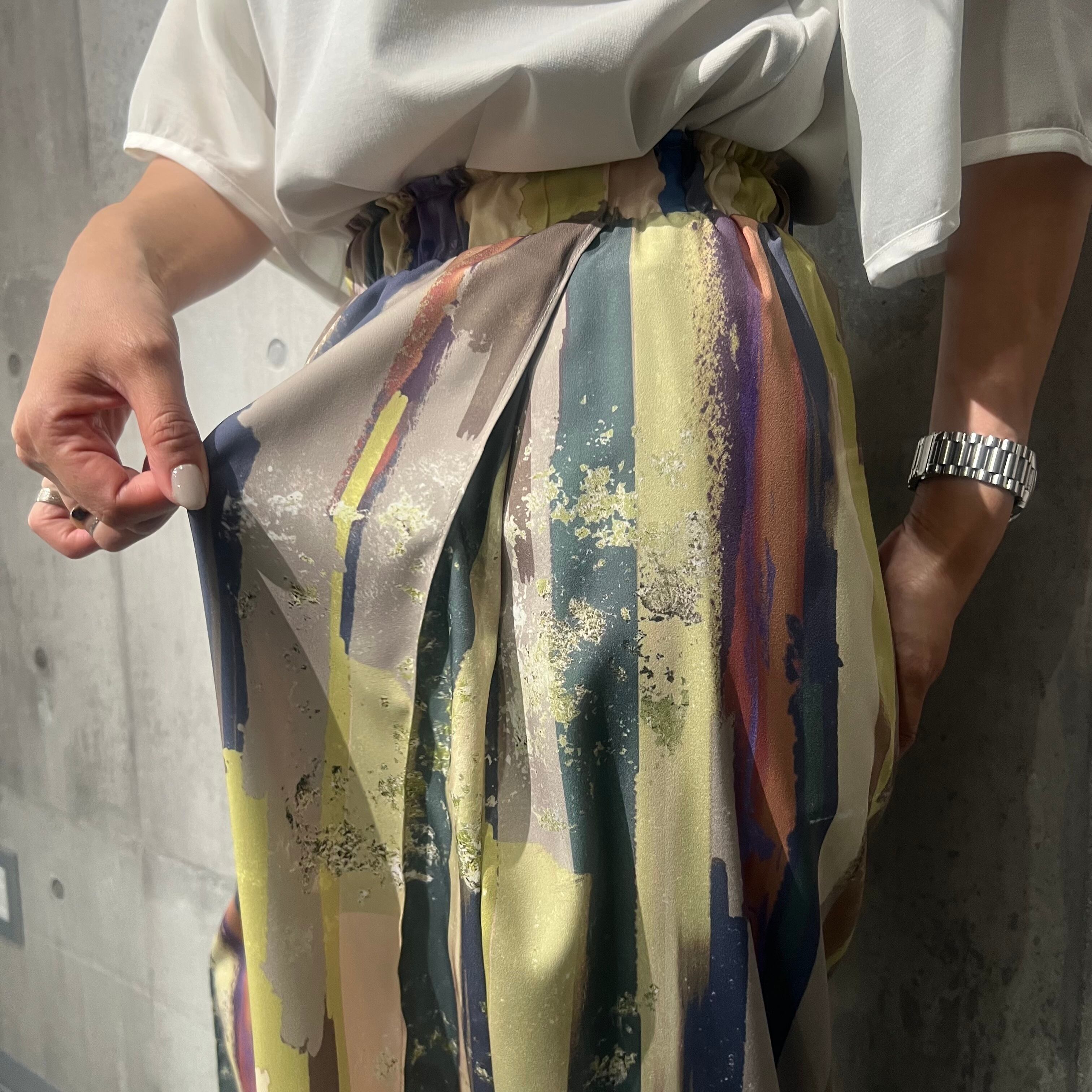 ストライプオイルペイントパンツリラックスパンツ
