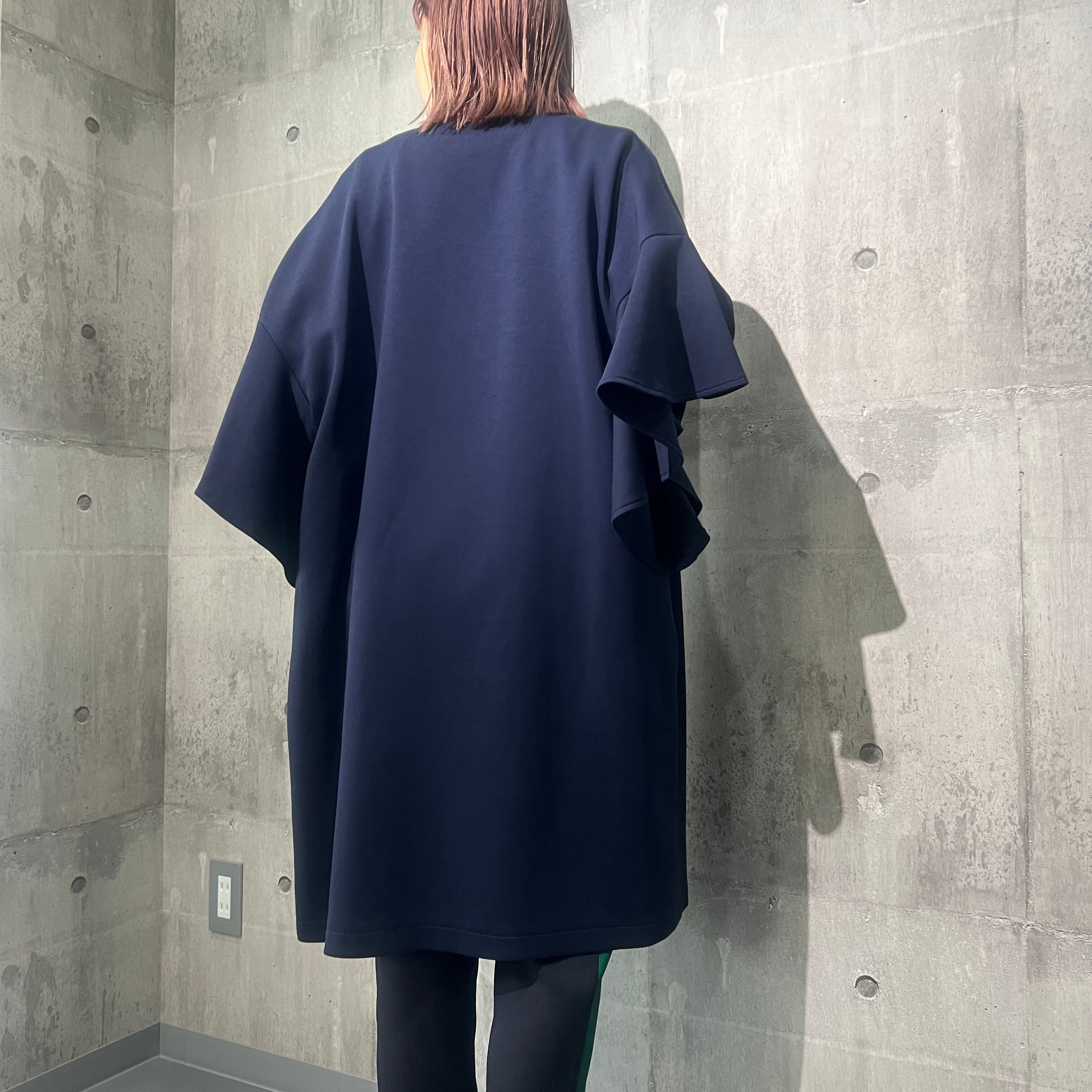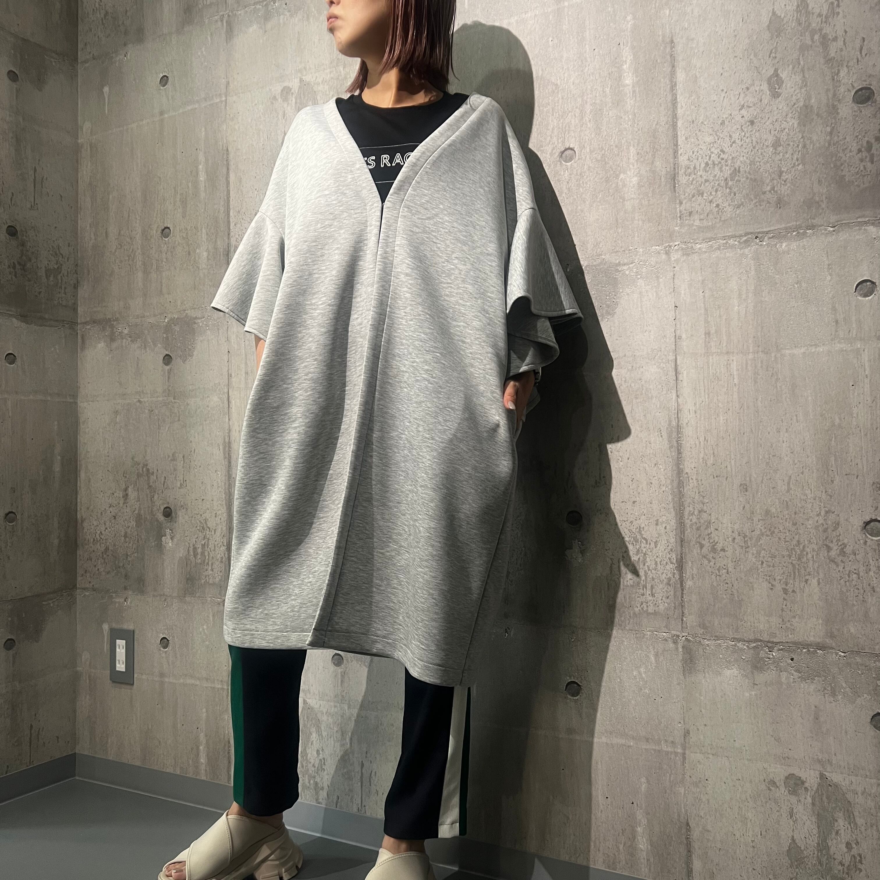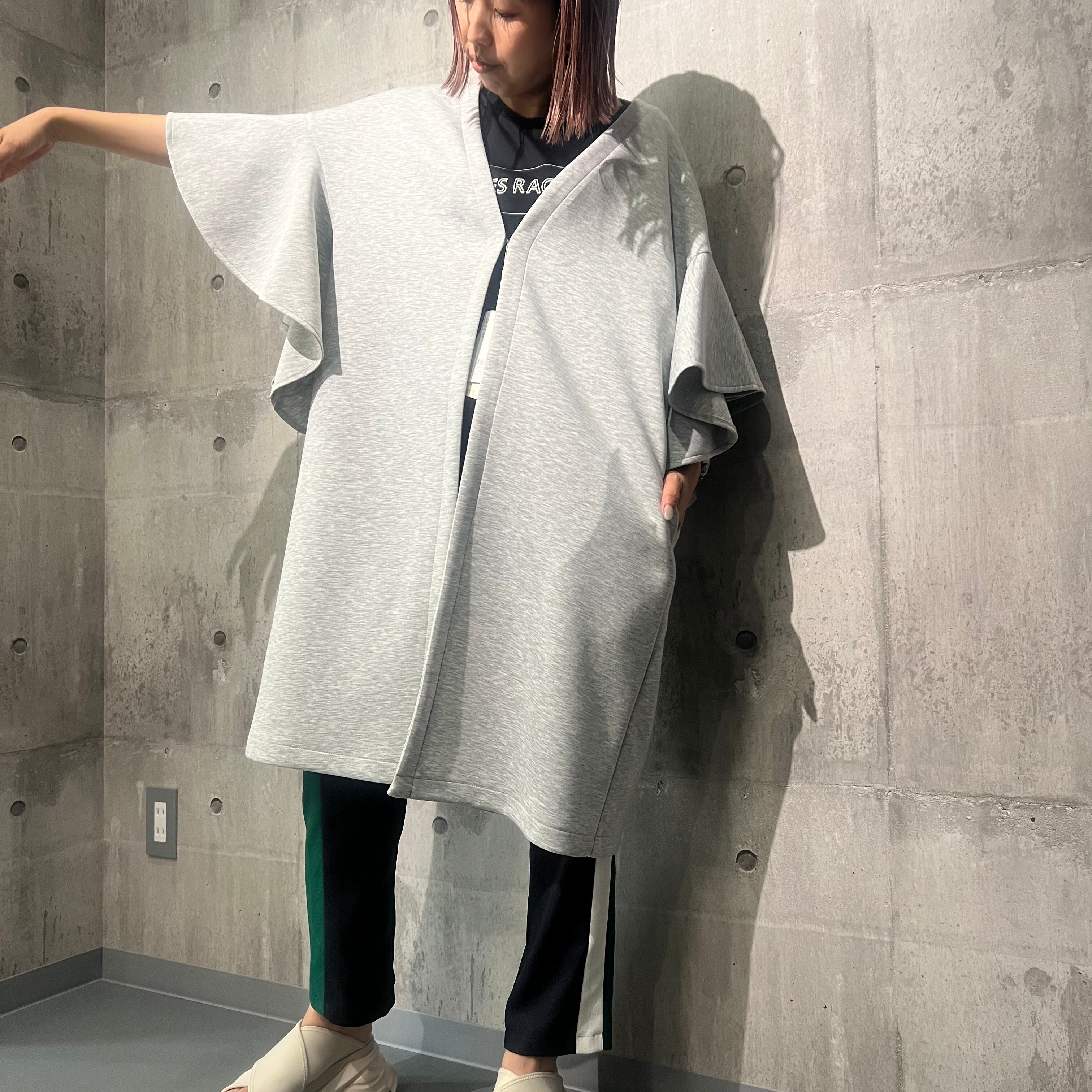 エレガントな袖フリルがポイントのボンディングコートです。首元はノーカラーなデザインが女性らしさを引き立てます。秋にぴったりな素材で、暖かさとやわらかさを両立させました。シンプルなデザインながらも、袖のフリルが可愛らしさをプラスしています。