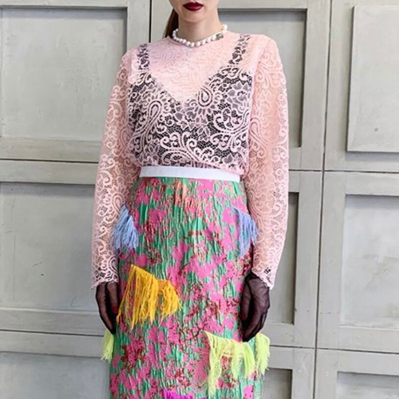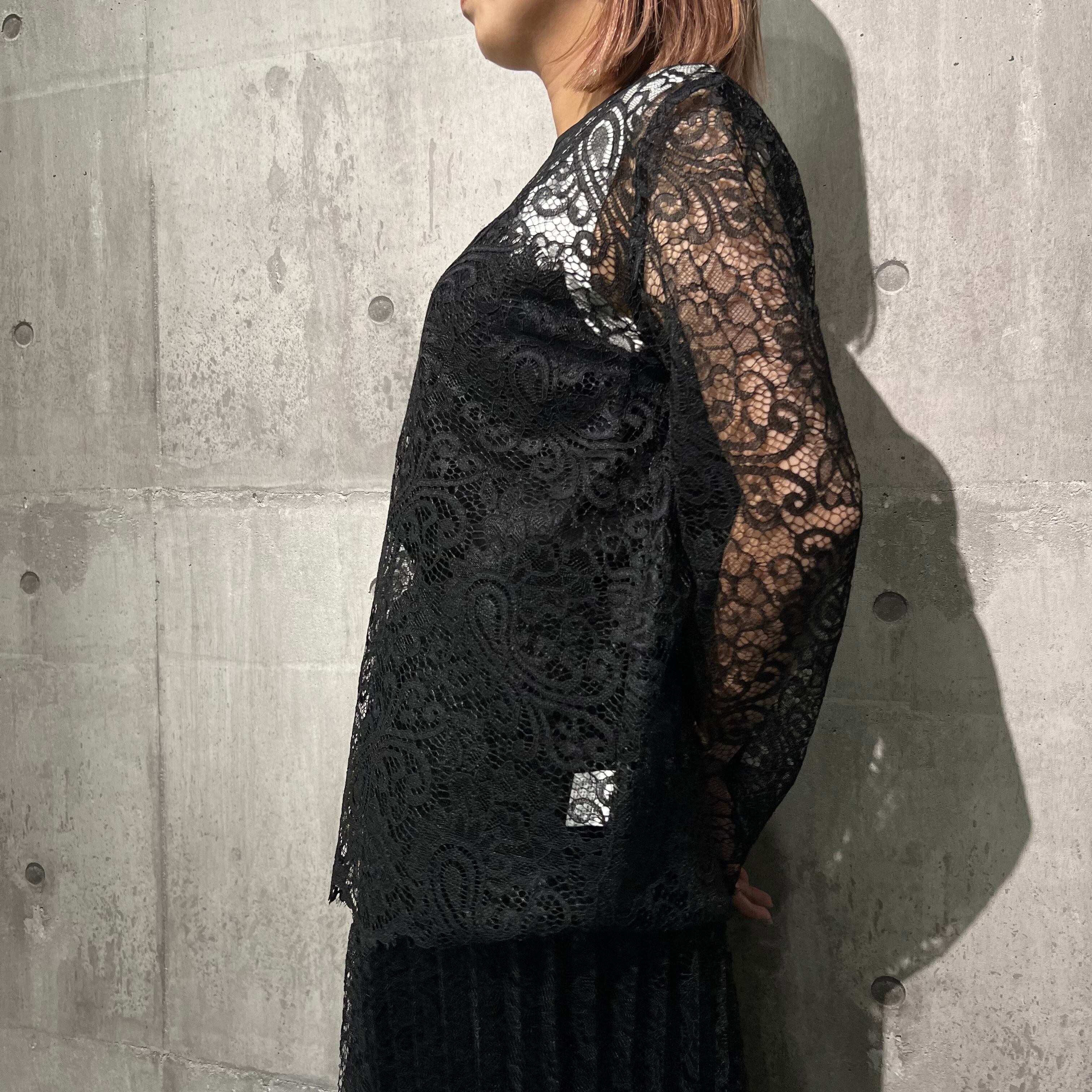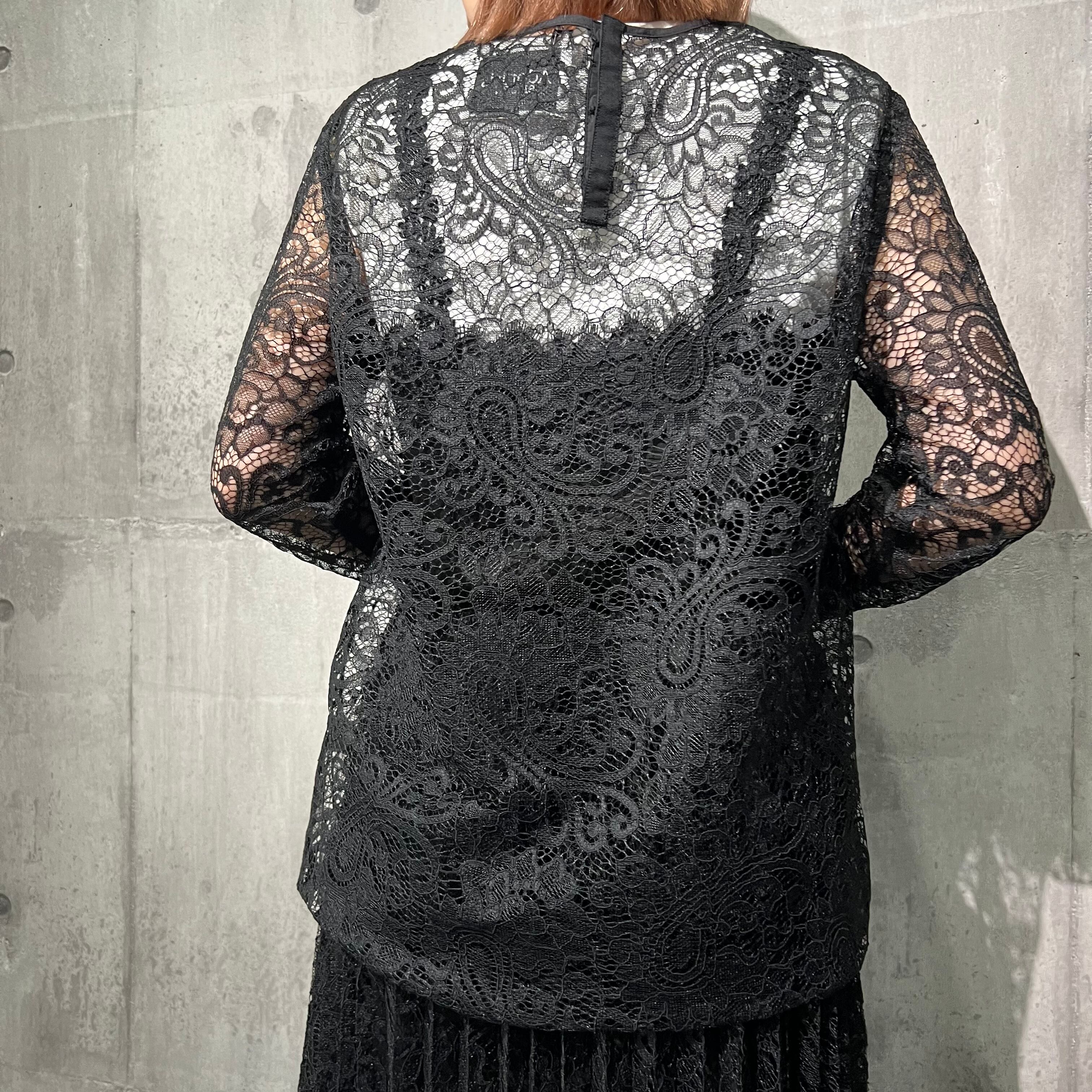 レースのフェミニンな光沢と透け感で、重くなりすぎす上品な着こなしに◎