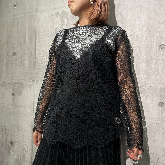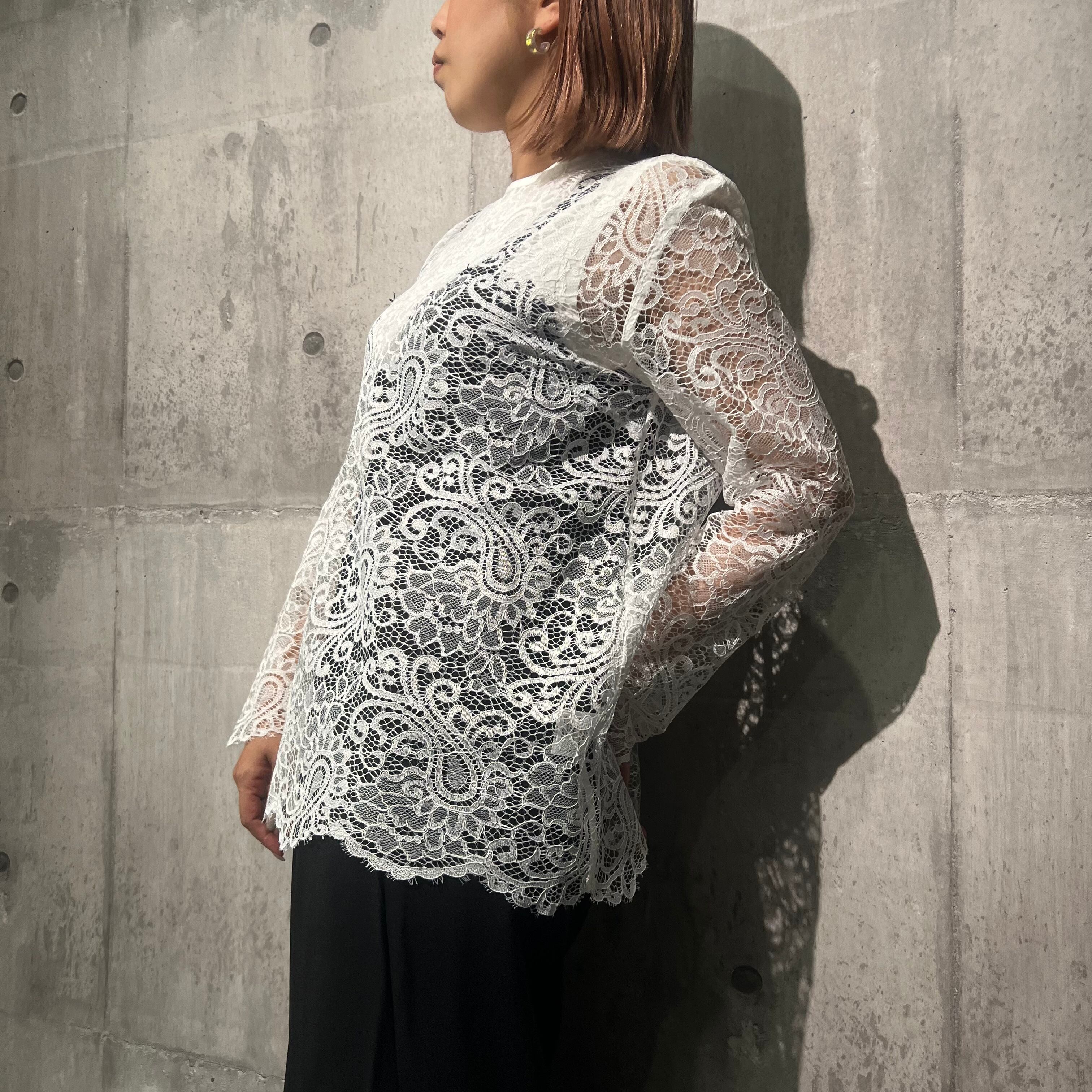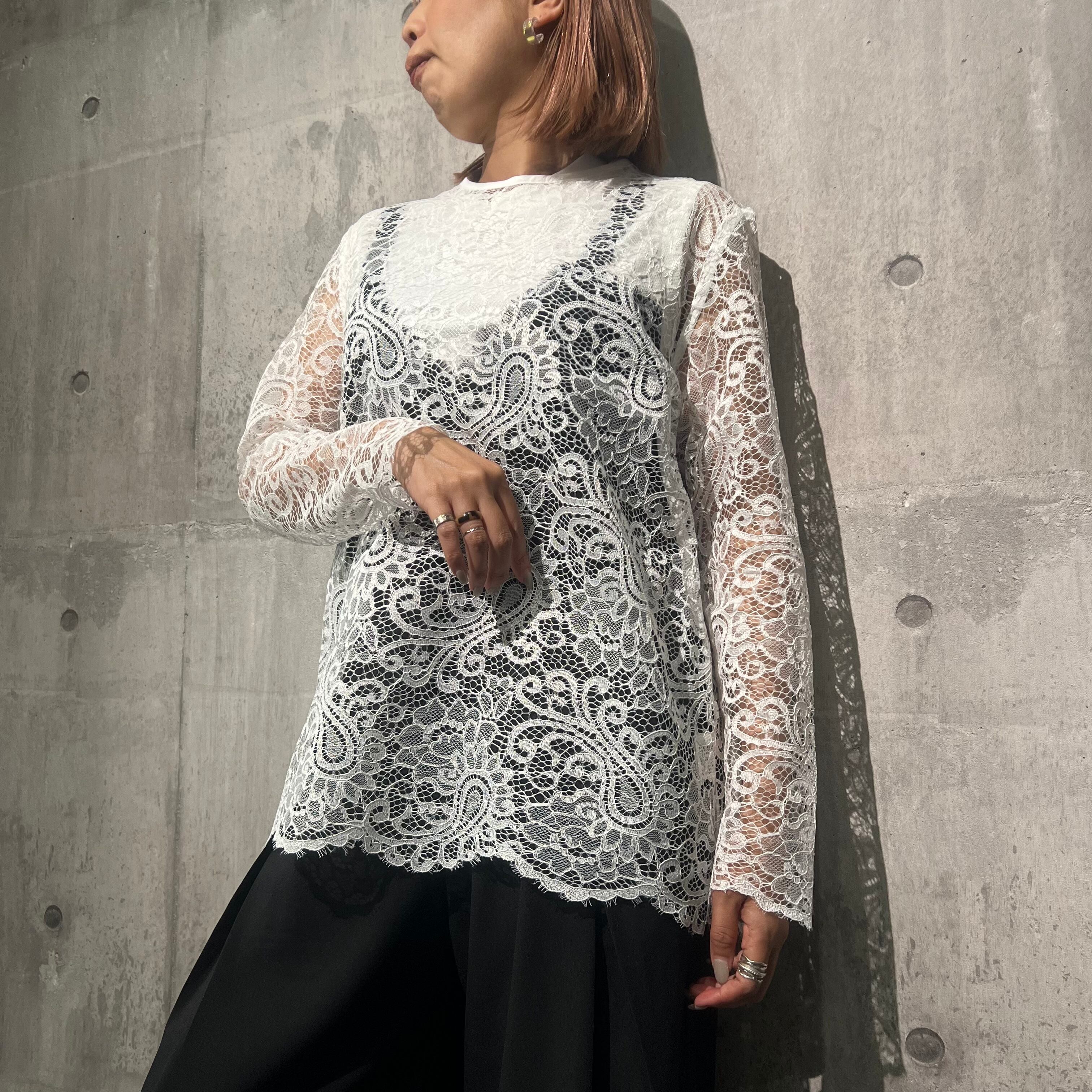 ペイズリー柄の上品なレースとビスチェデザインのタンクがセットになった、レイヤードTOPです。