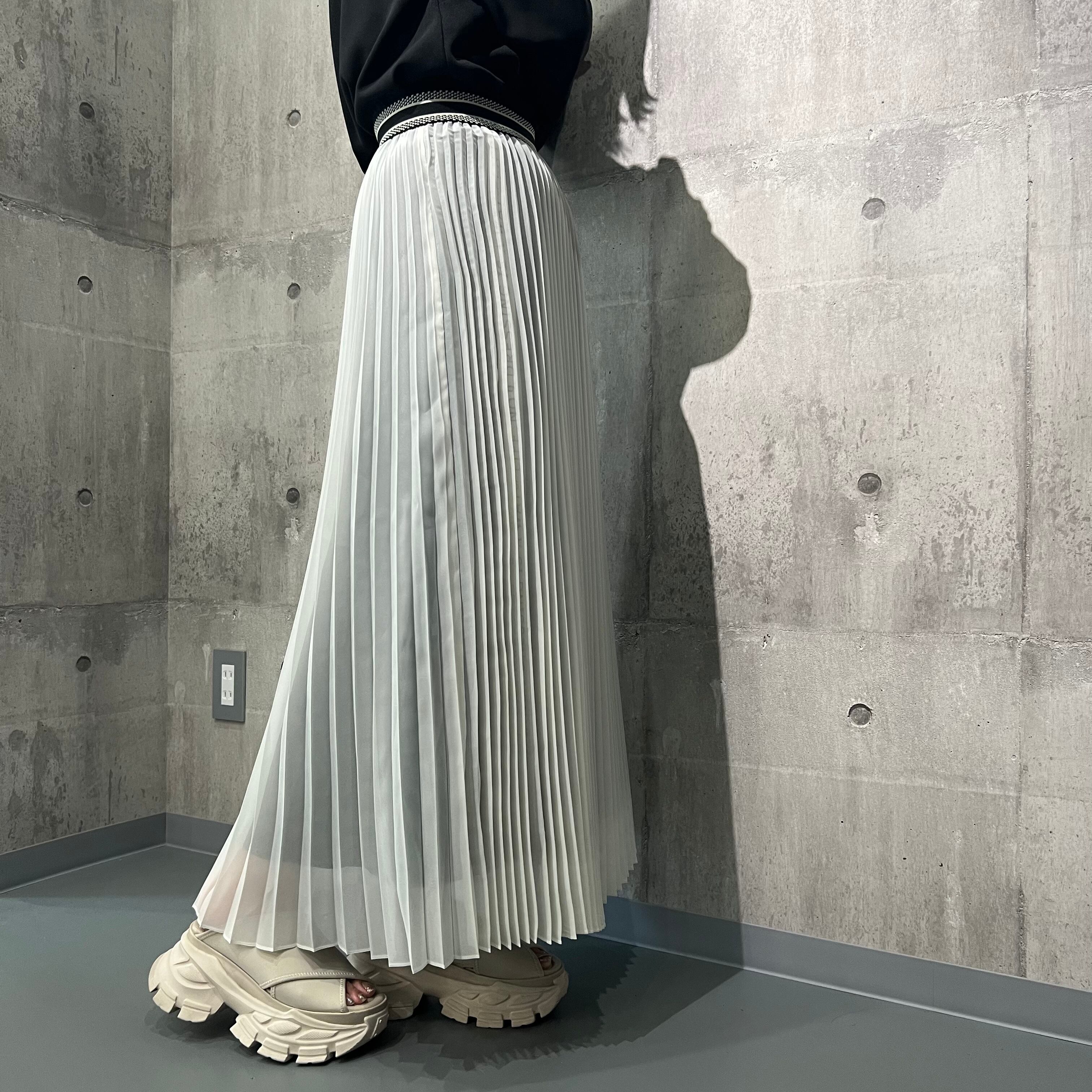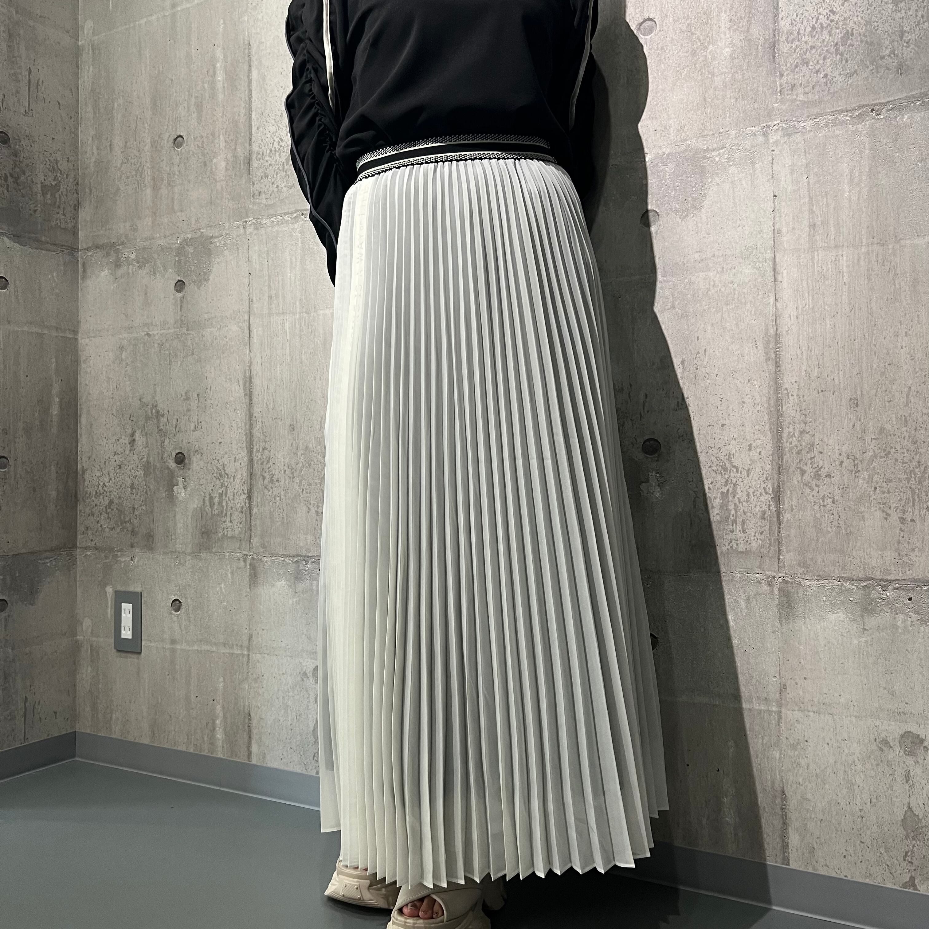 《ロゴテープが覗くアコーディオンプリーツSK》