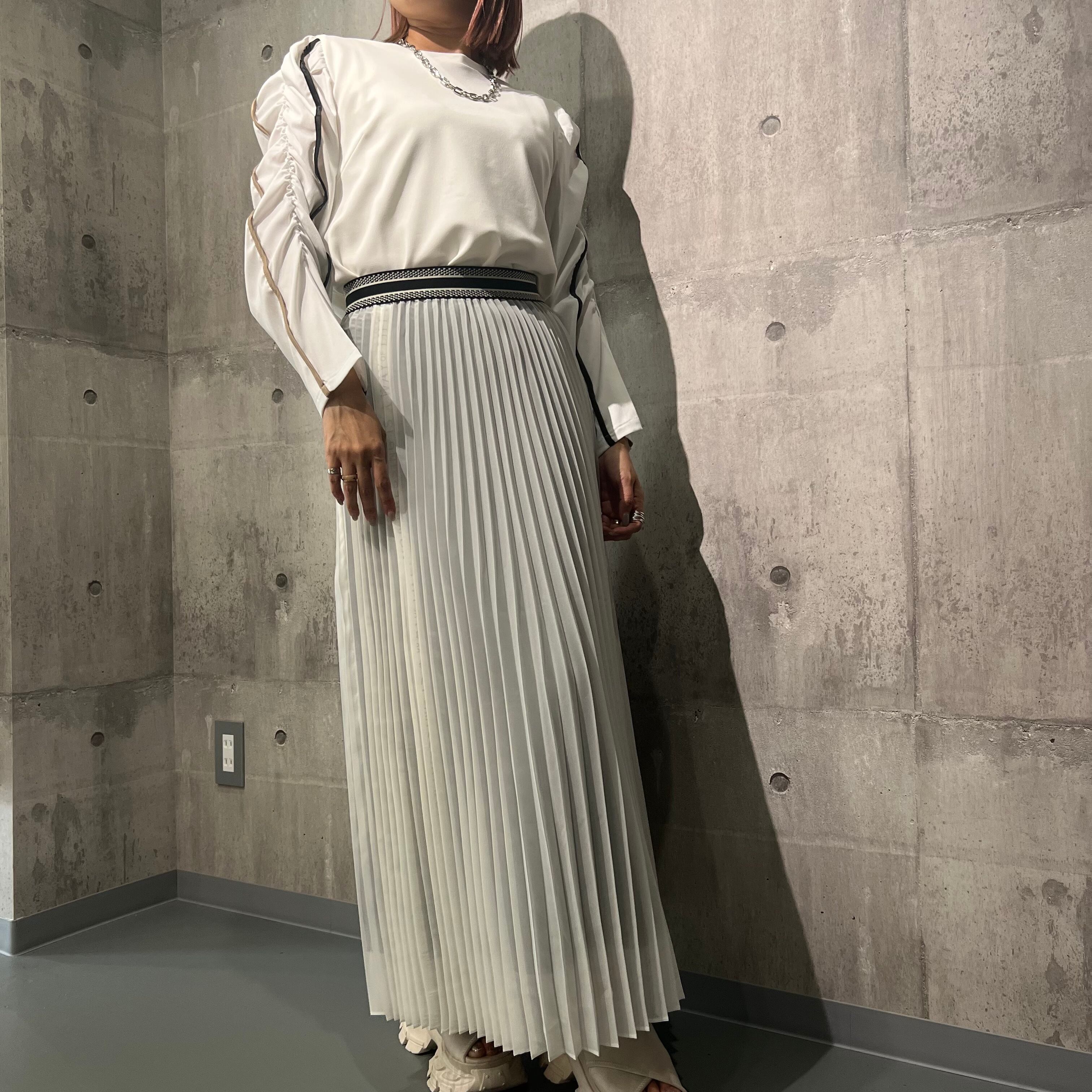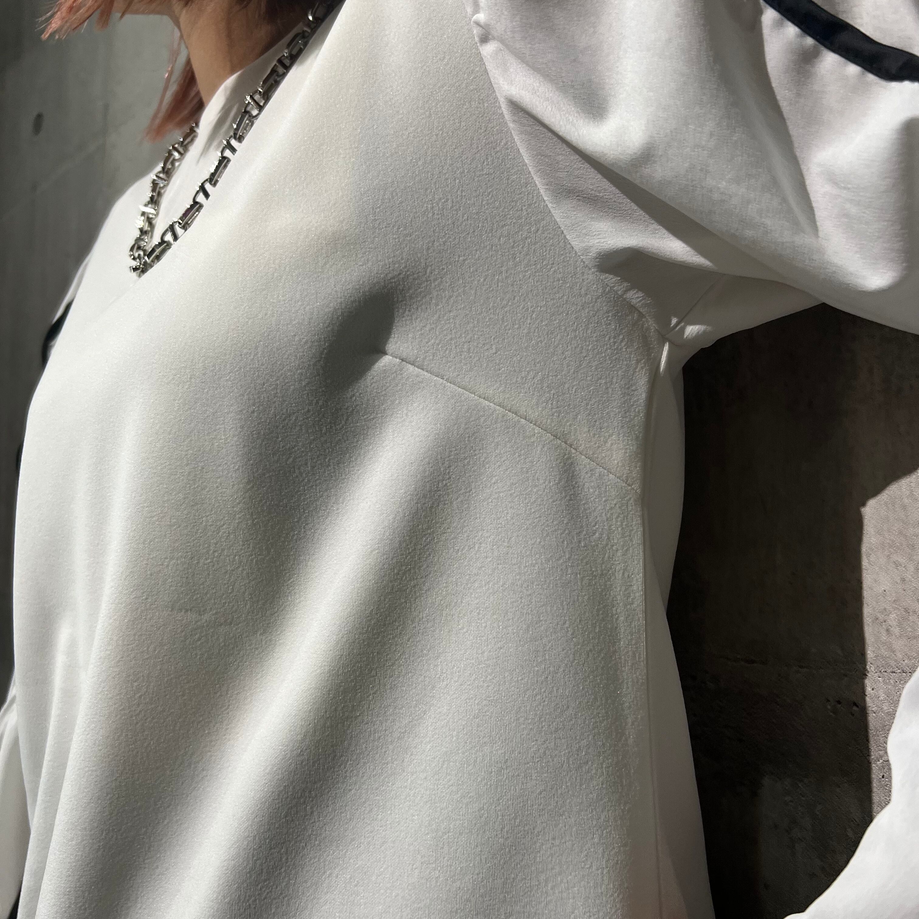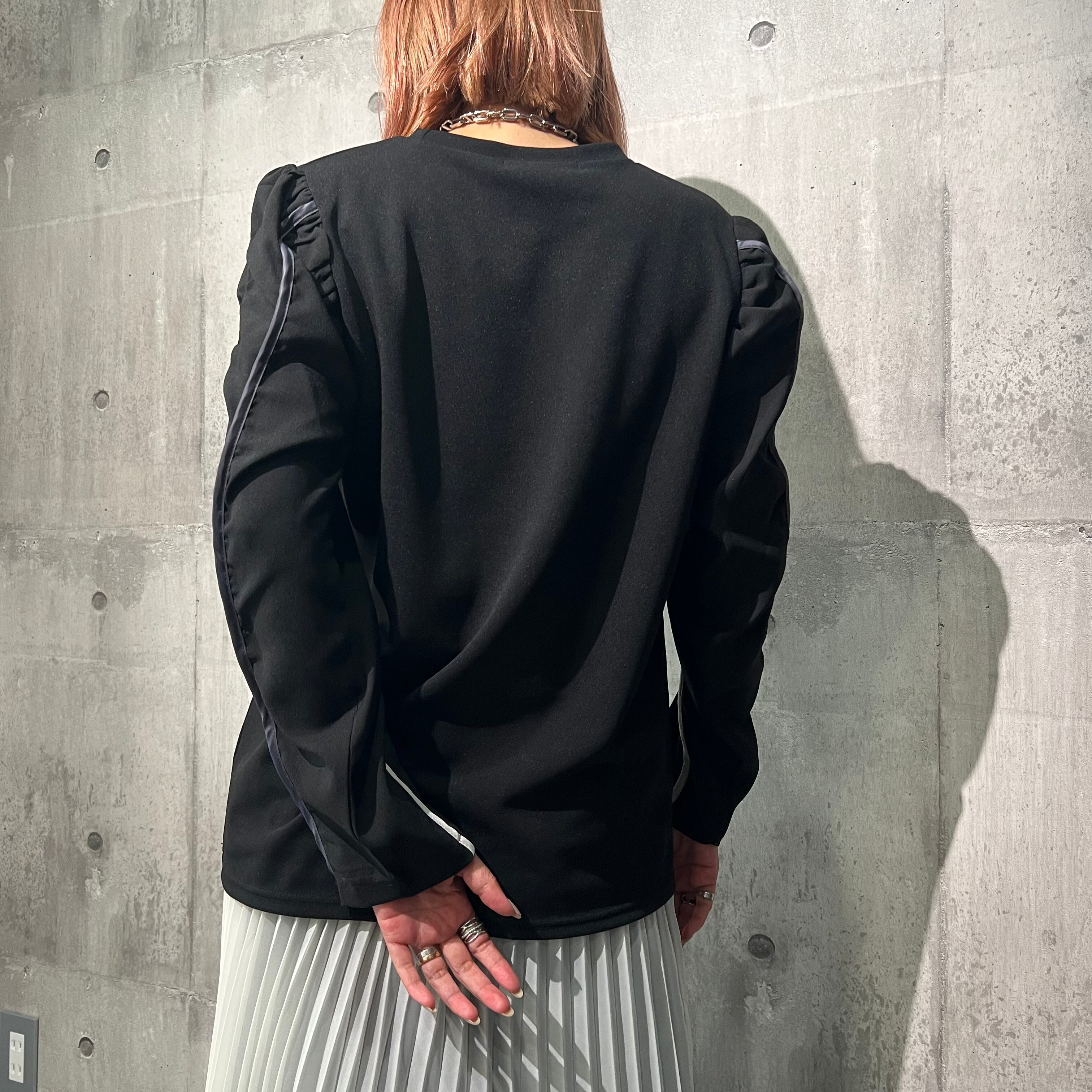 ボディには綺麗めなポリエステルジョーゼットカットソー素材、お袖にはマットな艶感あるサテン素材を配置したストレスフリーな大人トップス。
