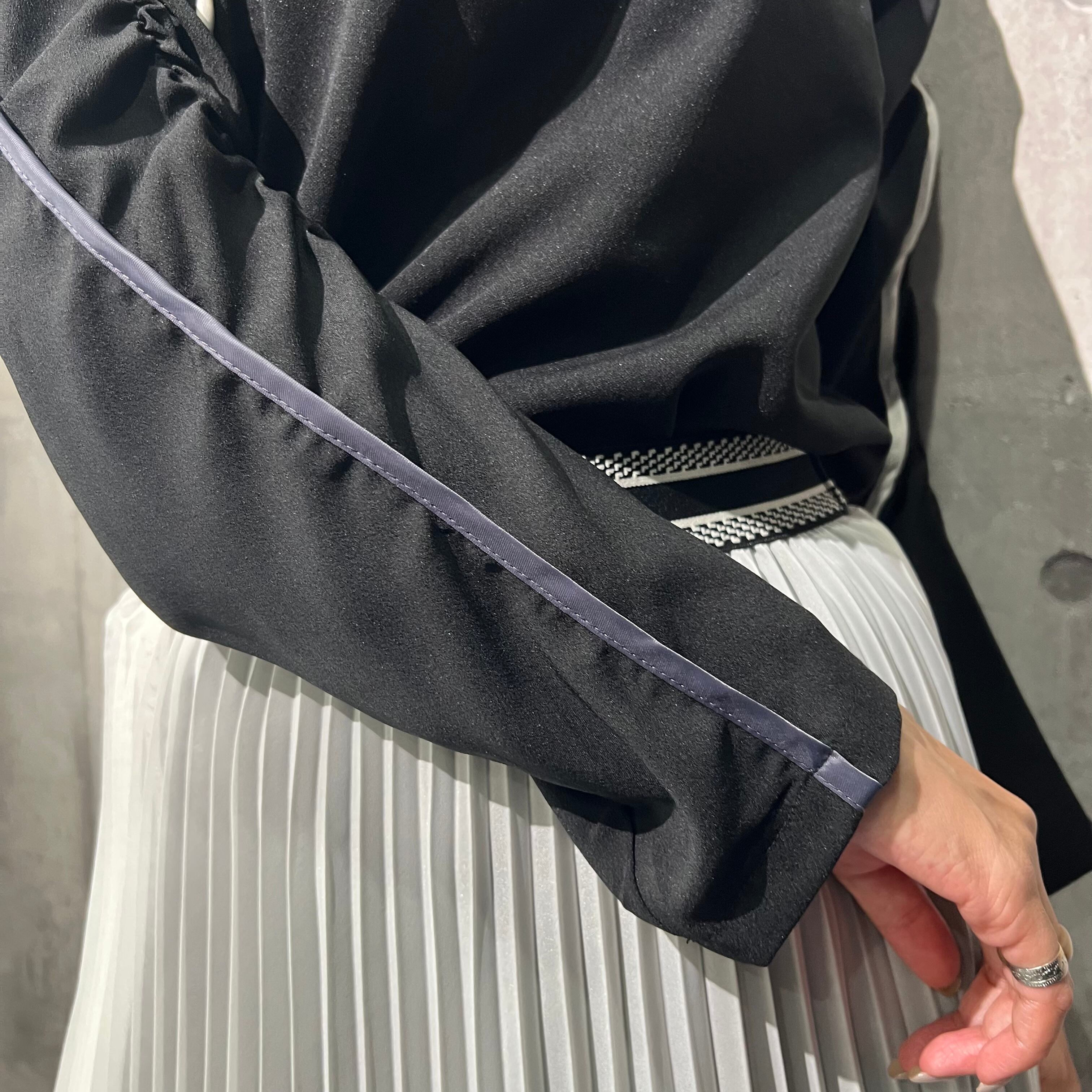 お袖の配色パイピングは、どんな色のアイテムともあわせやすくコーデの幅が広がります。