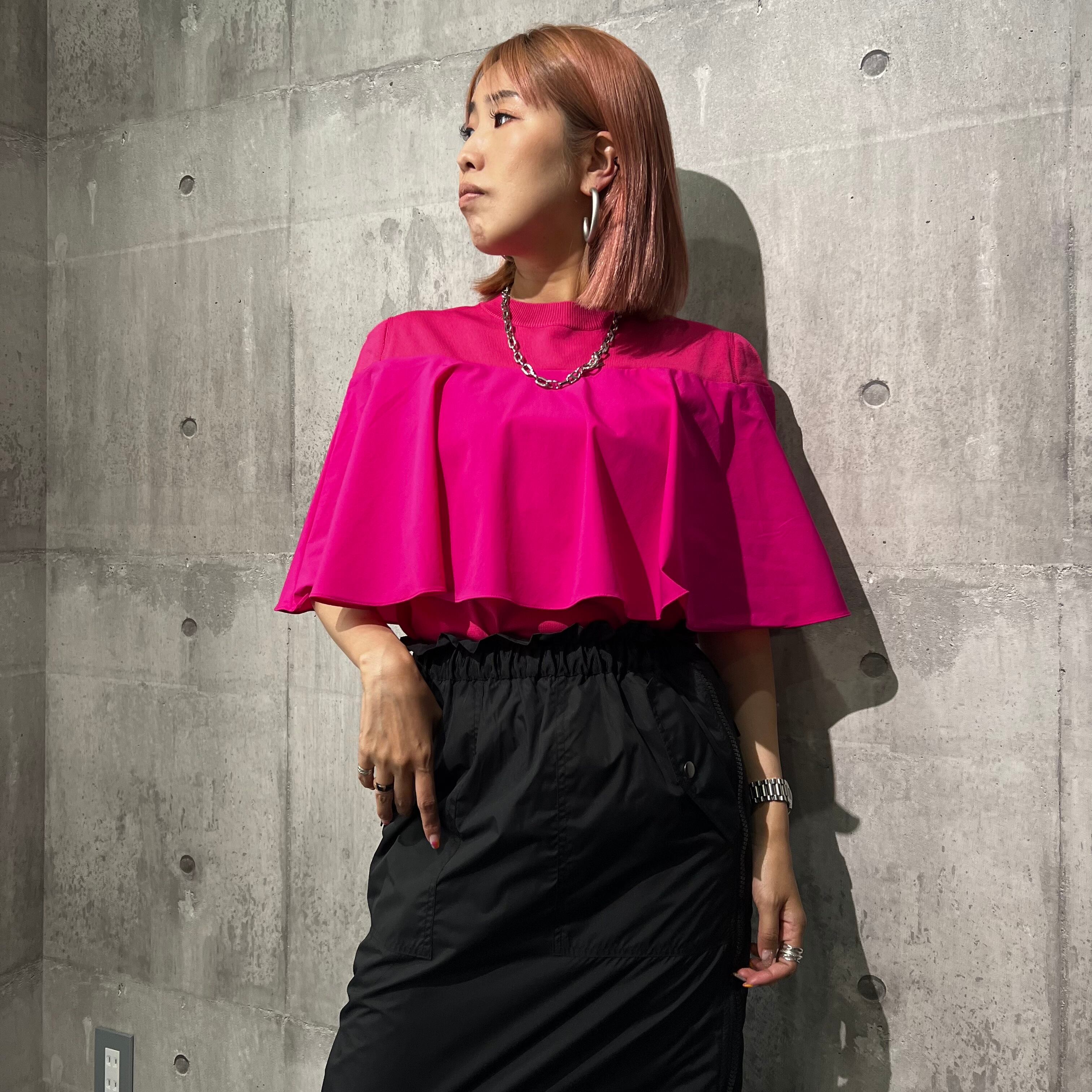 ディテールにこだわった袖フリルケープニット。女性らしいアクセントとして、袖にダイナミックなフリルが施されており、さりげない華やかさを演出します。また、ケープデザインはトレンド感を取り入れつつも、着心地も軽やかで快適です。一枚でコーディネートが完成するので、時短でおしゃれを楽しむことができます。