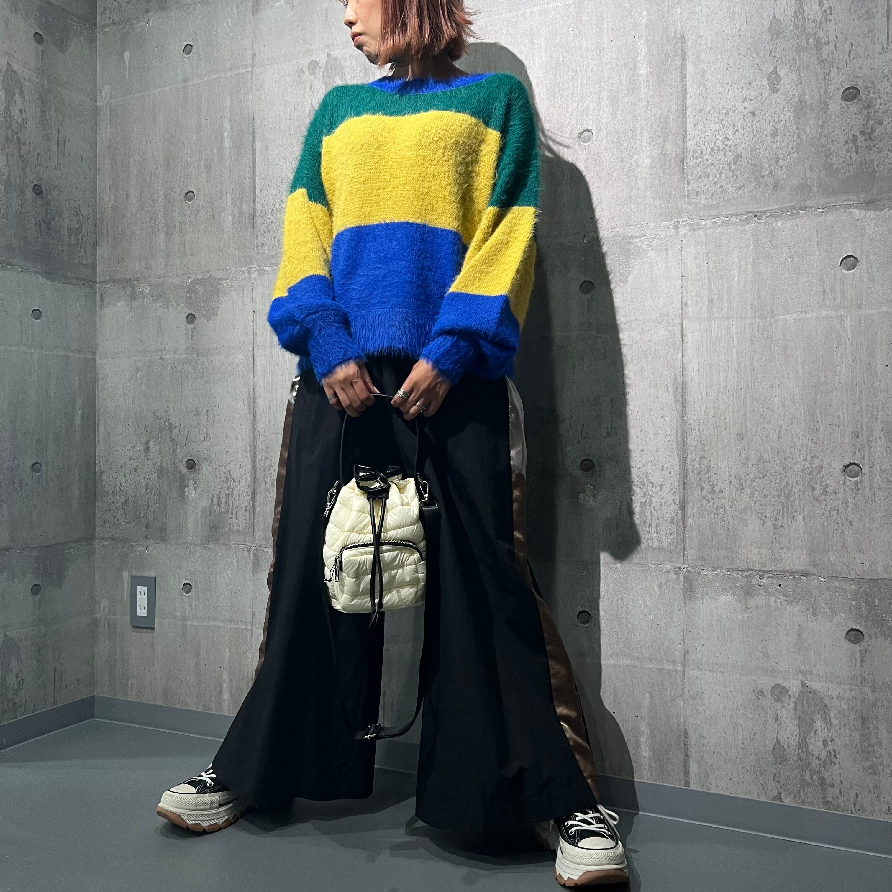 1枚でコーディネートの主役になれるカラフルなニットPO。