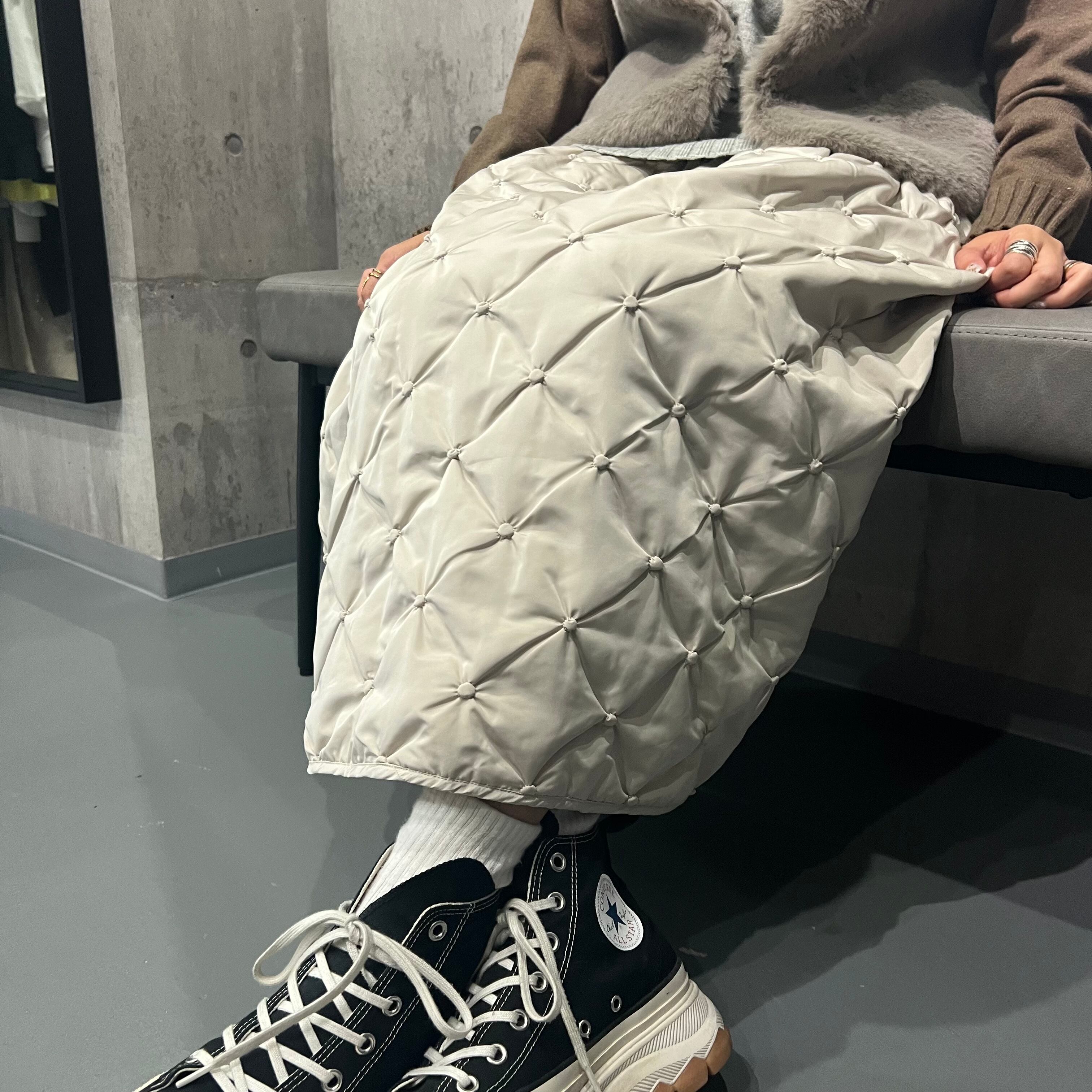 薄く入れた中綿がフワフワ感を演出してくれる存在感たっぷりな1枚。