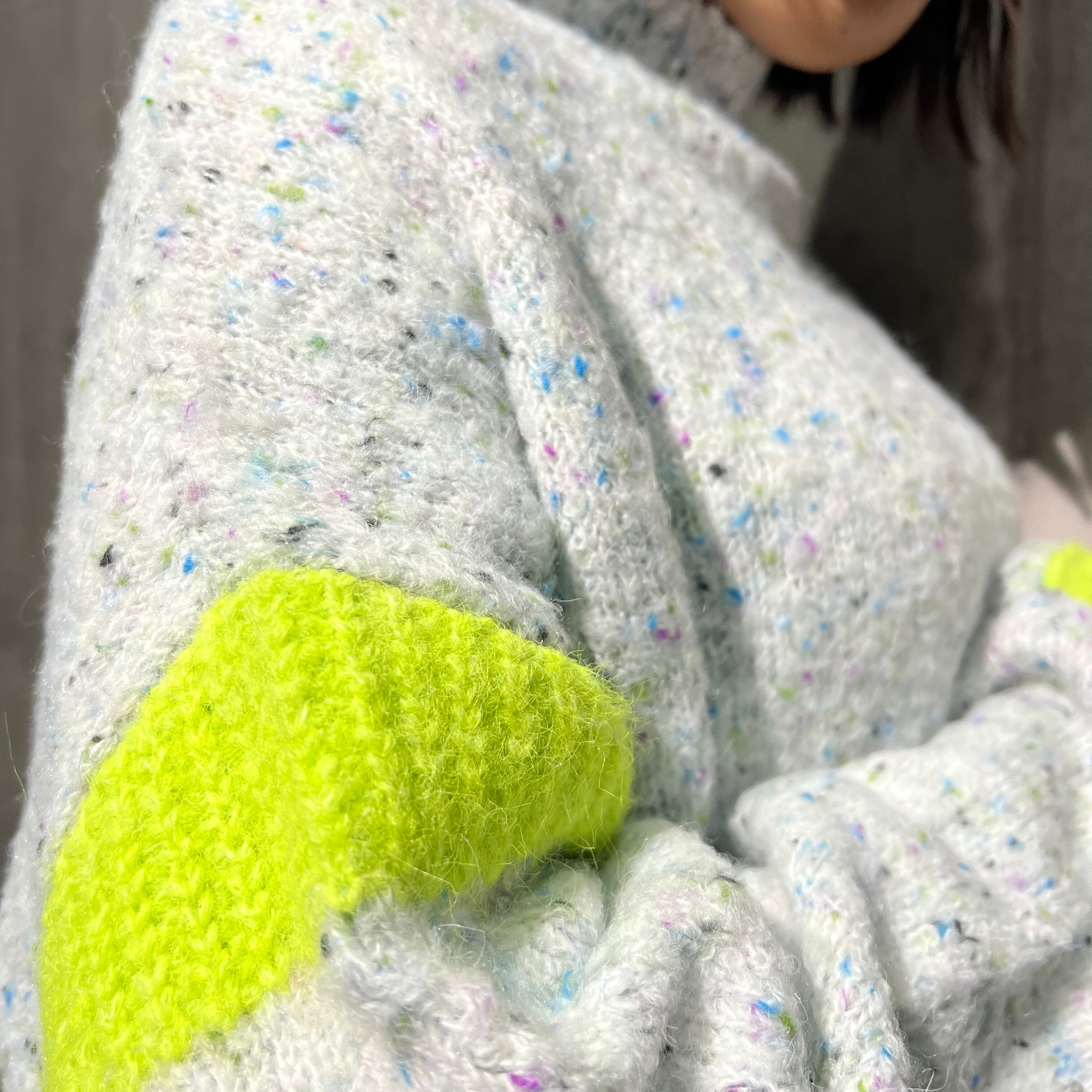 ネップの優しげな雰囲気にビビットなカラーをポイントで効かせメリハリのあるデザインに仕上げています。