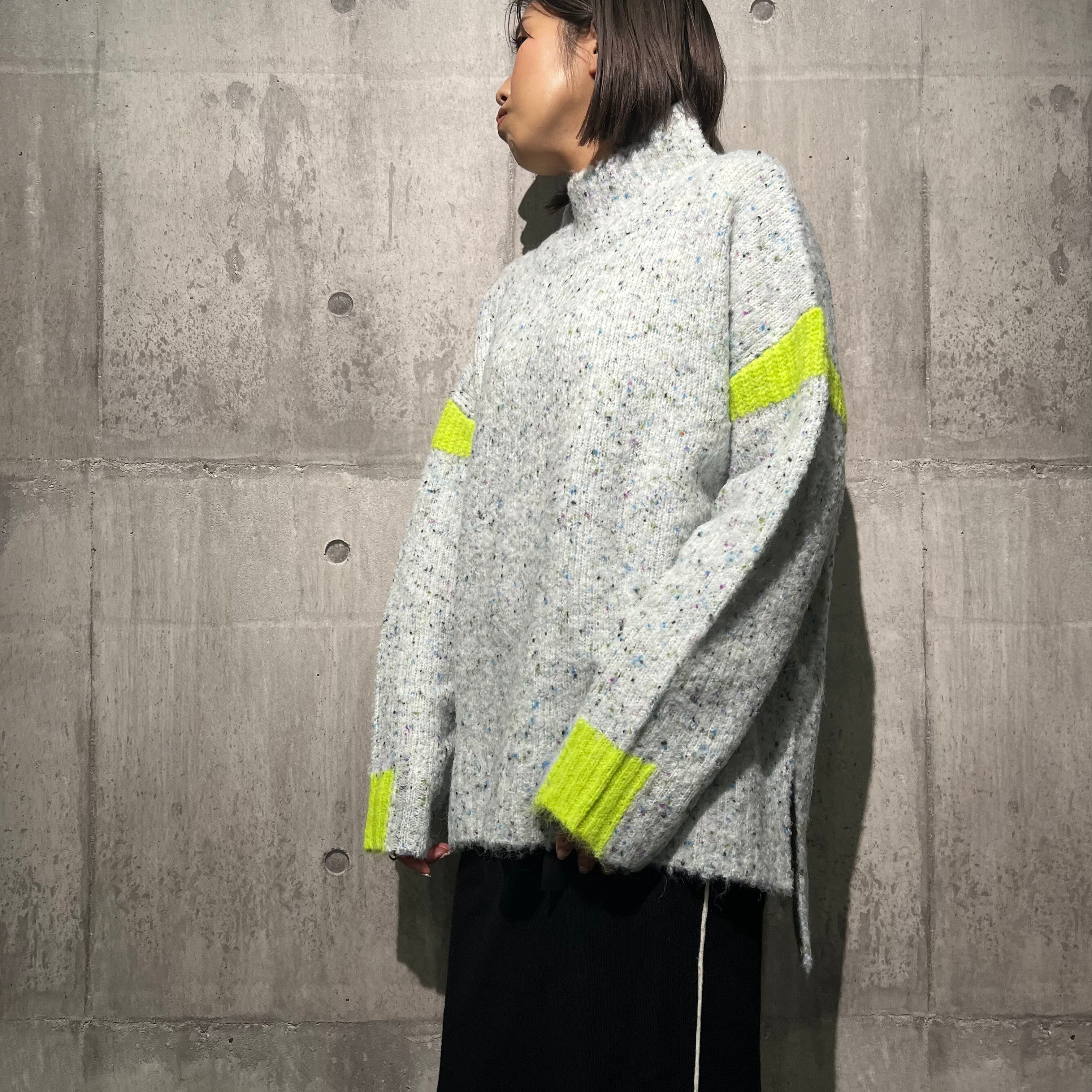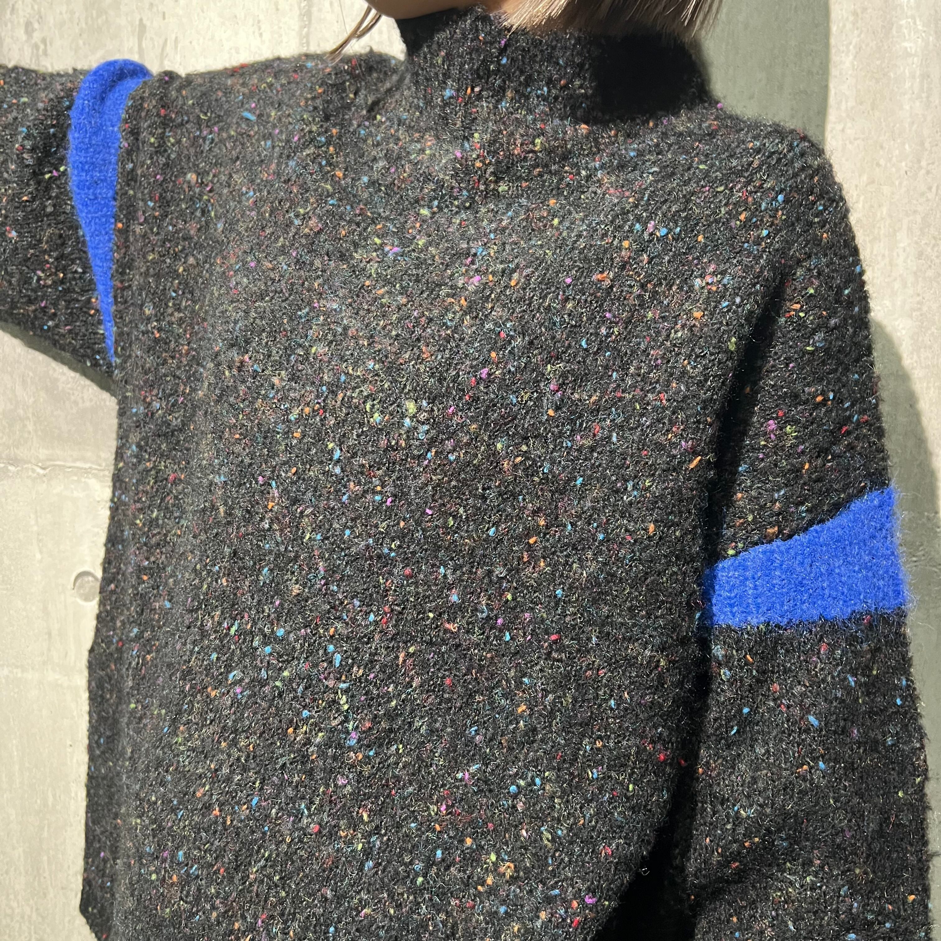 MIXネップの表情感と軽くふんわりとした編み地が特徴のニット。