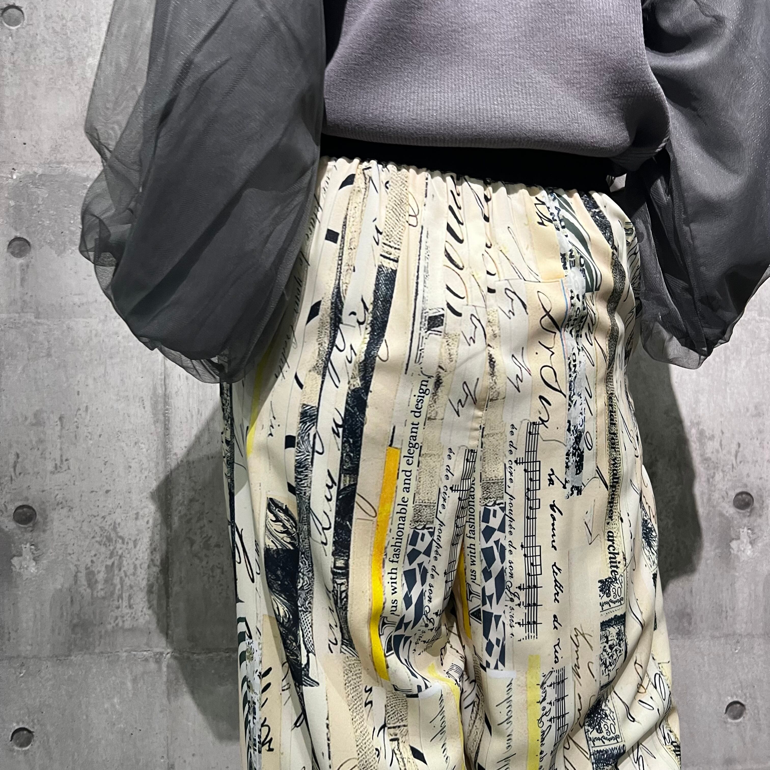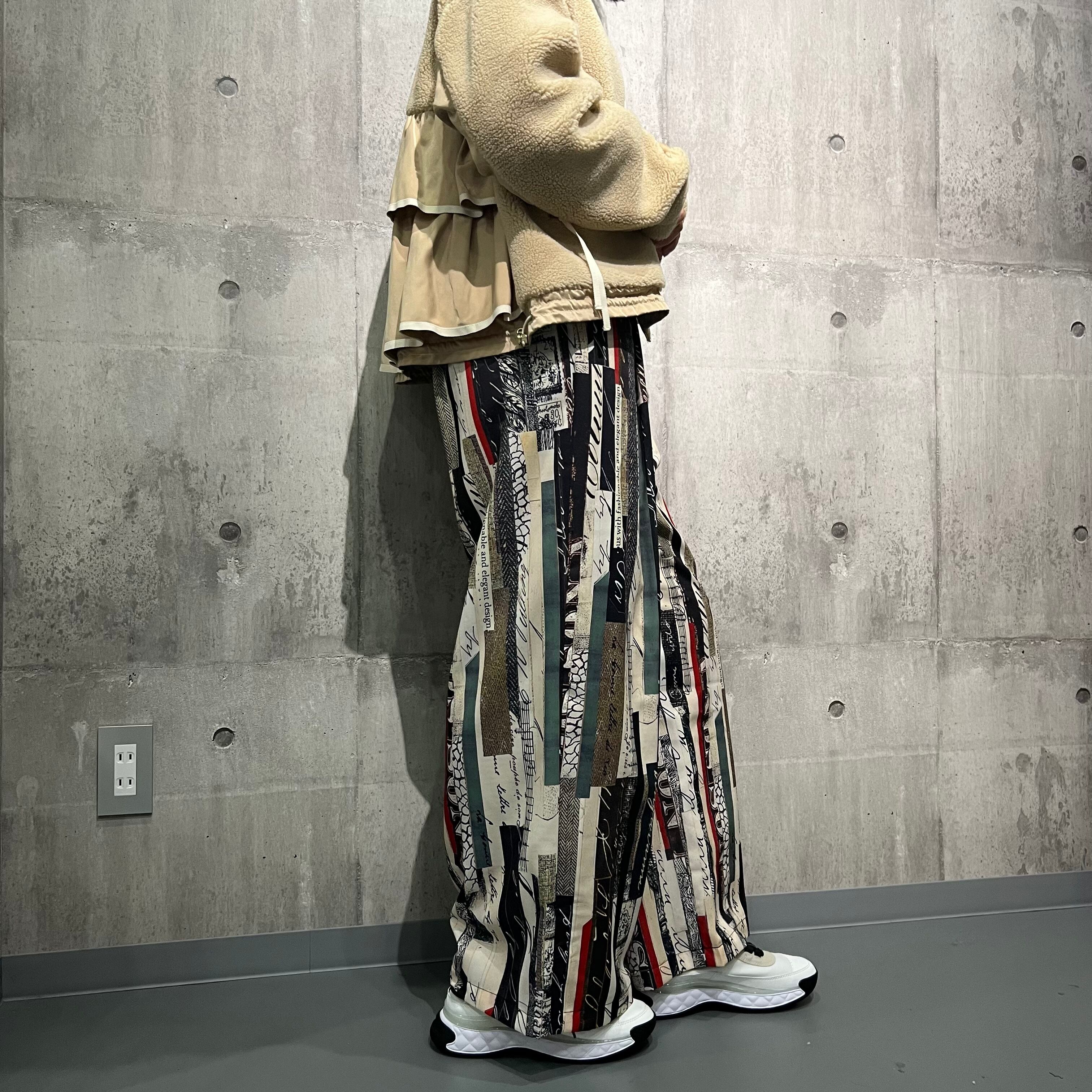 コラージュプリントタックパンツ