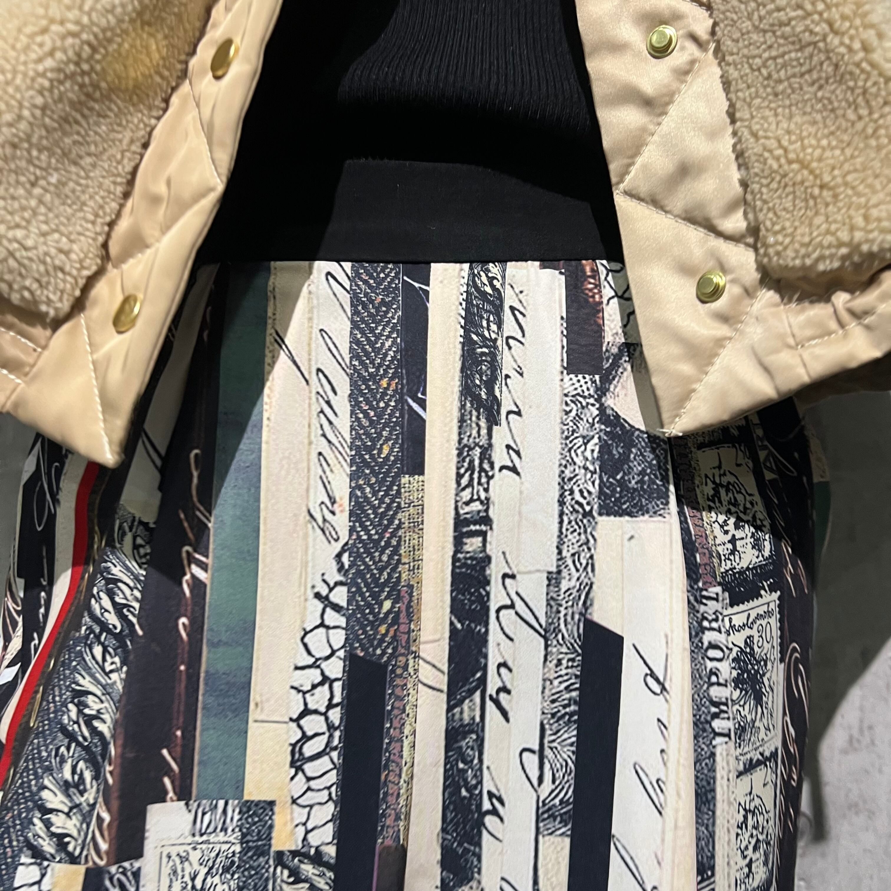 さらっとした艶感あるポリエステル素材でニットとの合わせも軽やかで上品見えを叶えてくれます。