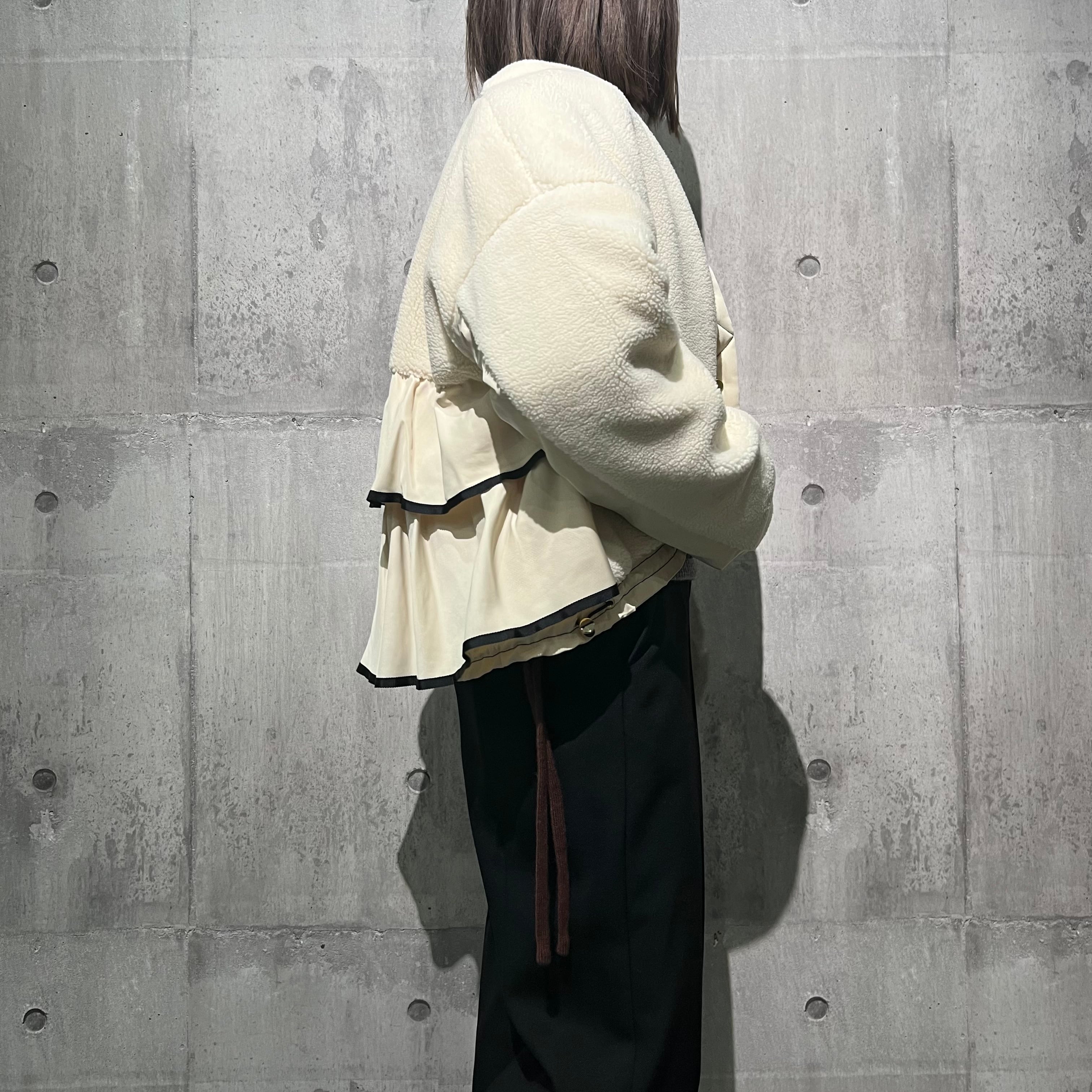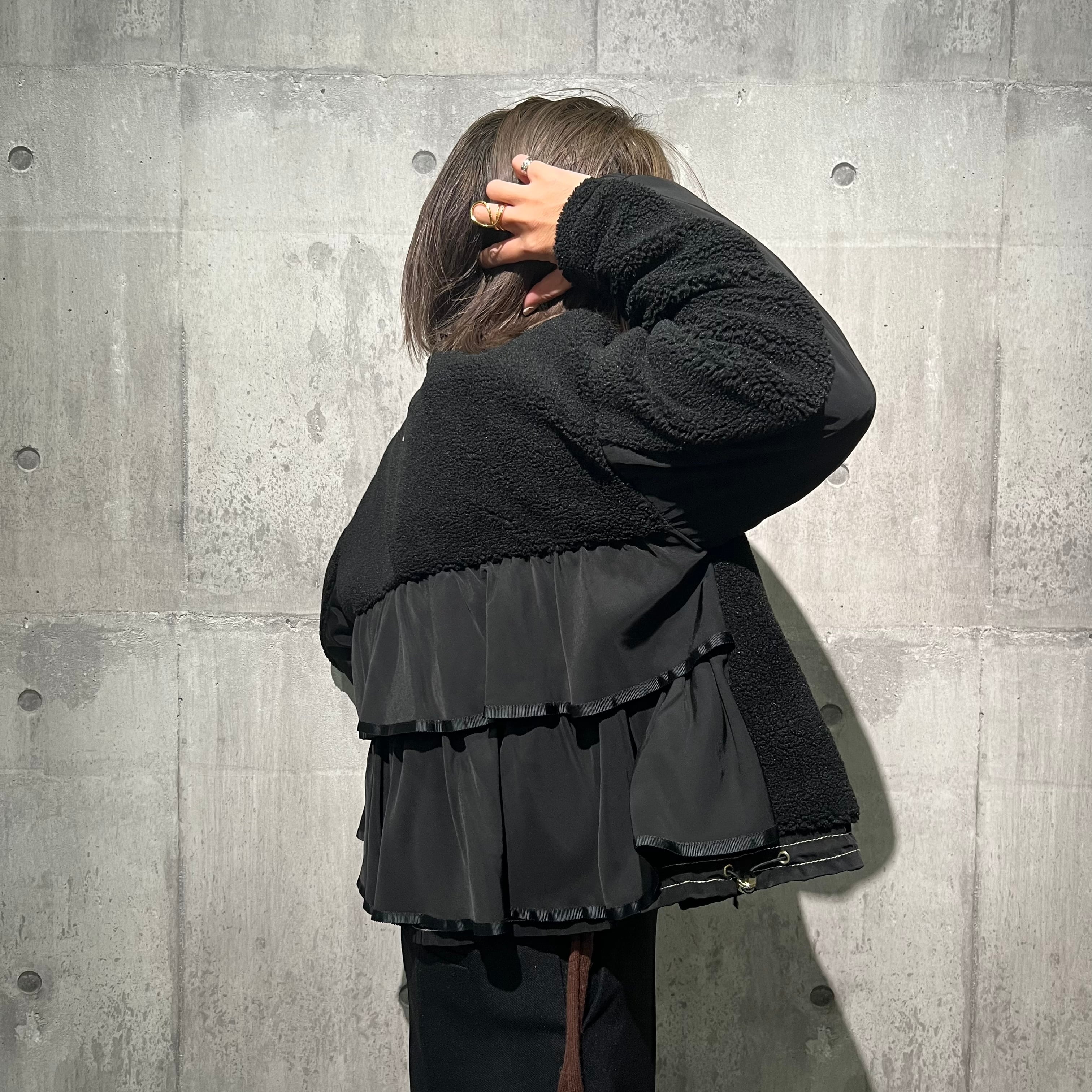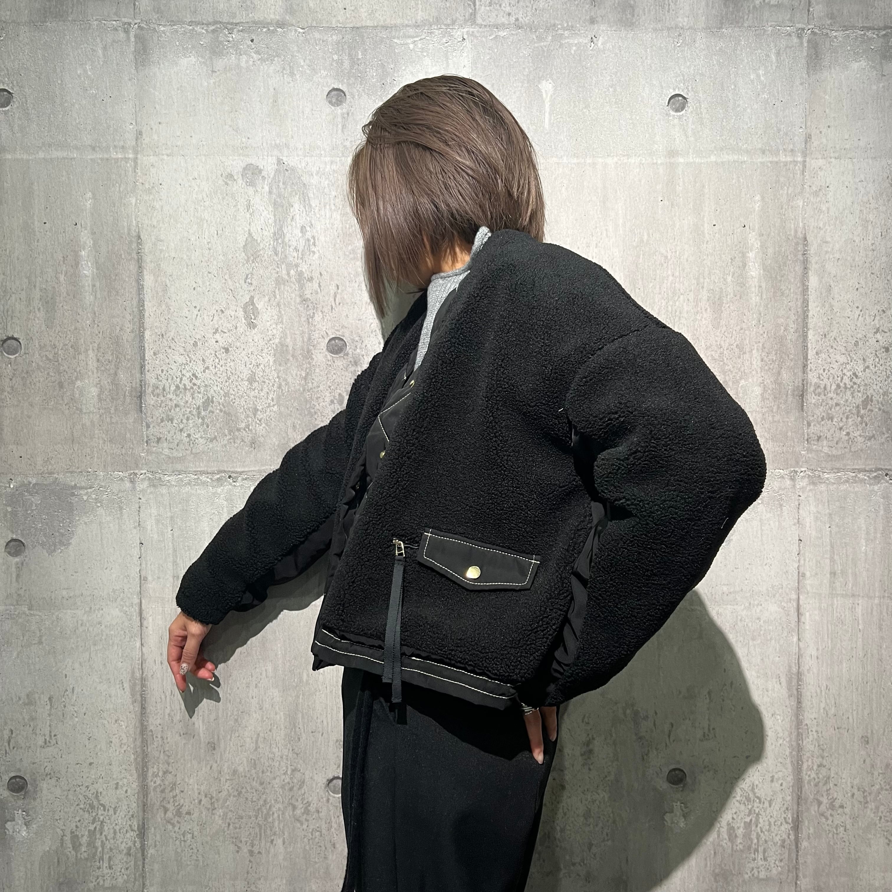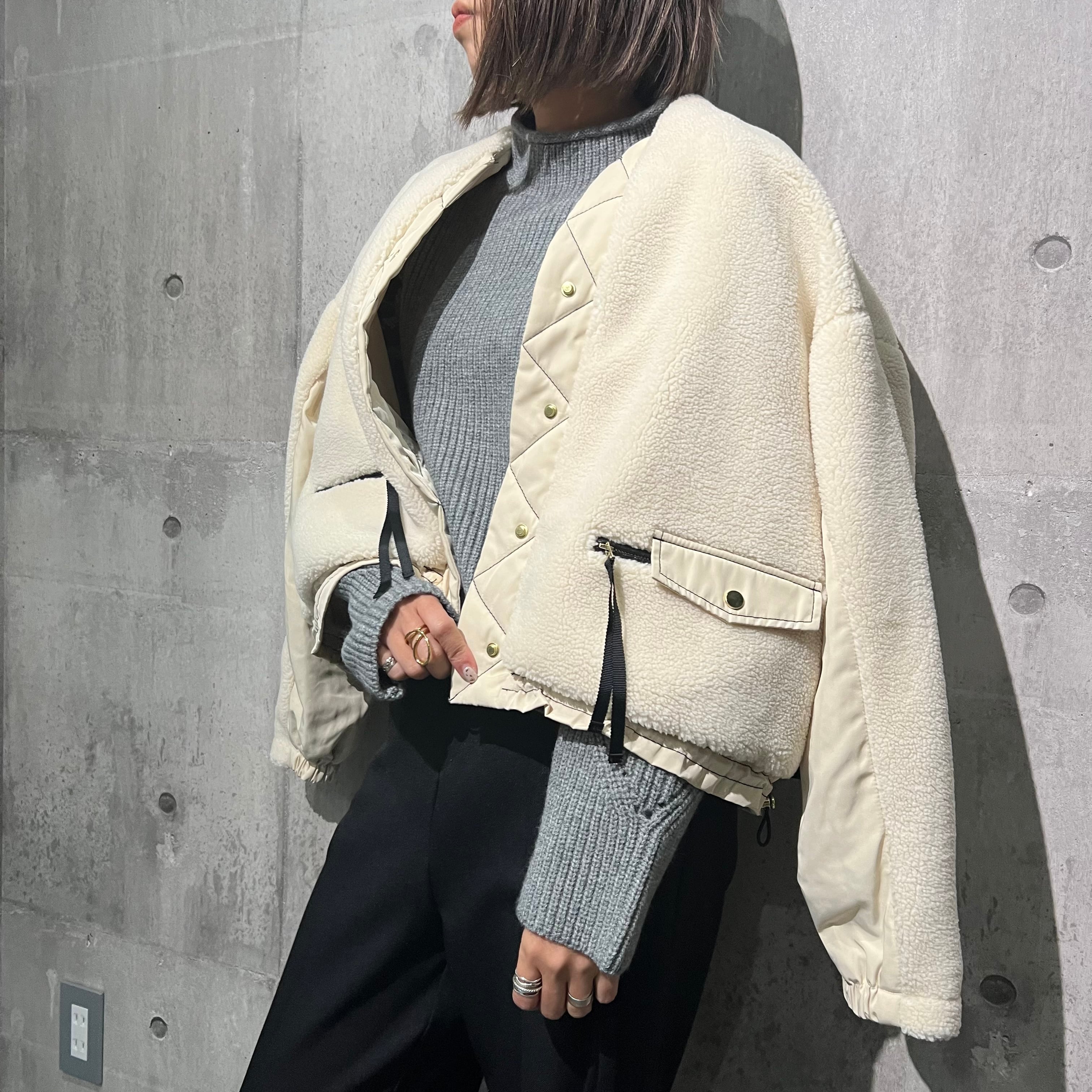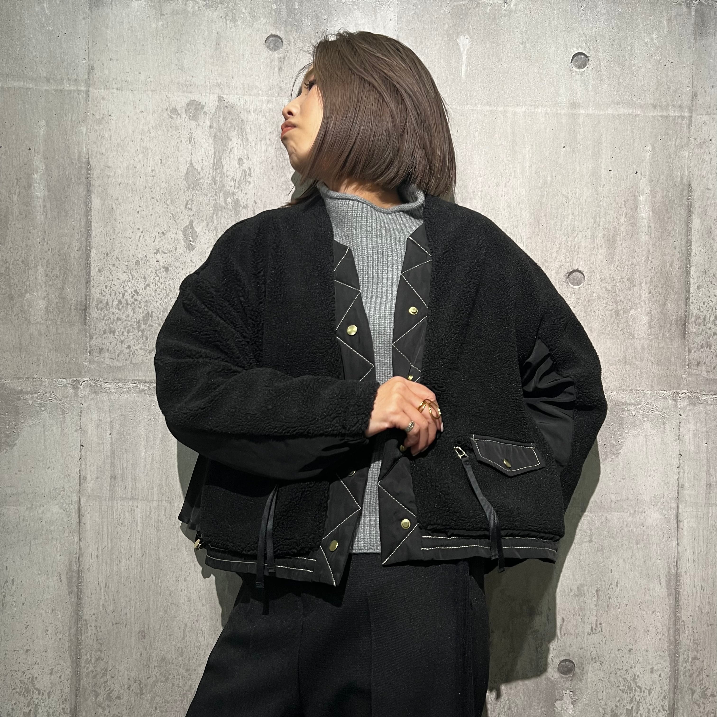 高密度の綺麗なボア素材にポリエステルツイル素材を切り替えた遊び心いっぱいのアウターです。