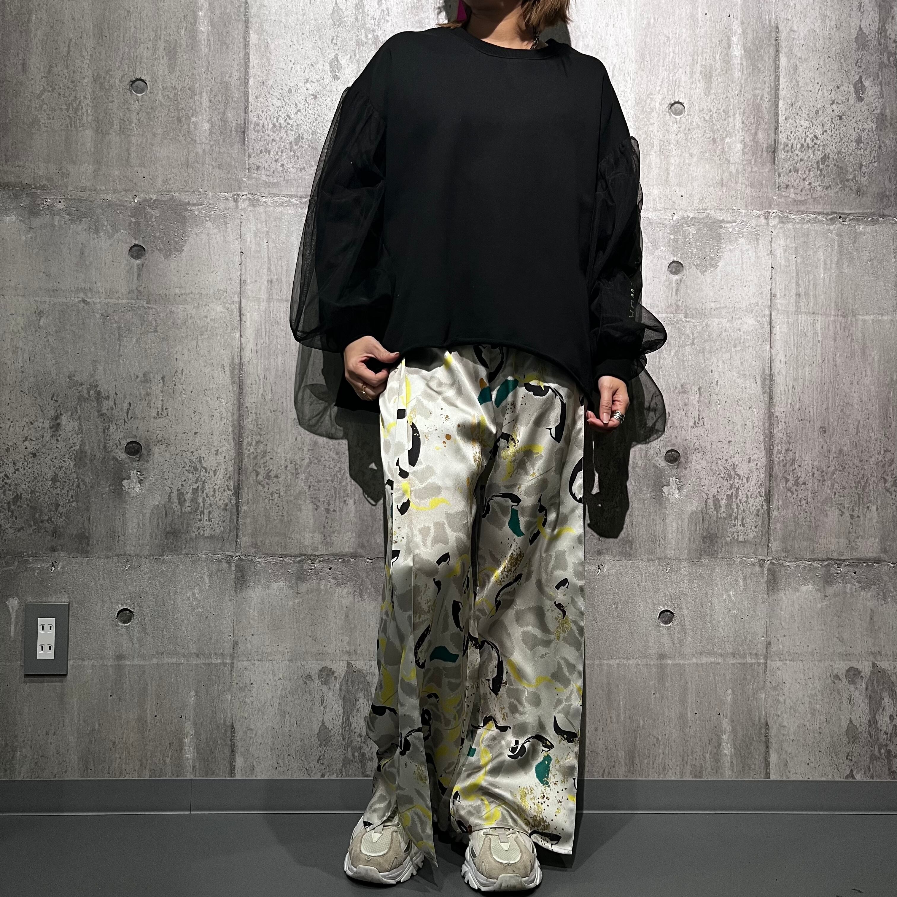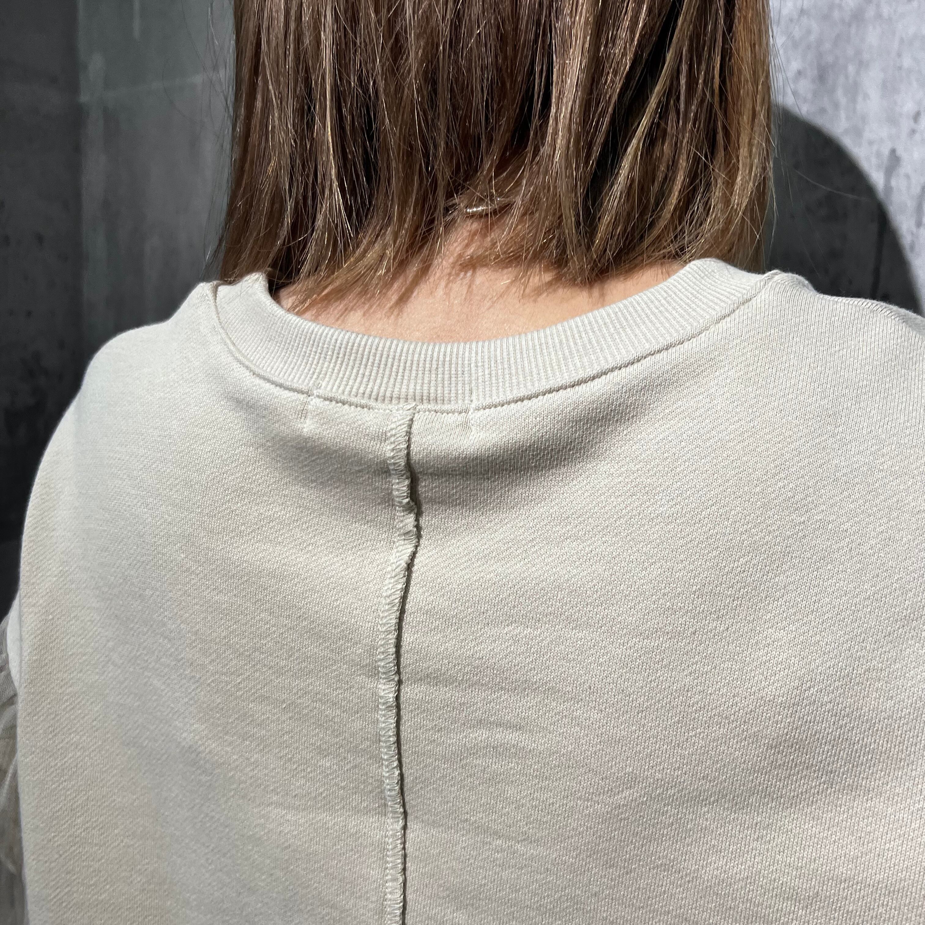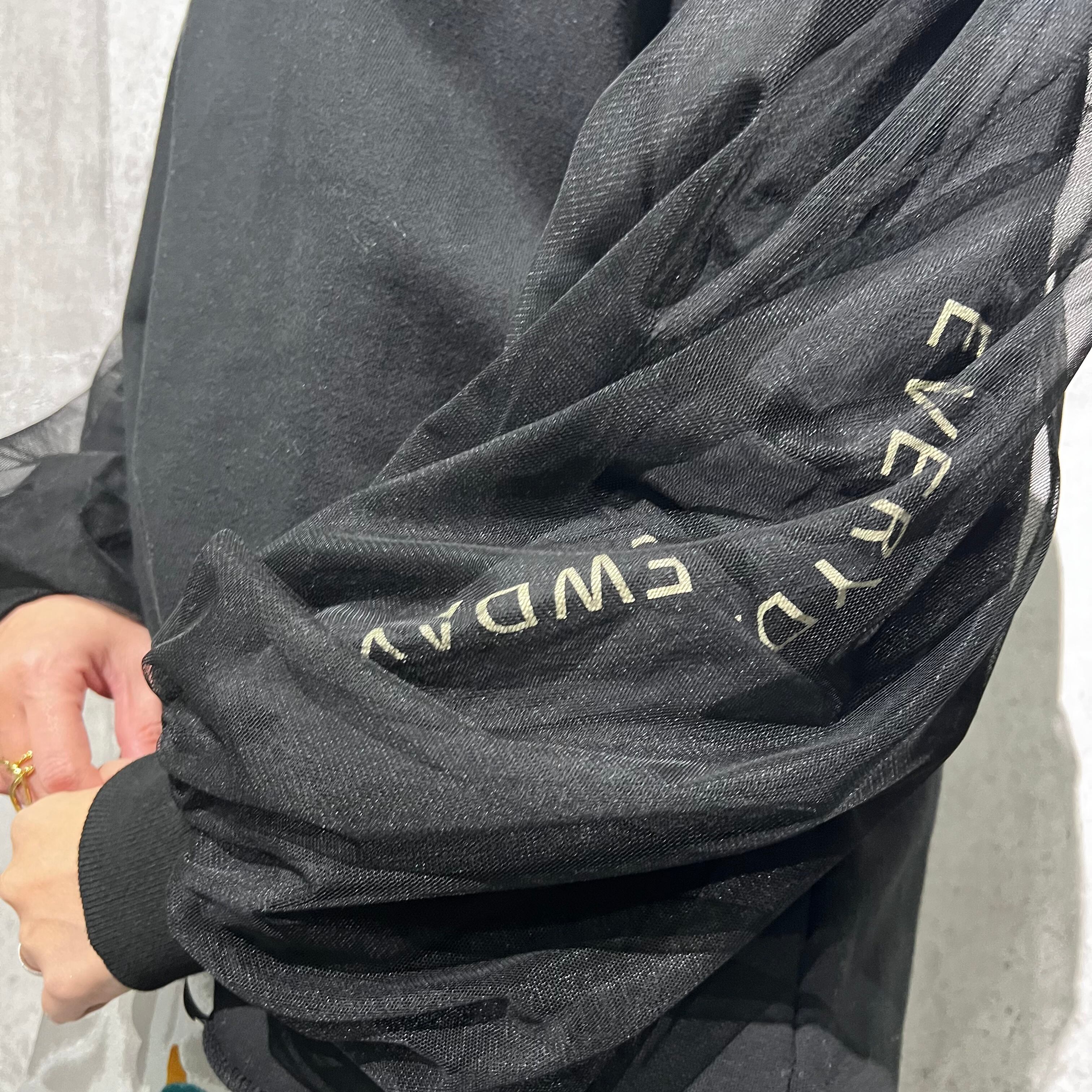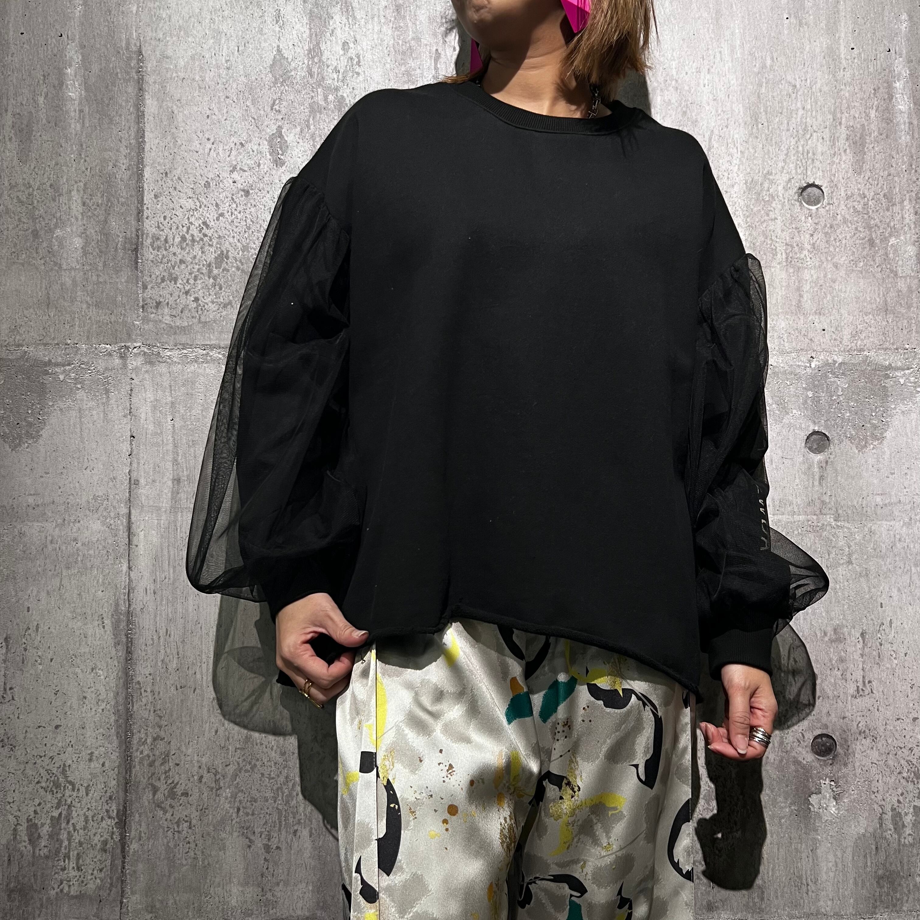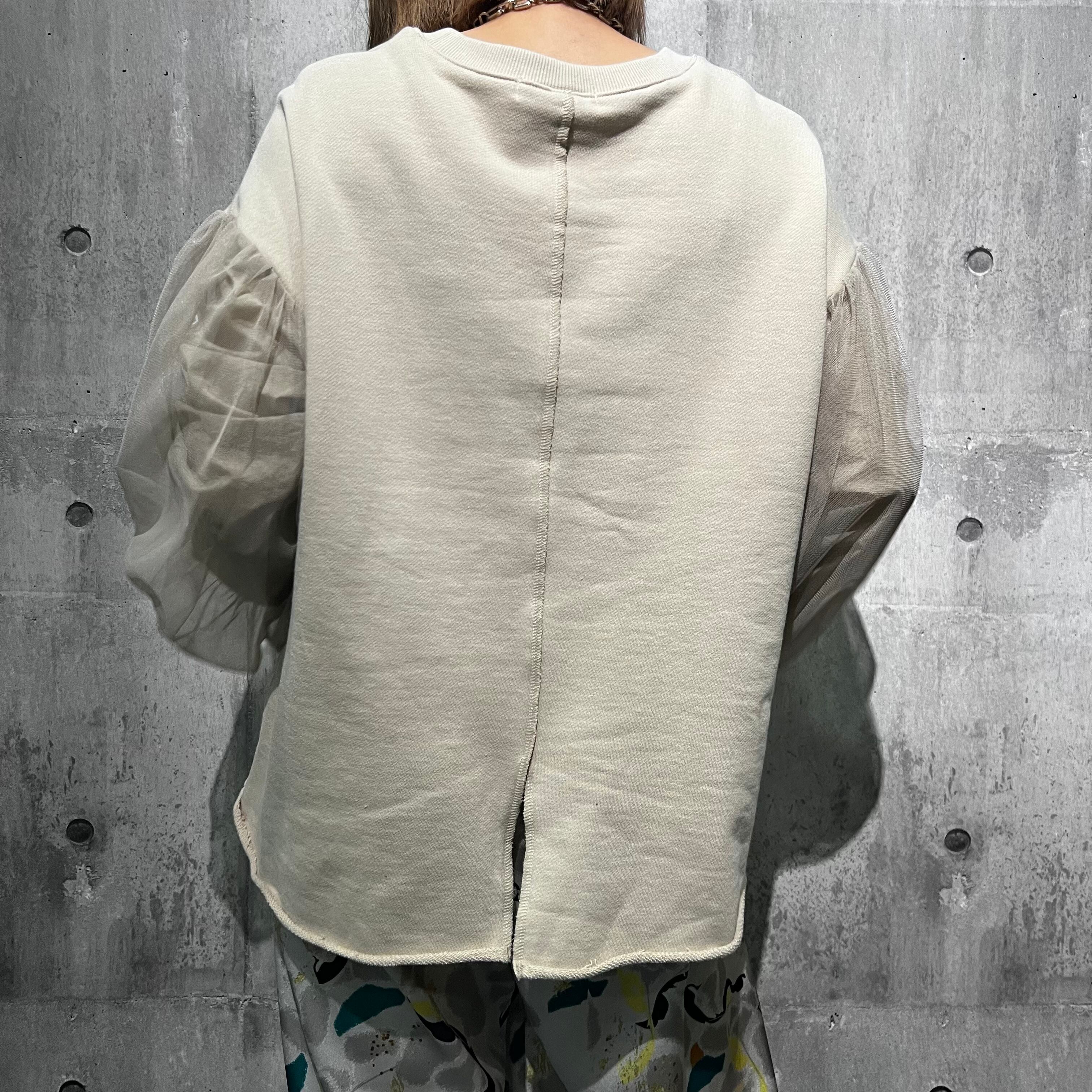 コットン裏毛にチュールやナイロン素材を配置したゆったりシルエットのデイリーユースな1枚。