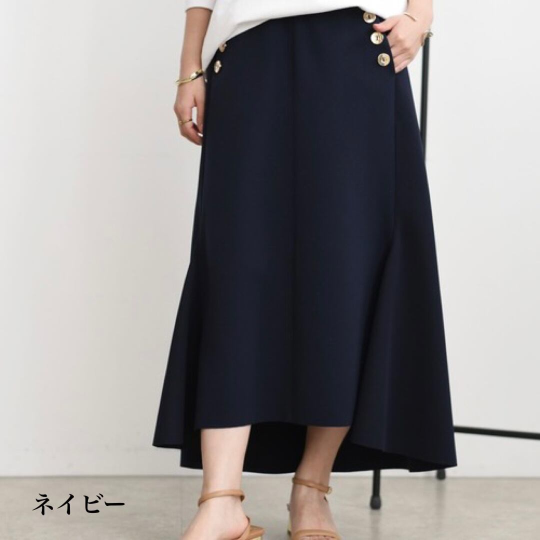 定評頂いているポリエステルボンディング素材をマーメイドラインのマリン調に仕上げたスカート。