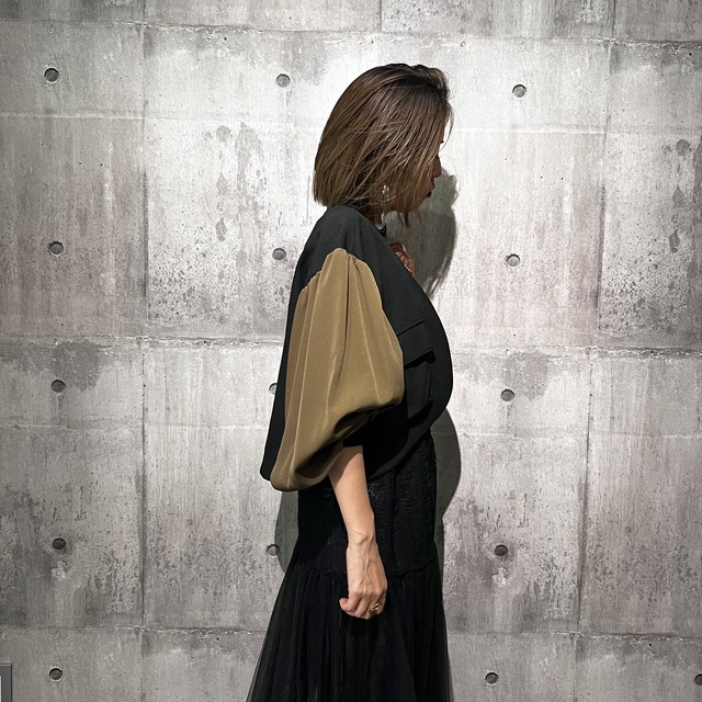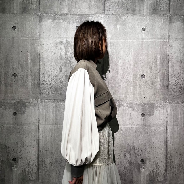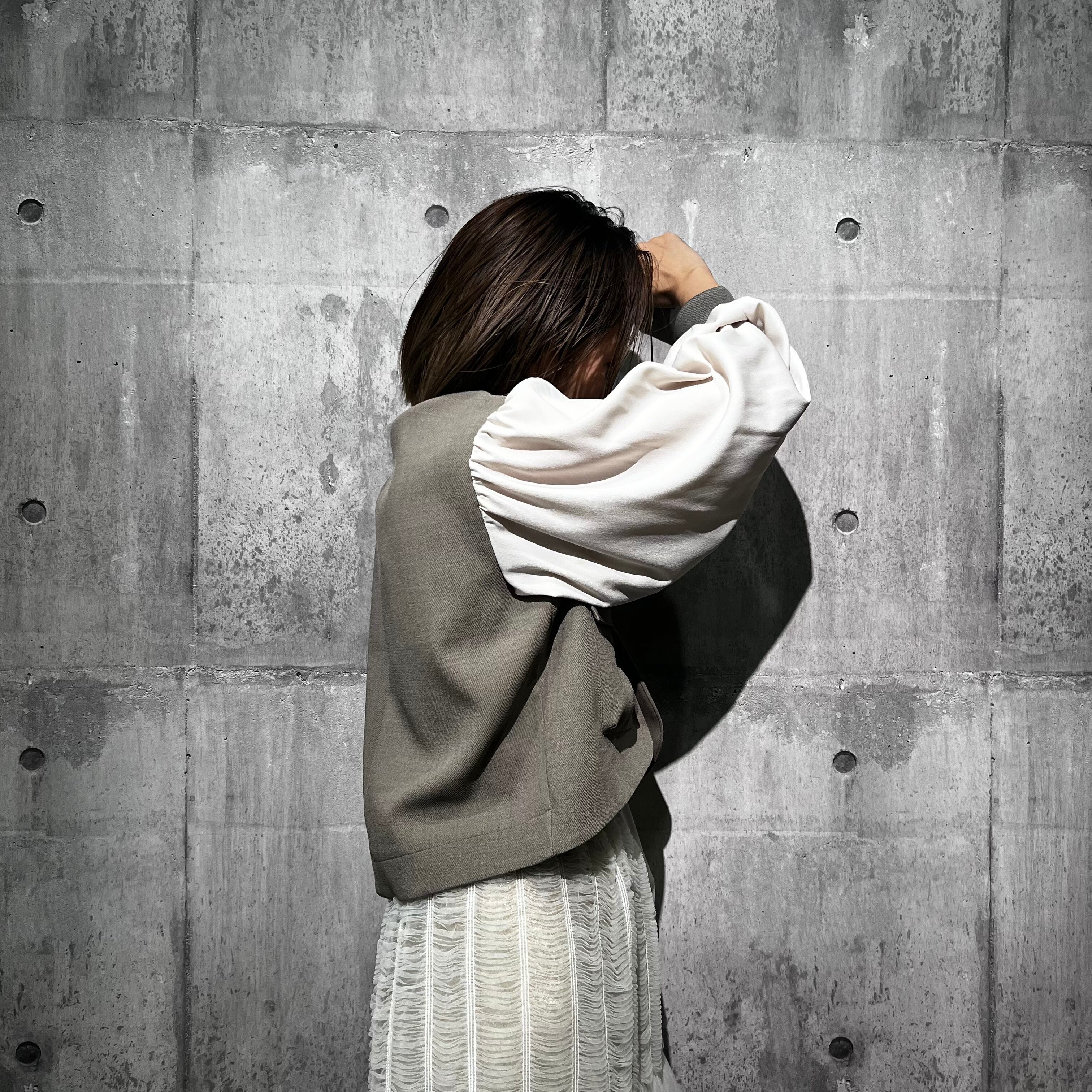 袖のボリュームが印象的で、ワイドパンツやボリュームボトム、ワンピース、サロペットにスカート、どんなボトムスとも相性よくコーデの仕上げに活躍してくれます。