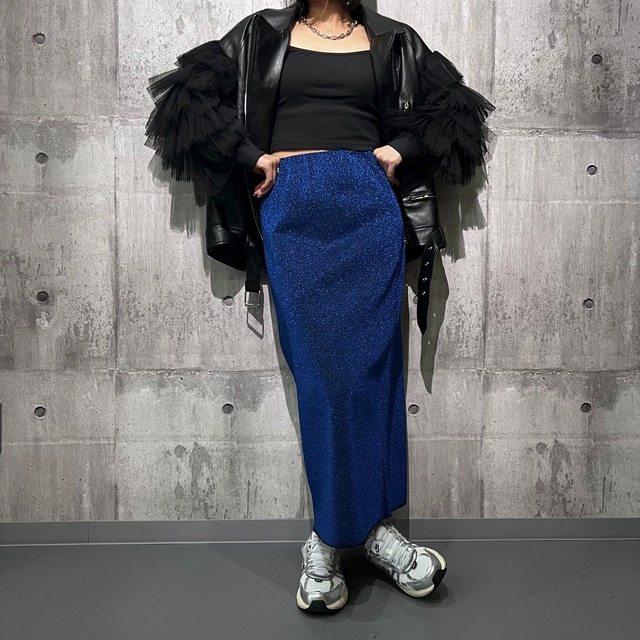 トレンドのタイトスカートを窮屈感なく仕上げています。