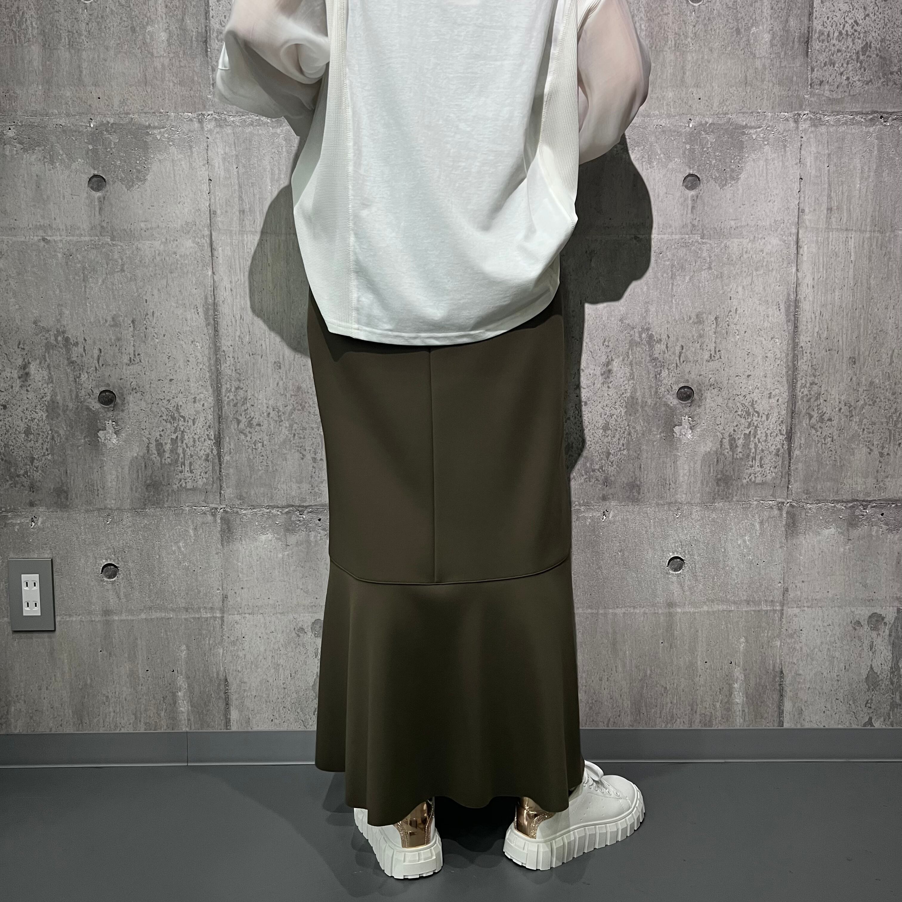 定評頂いているポリエステルボンディング素材をマーメイドラインに仕上げたスカート。