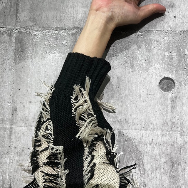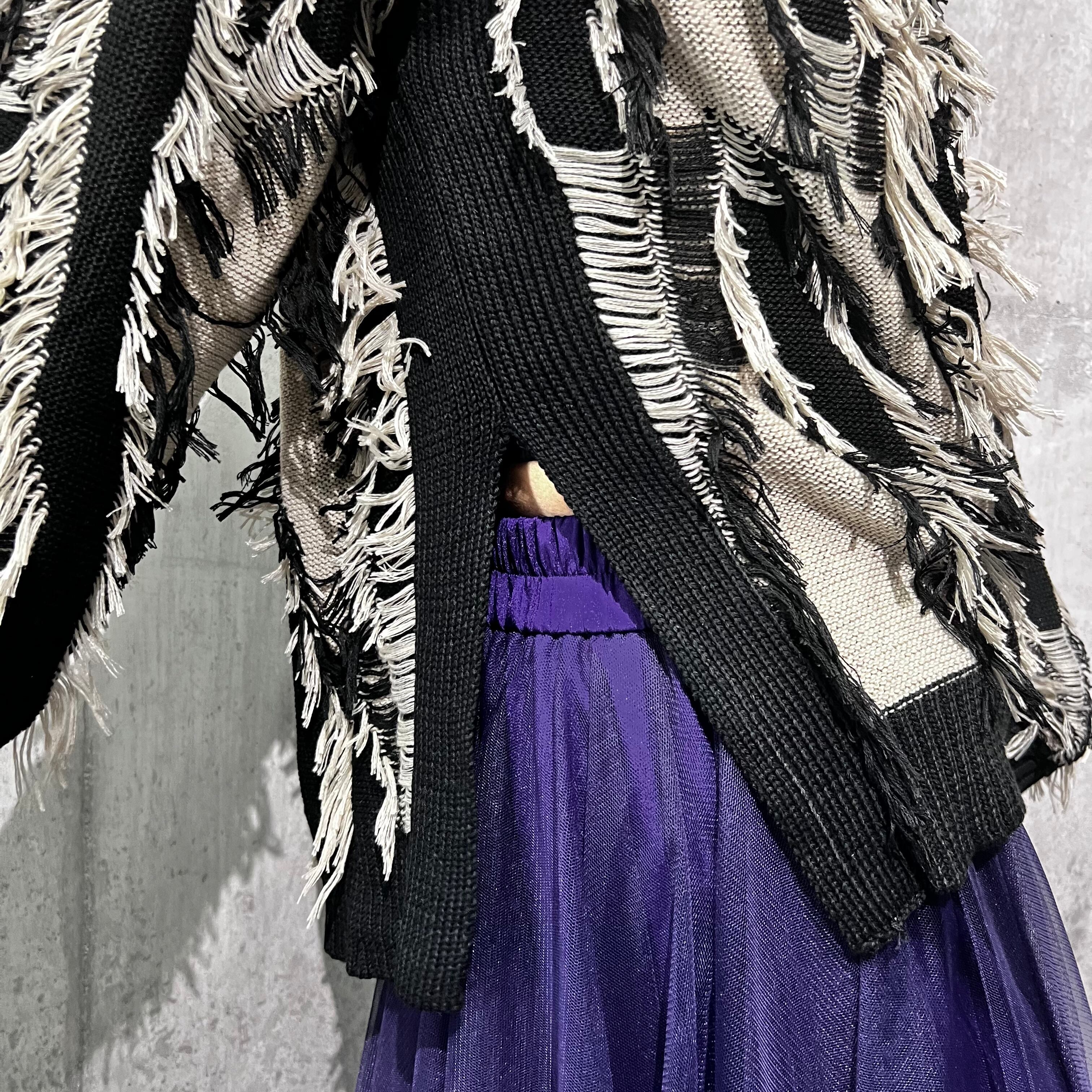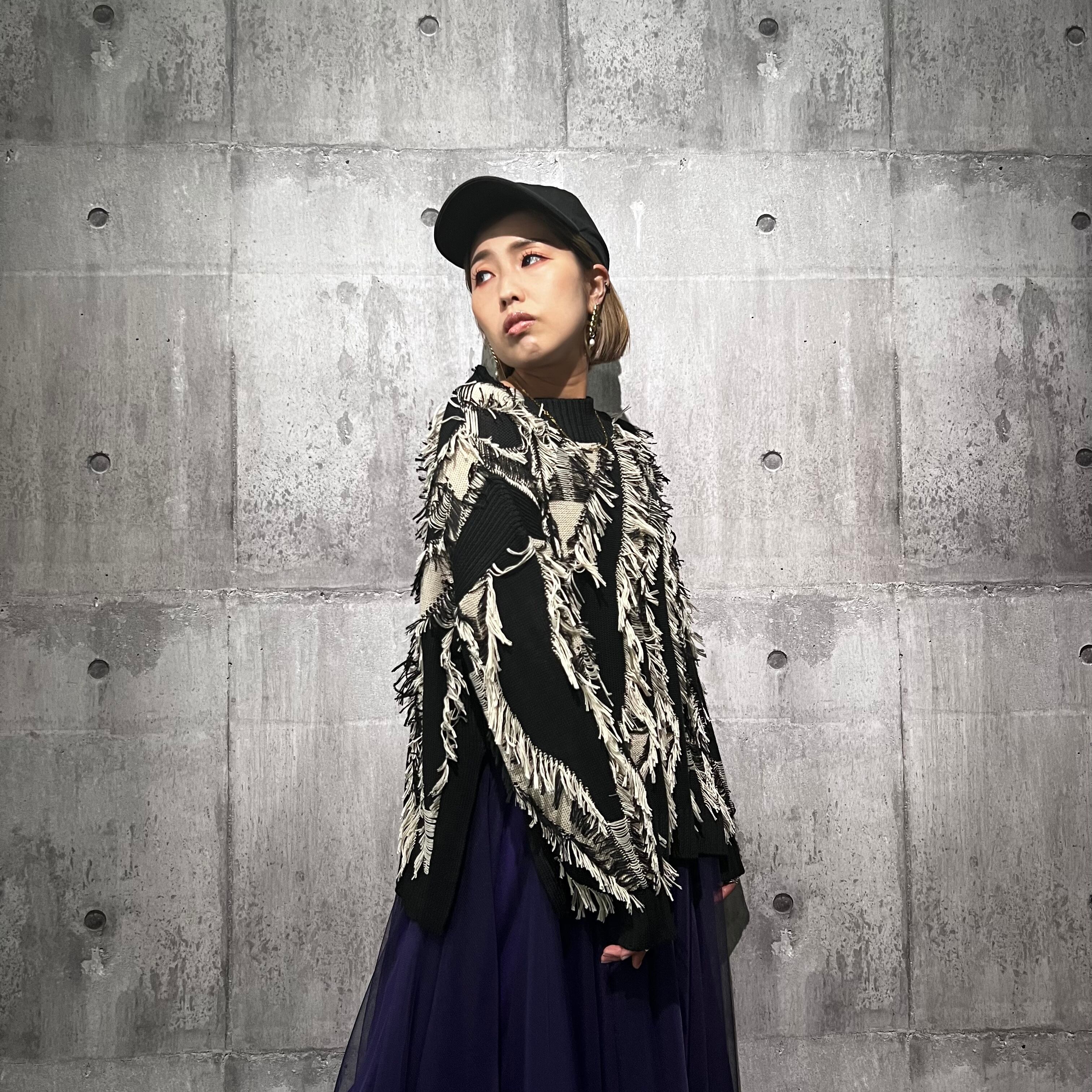 ウェーブ柄のフリンジ感が華やかなニットトップス