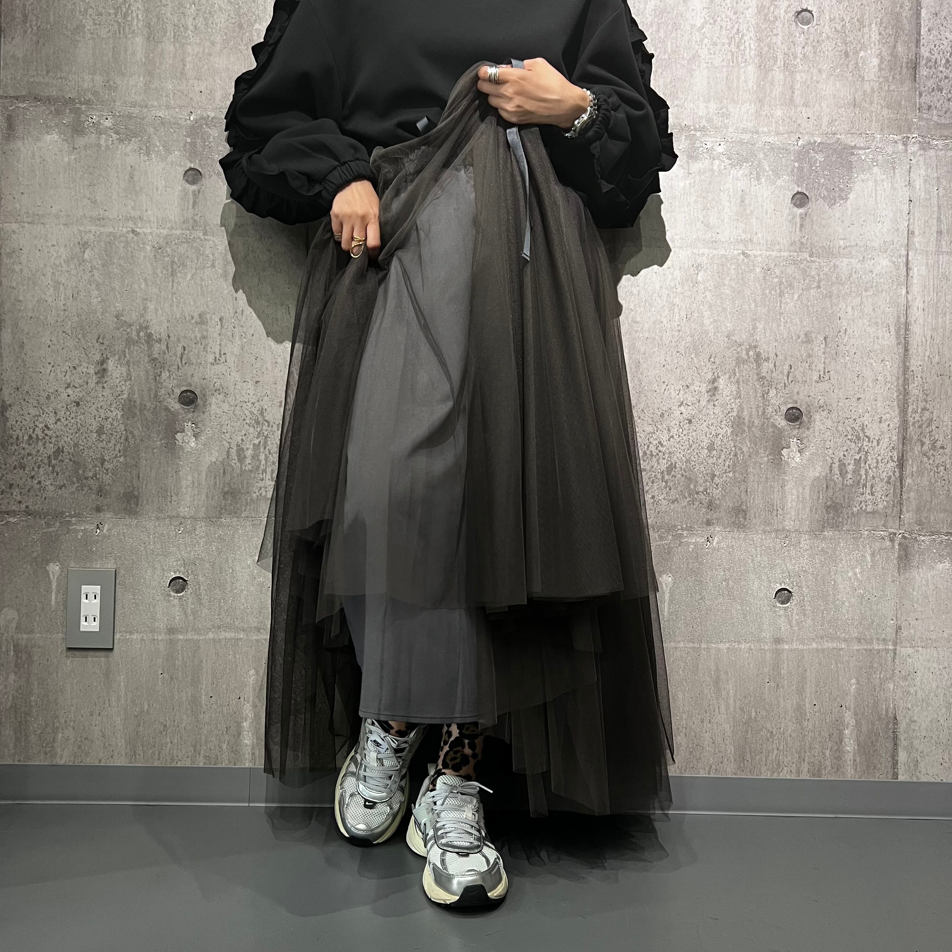 トップチュールスカートは、トレンド感たっぷりの一着です。トップチュール素材がスカート全体を包み込み、女性らしさを引き立てます。