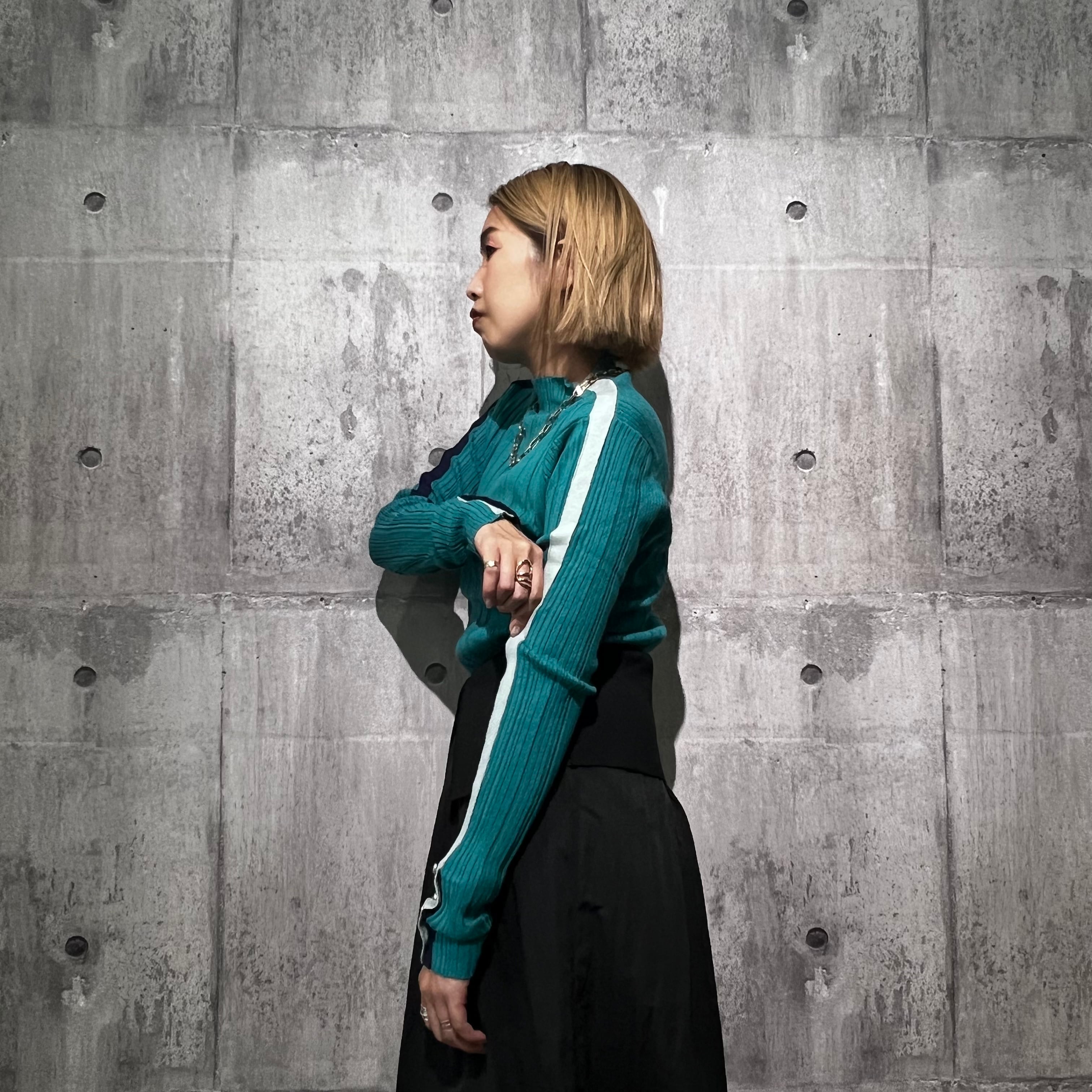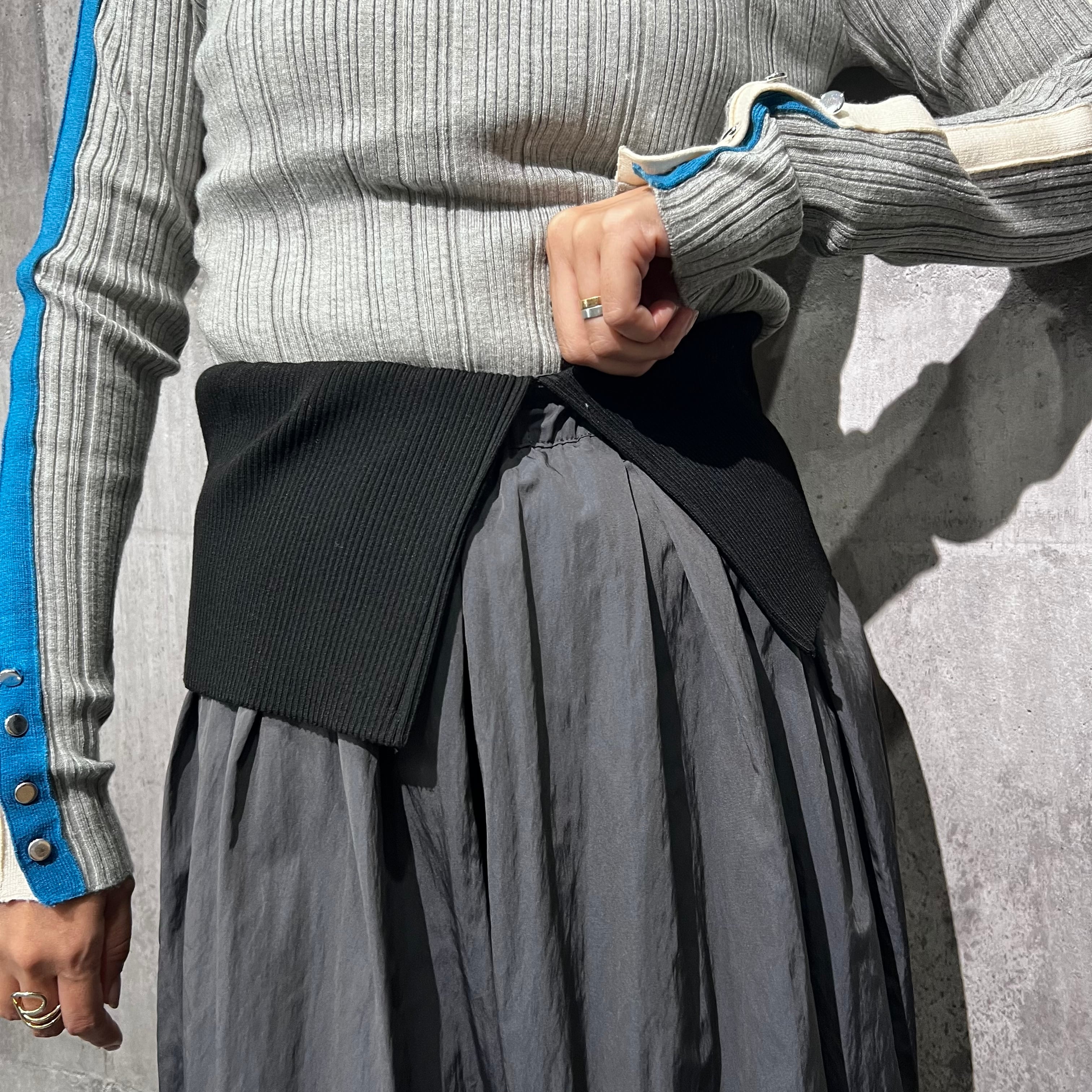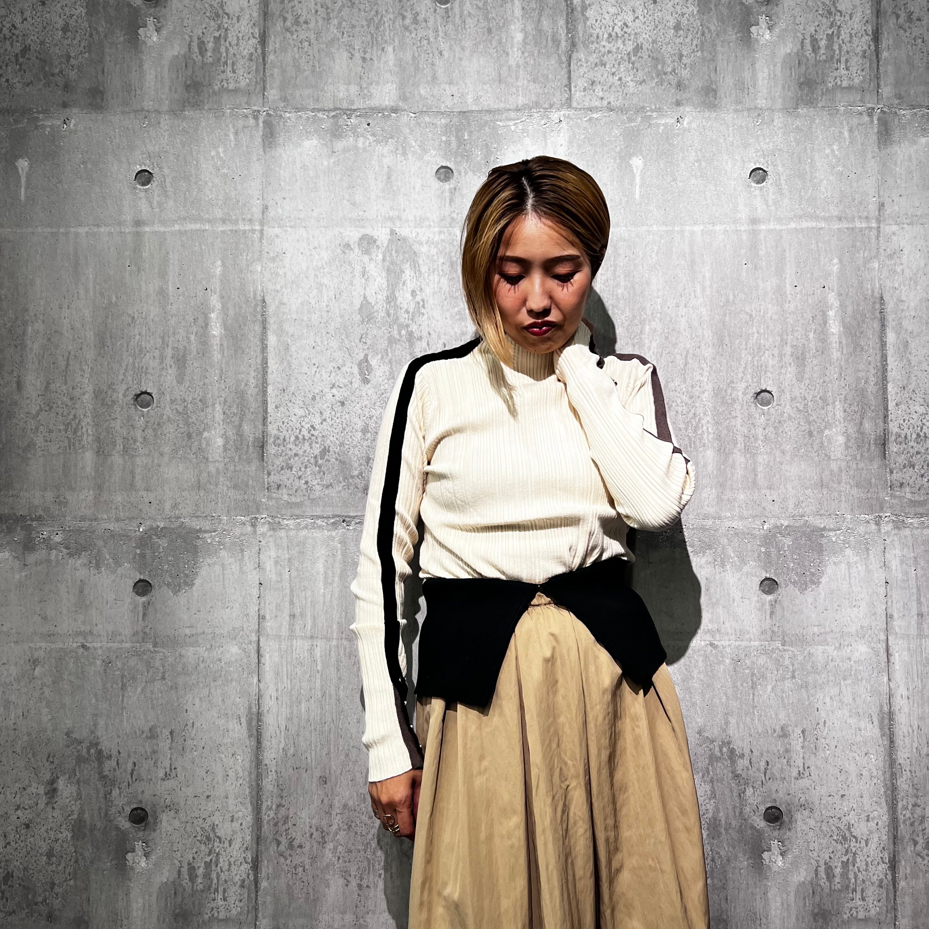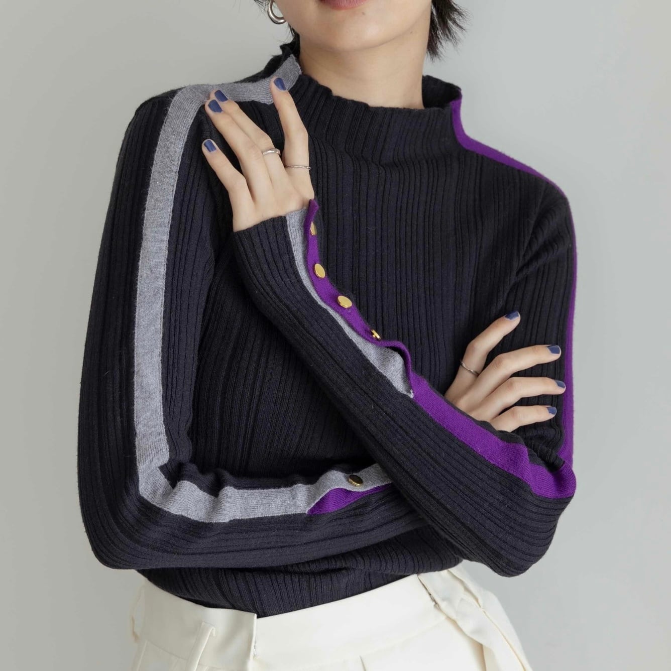 袖に左右アシンメトリーの配色を施し、シンプルな中にポイントのあるデザイン。
