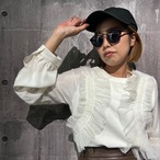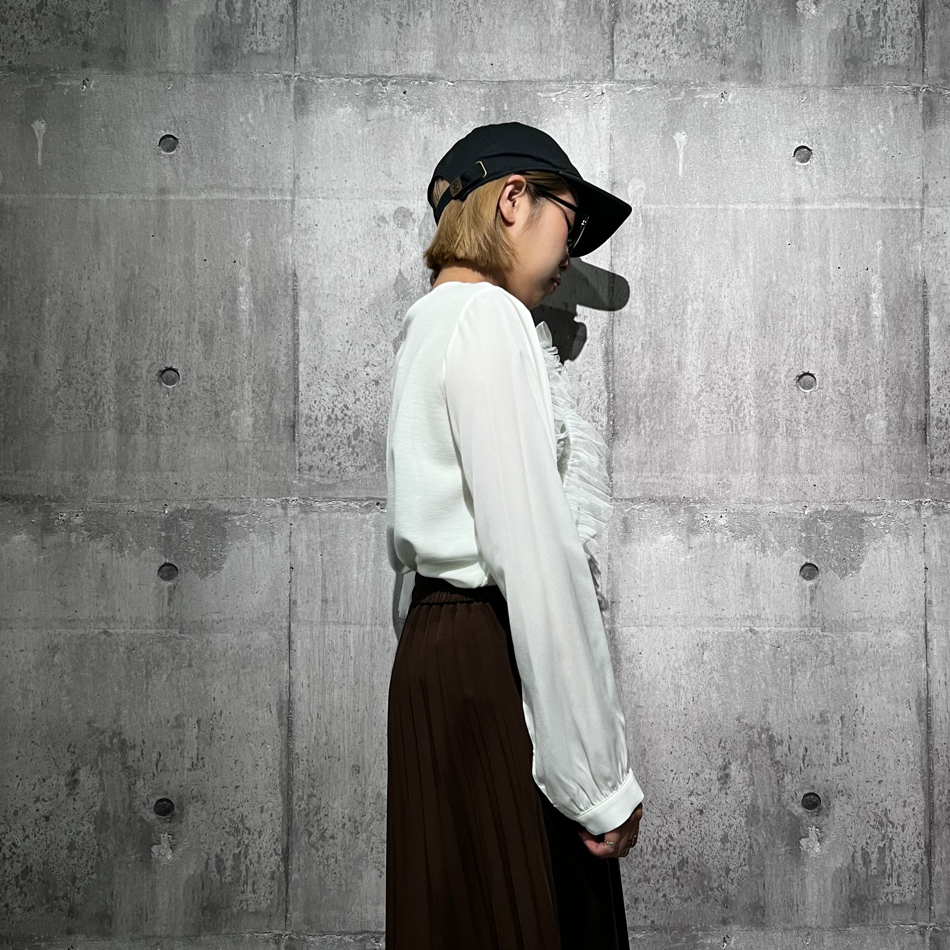 アシンメトリーでランダムなフリルがモードで遊び心のあるデザインです。