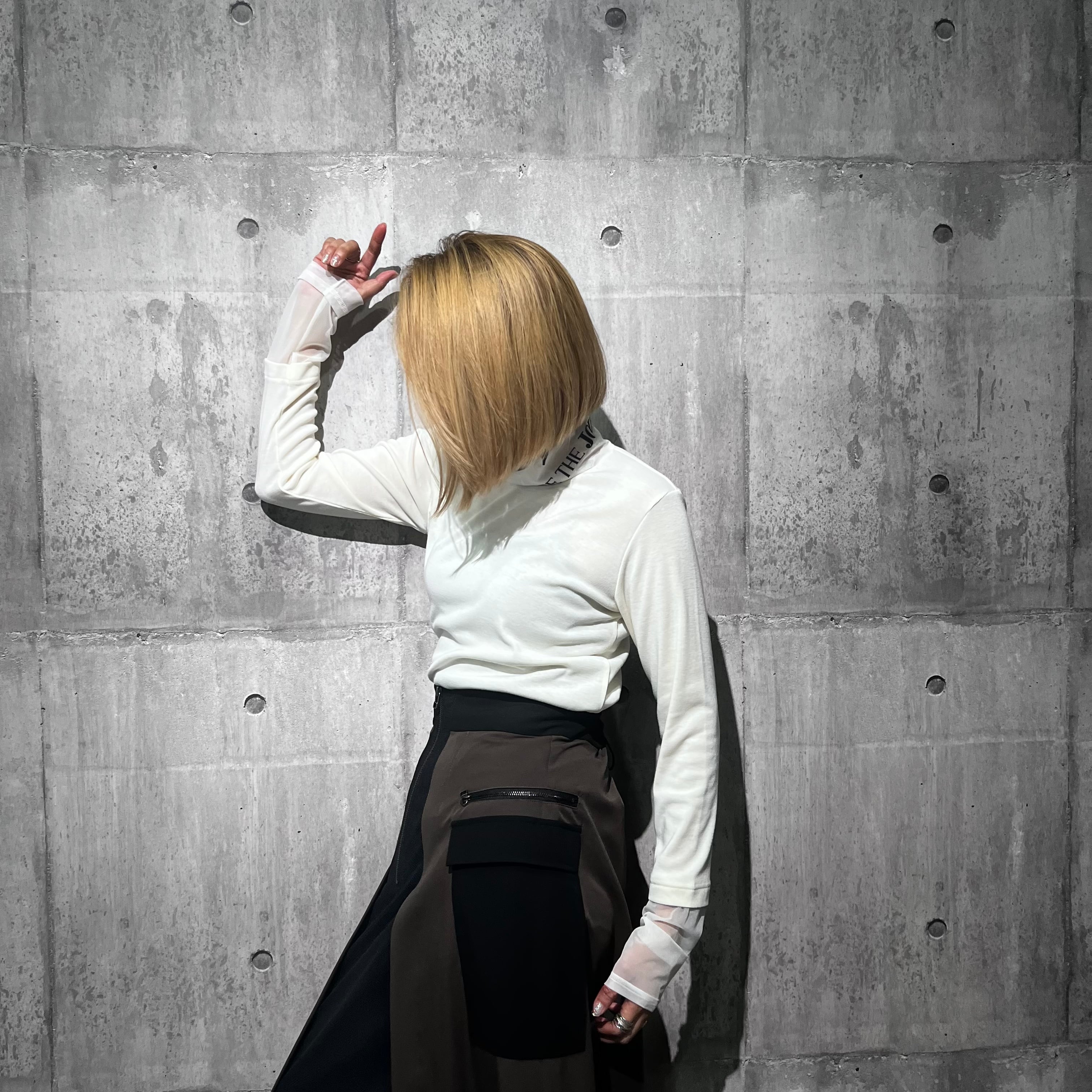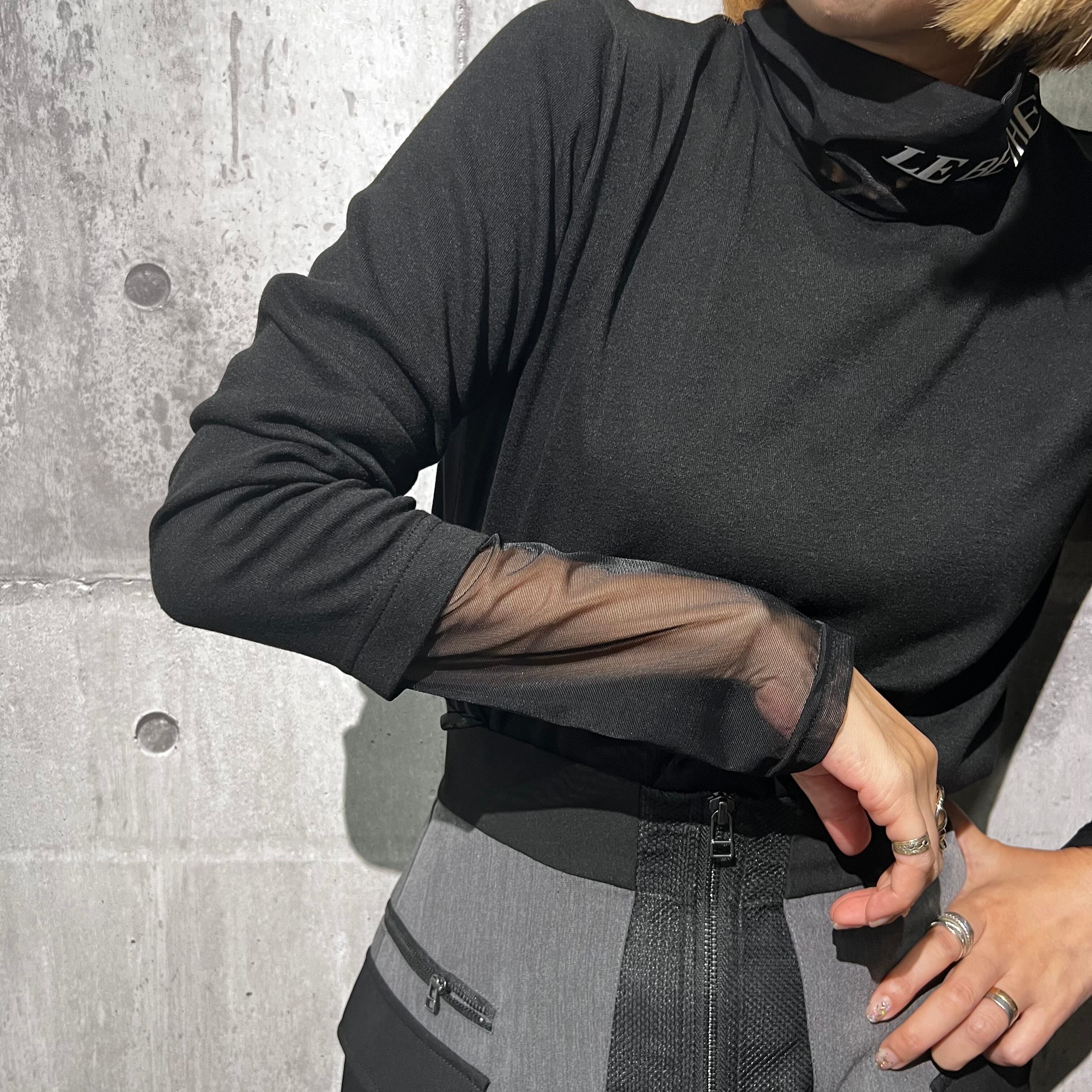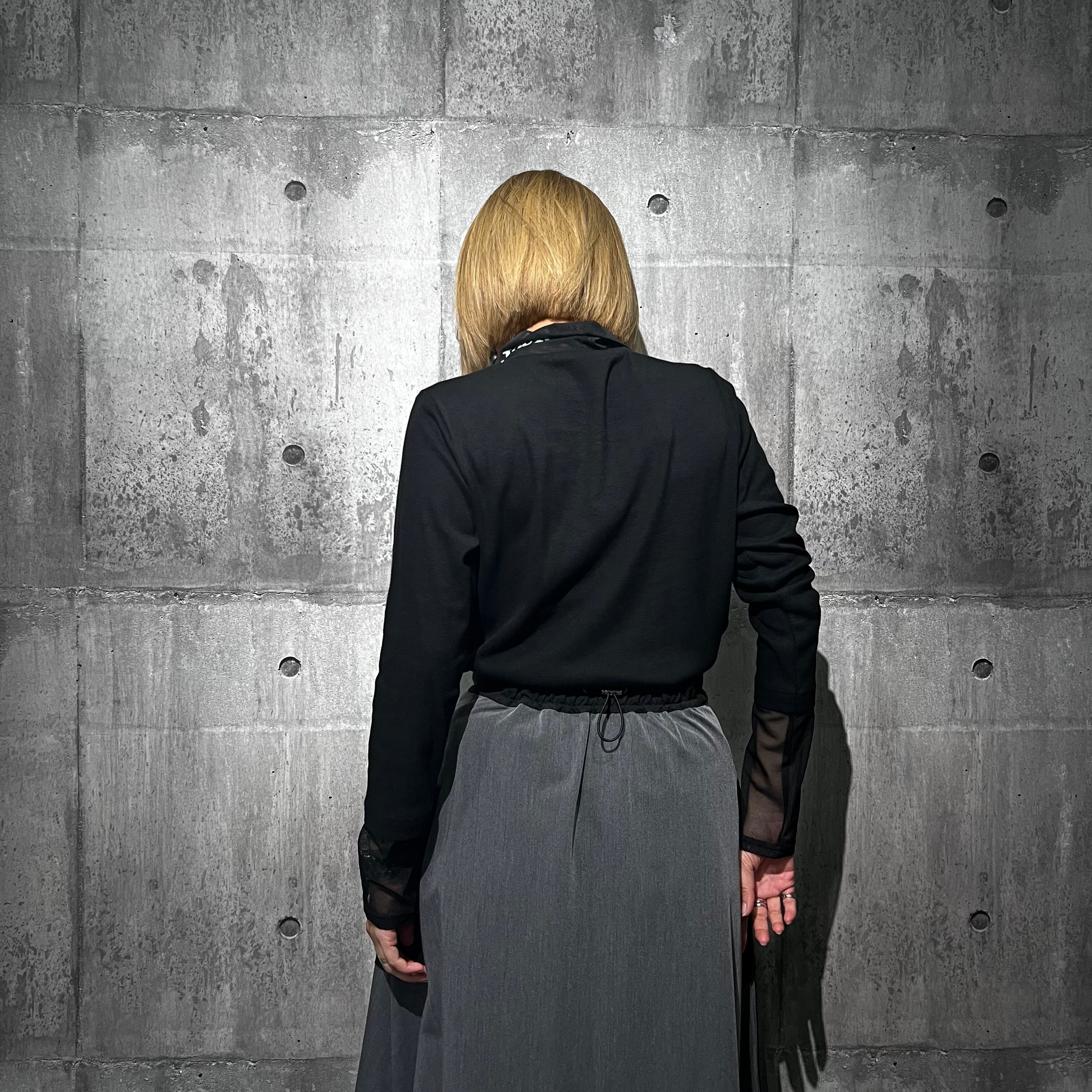 首元と袖口はシアーチュールで切り替え、ニットやジャケットなどとのレイヤードスタイルをお楽しみいただけます。