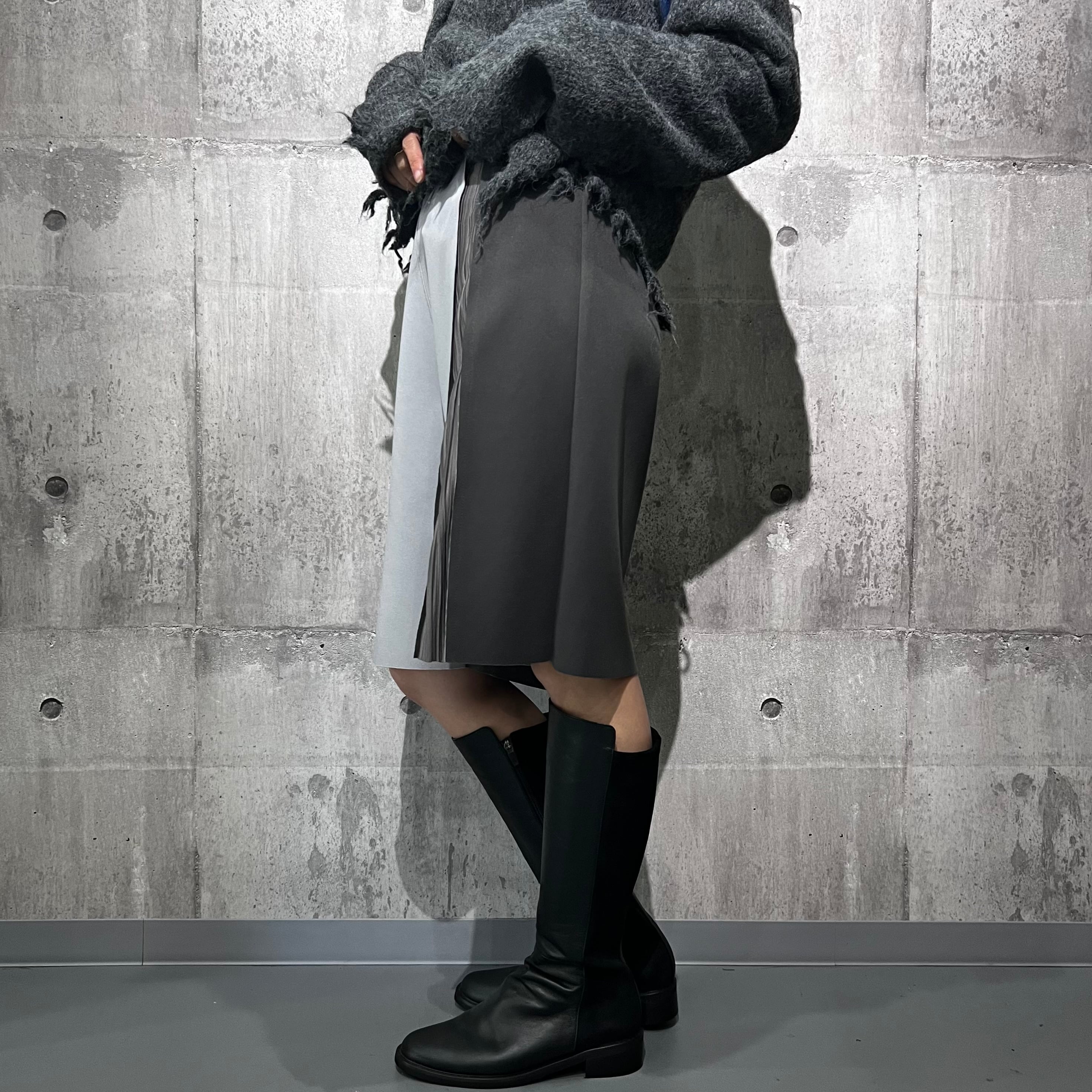 センターにプリーツ素材を配置し、配色仕上げでスッキリ縦長効果。